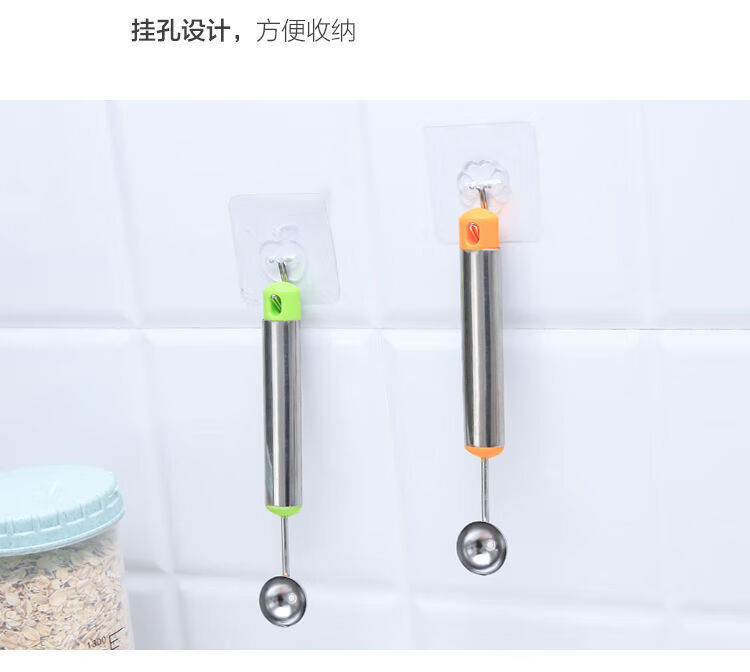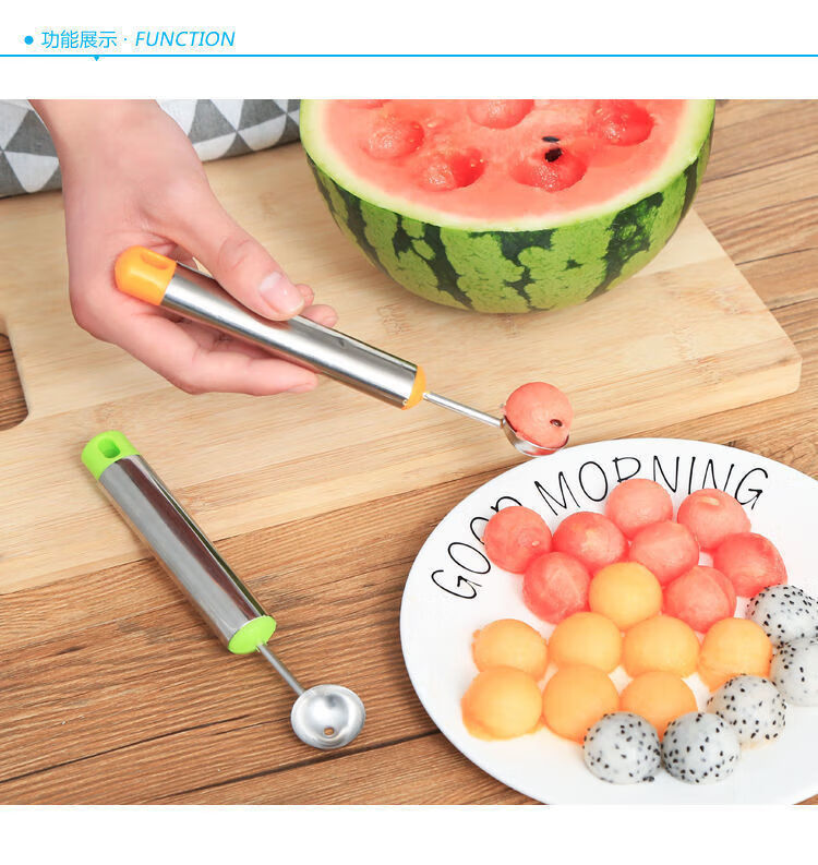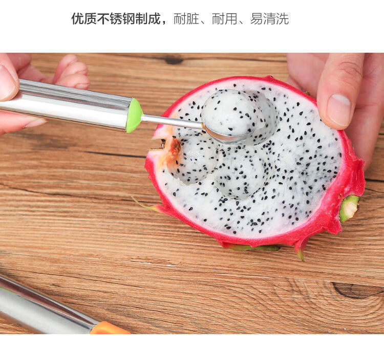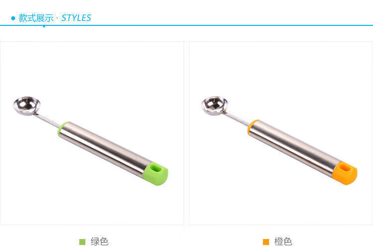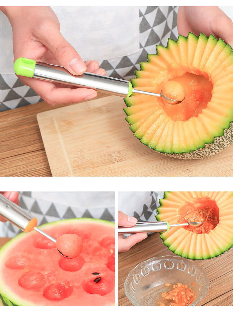 Rice harvesting fruit fork, stainless steel watermelon fruit cutter, ice cream scoop, multifunctional fruit scoop, carved carved knife - green