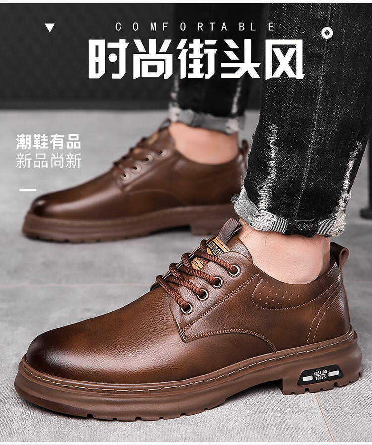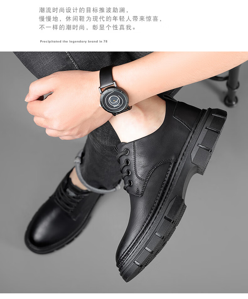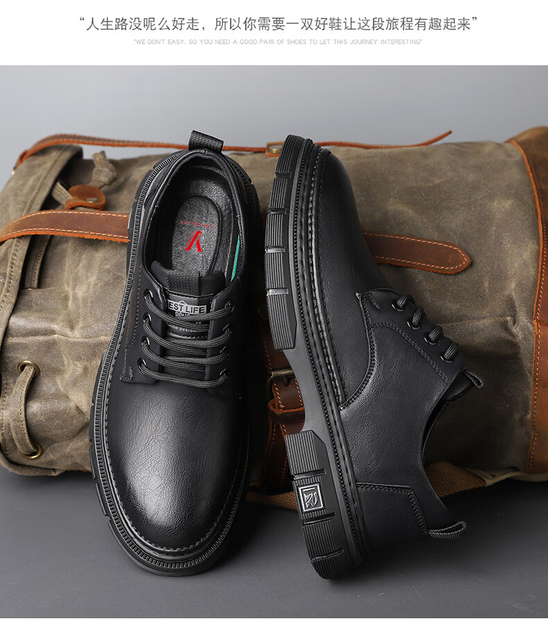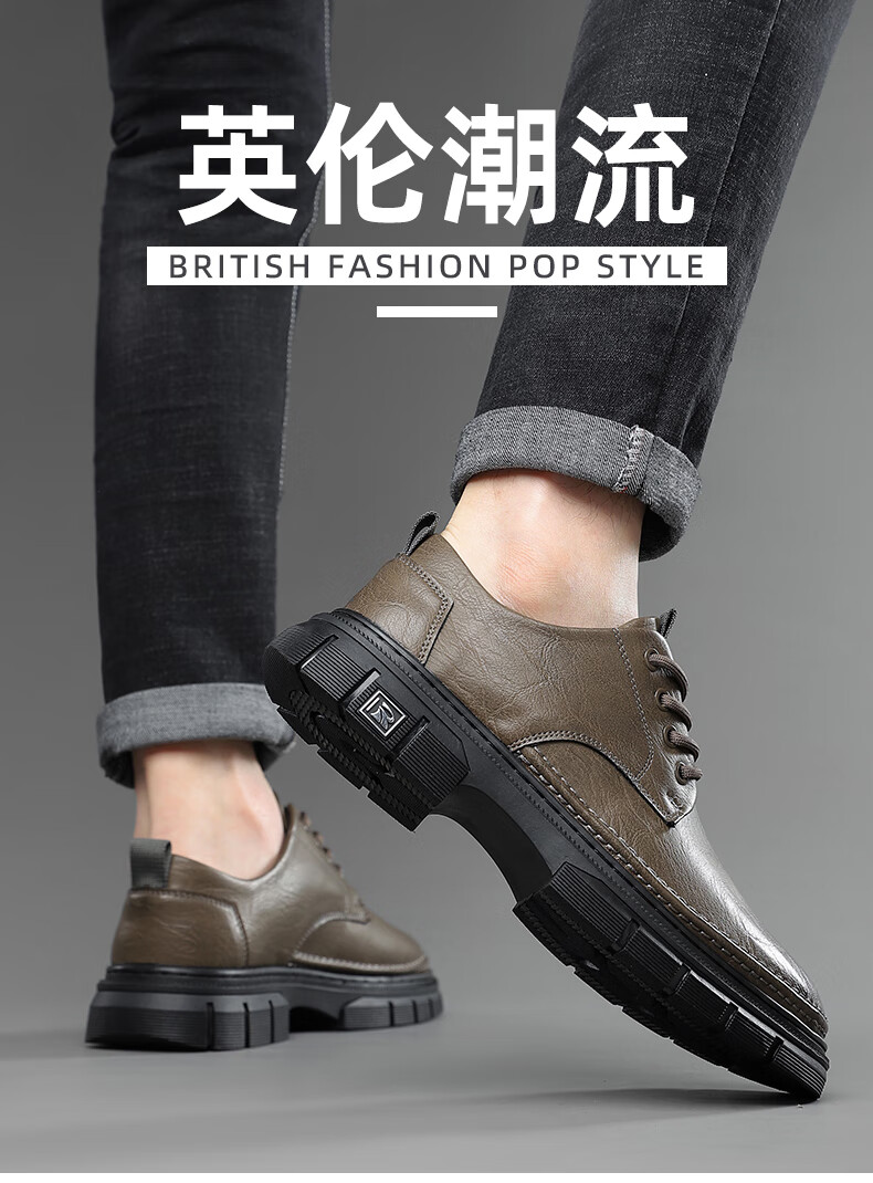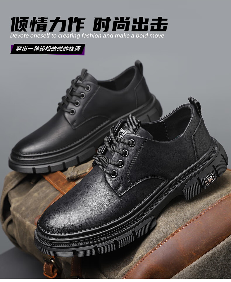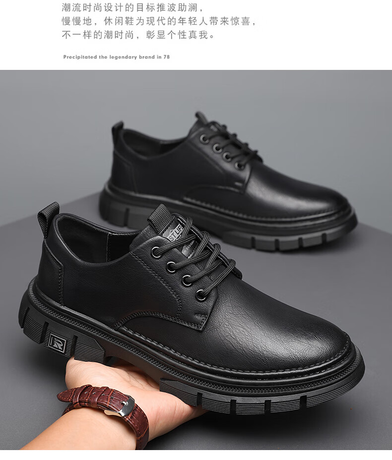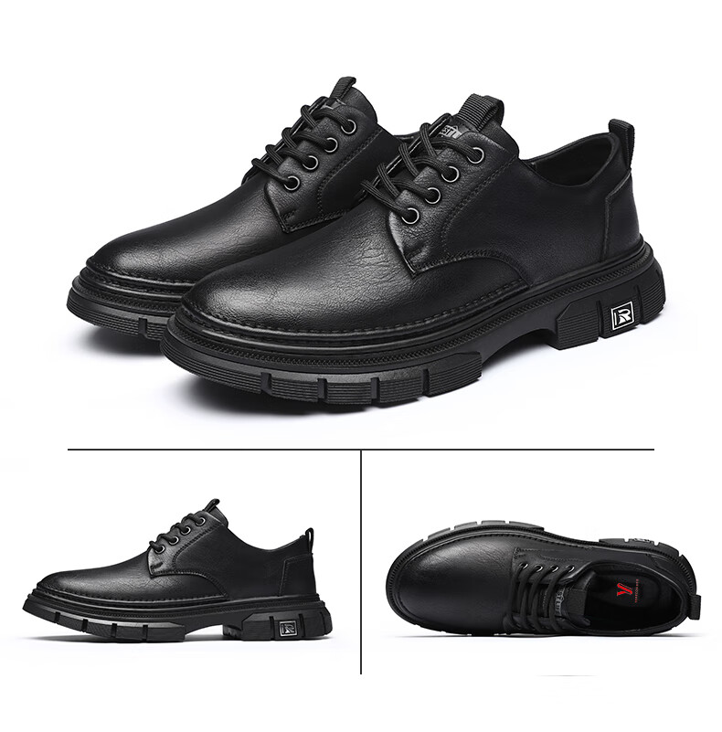 YRC men's shoes new British sports casual leather shoes men's genuine leather breathable lace business soft sole work shoes A style black single shoes four seasons 42 standard leather shoe size