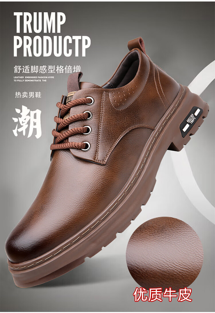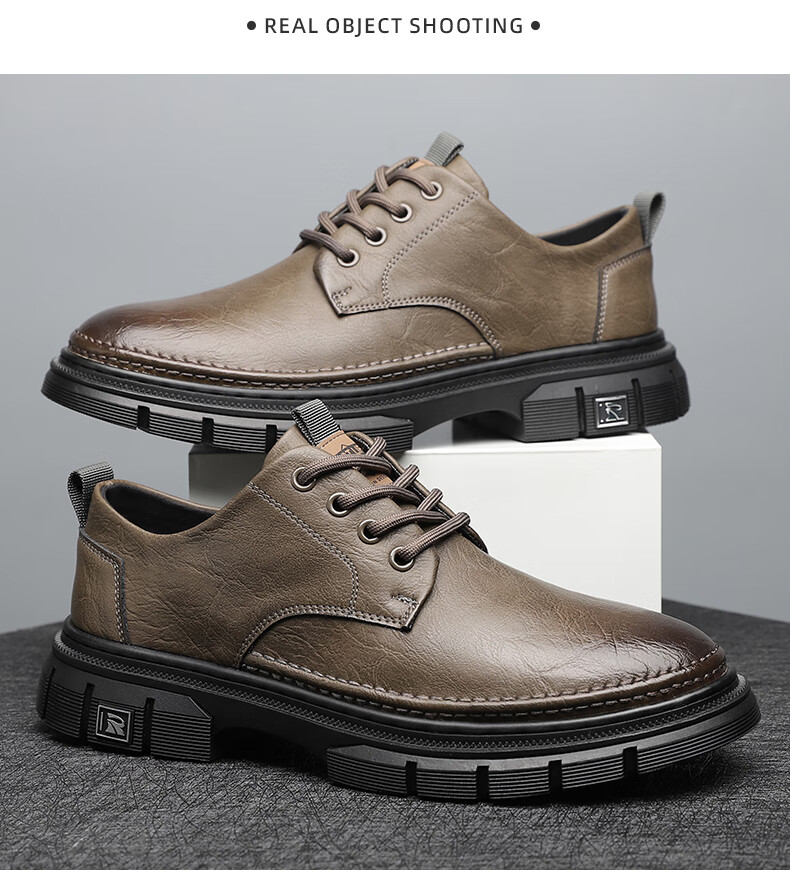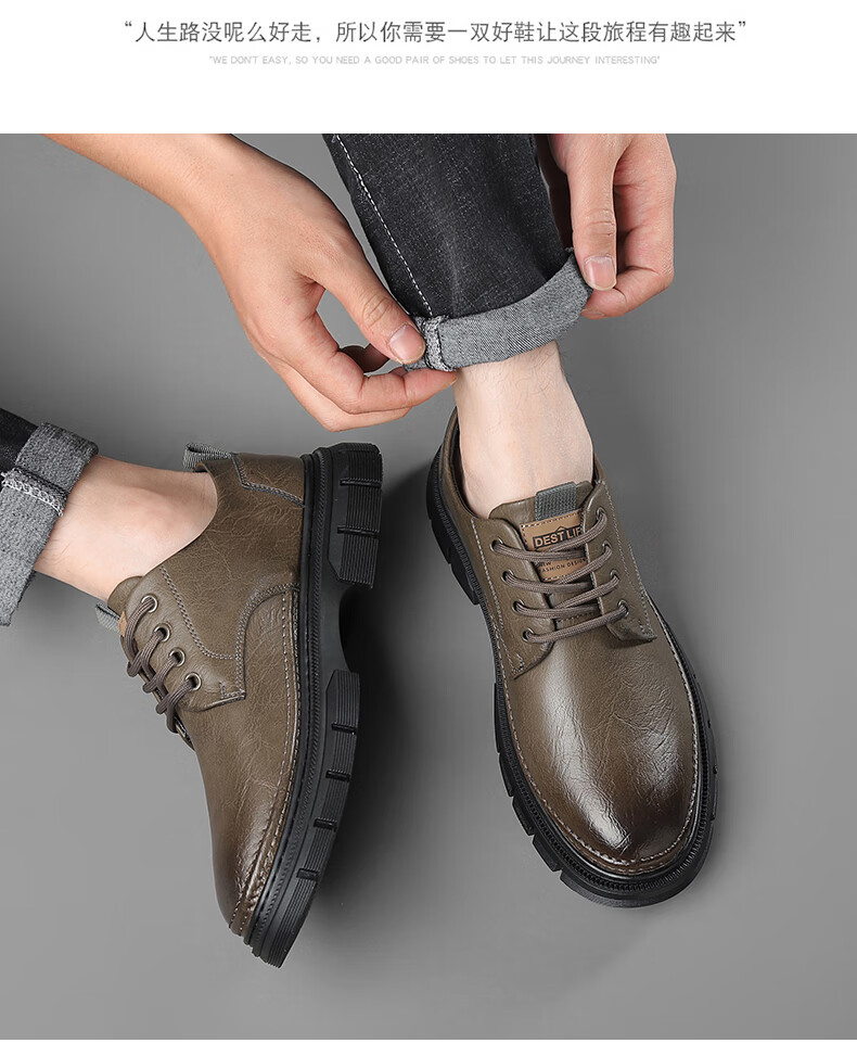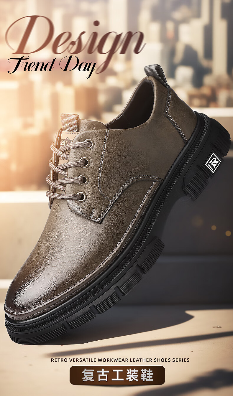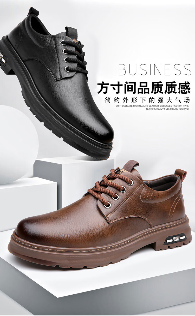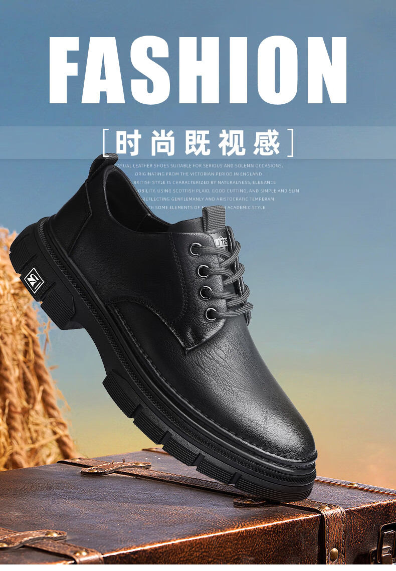 YRC men's shoes new British sports casual leather shoes men's genuine leather breathable lace business soft sole work shoes A style black single shoes four seasons 42 standard leather shoe size