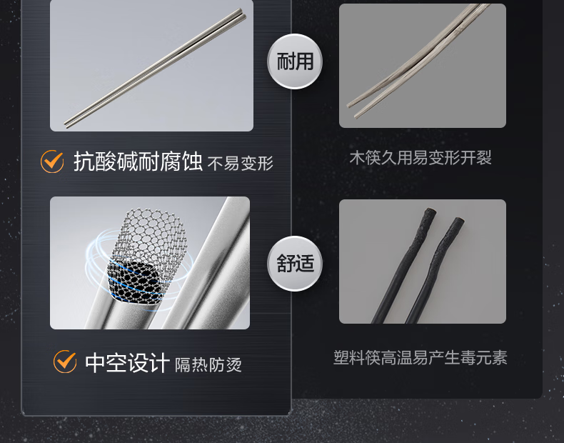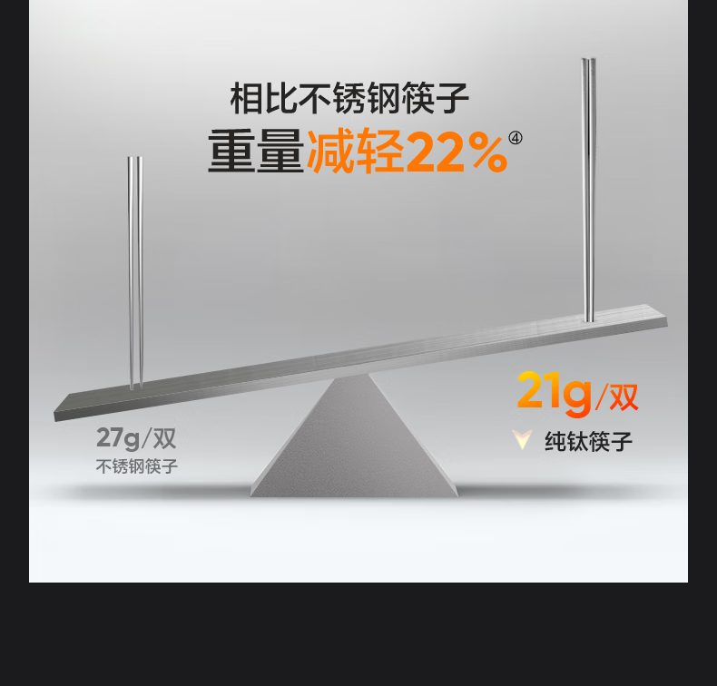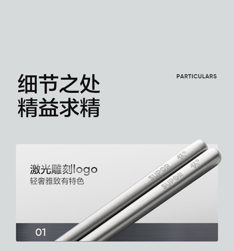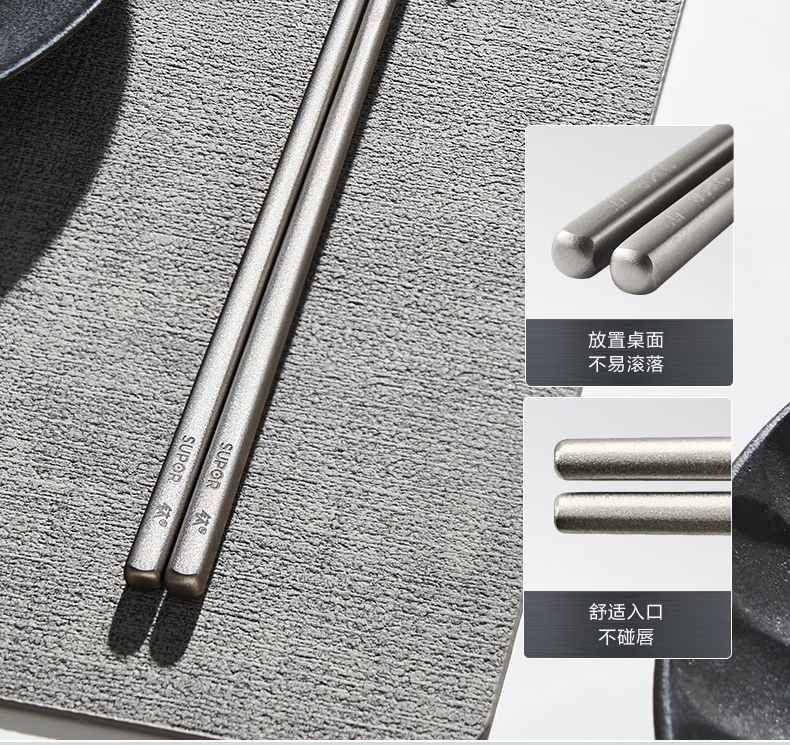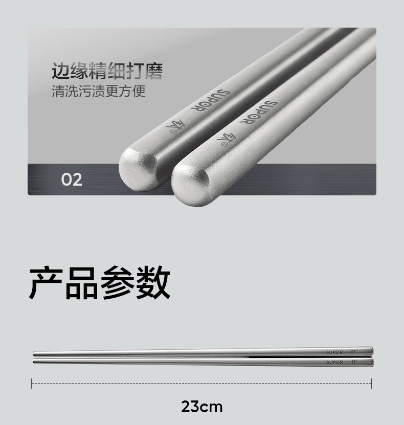 苏泊尔(SUPOR)100%纯钛筷子 家用高档金属筷钛质中空防烫防滑轻量便携餐具套装 100%纯钛筷子5双