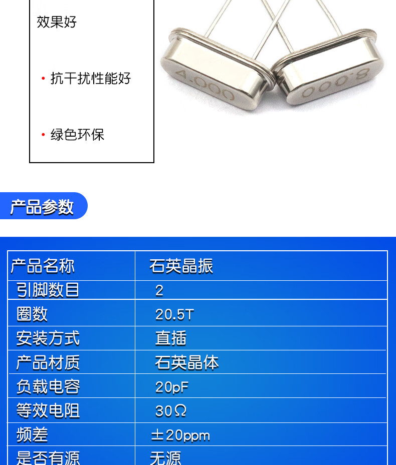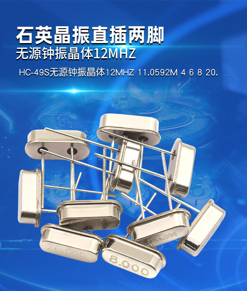 Quartz crystal oscillator direct plug 2 pins HC-49S passive crystal 12MHZ 11.0592M 4M24M25M8M10M16M Passive crystal oscillator 24.576M direct plug 2 pins (10 pieces)