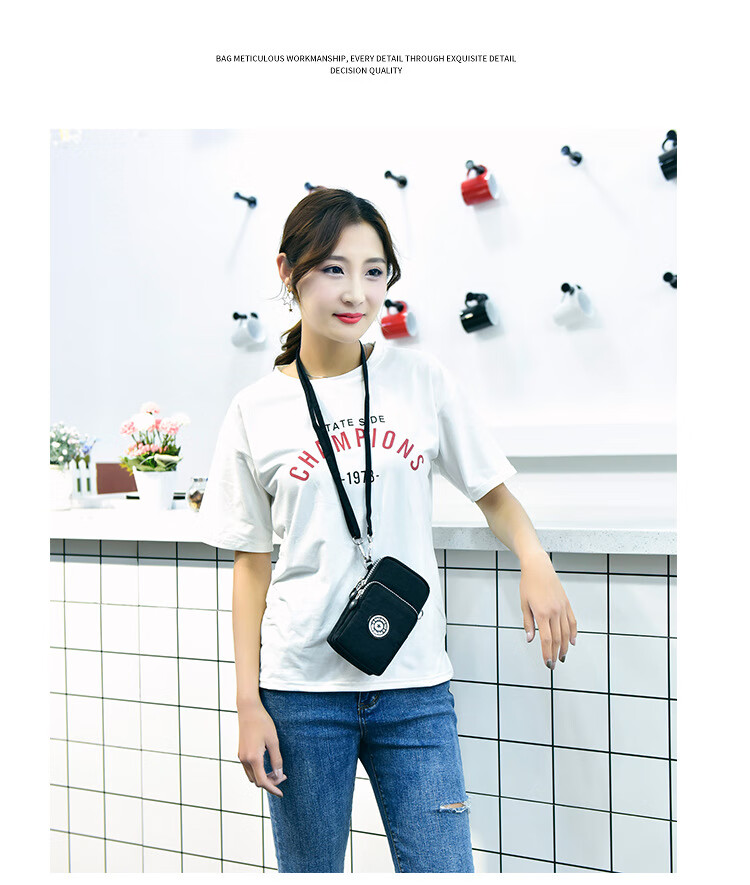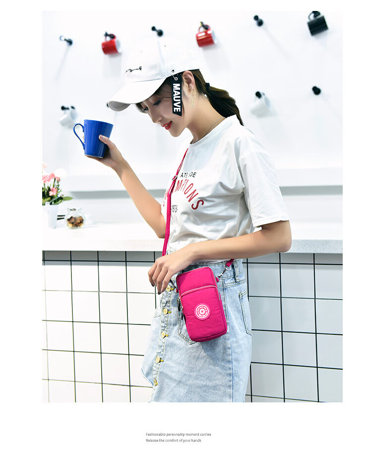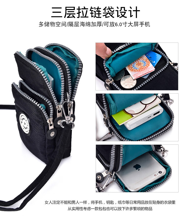 Wholesale new cross-body mobile phone bag women's small bag fabric mobile phone bag hanging neck vertical arm bag wrist coin purse dark blue