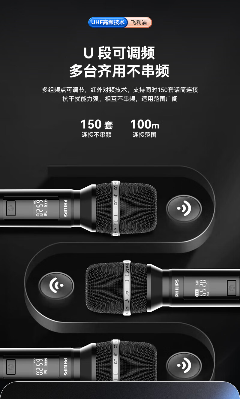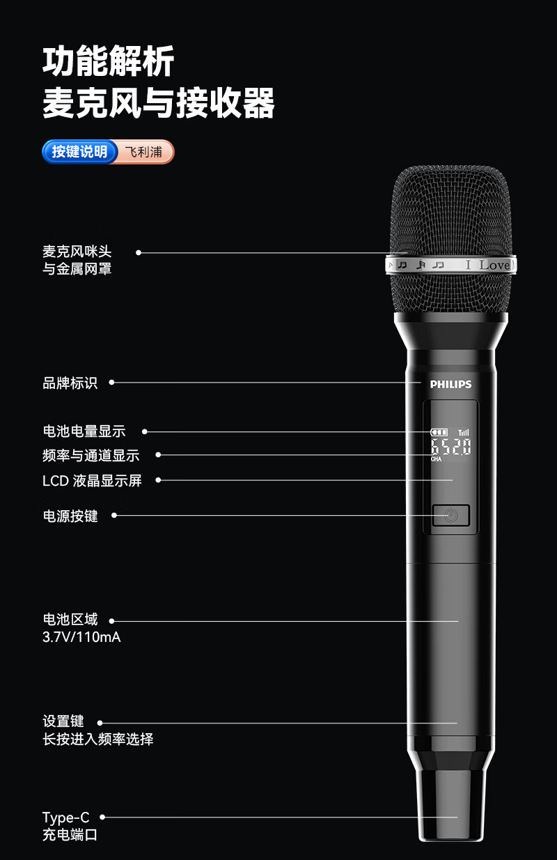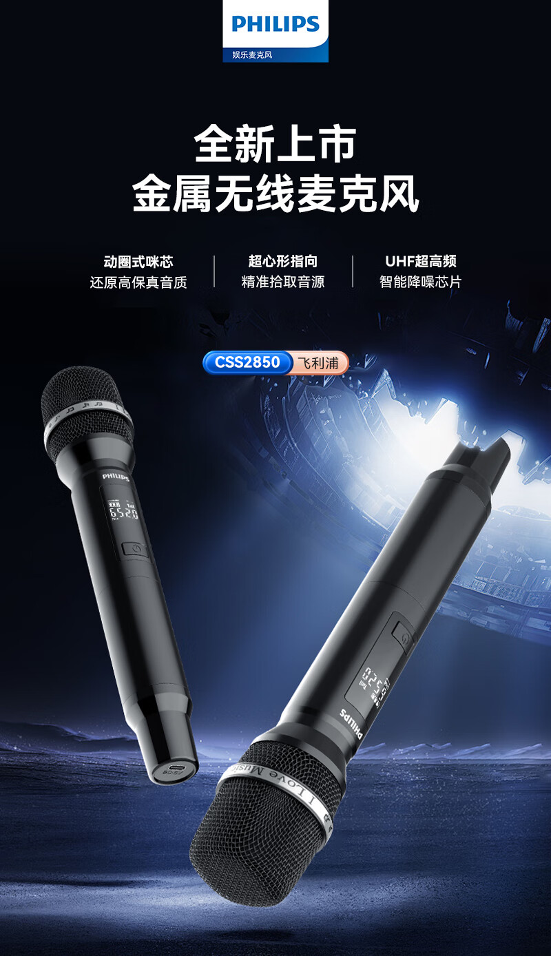 Philips CSS2850 portable wireless microphone handheld microphone outdoor audio karaoke sound card live broadcast home singing universal microphone home ktv conference speaker charging U segment bel canto karaoke microphone single microphone version (for use with audio/sound card)
