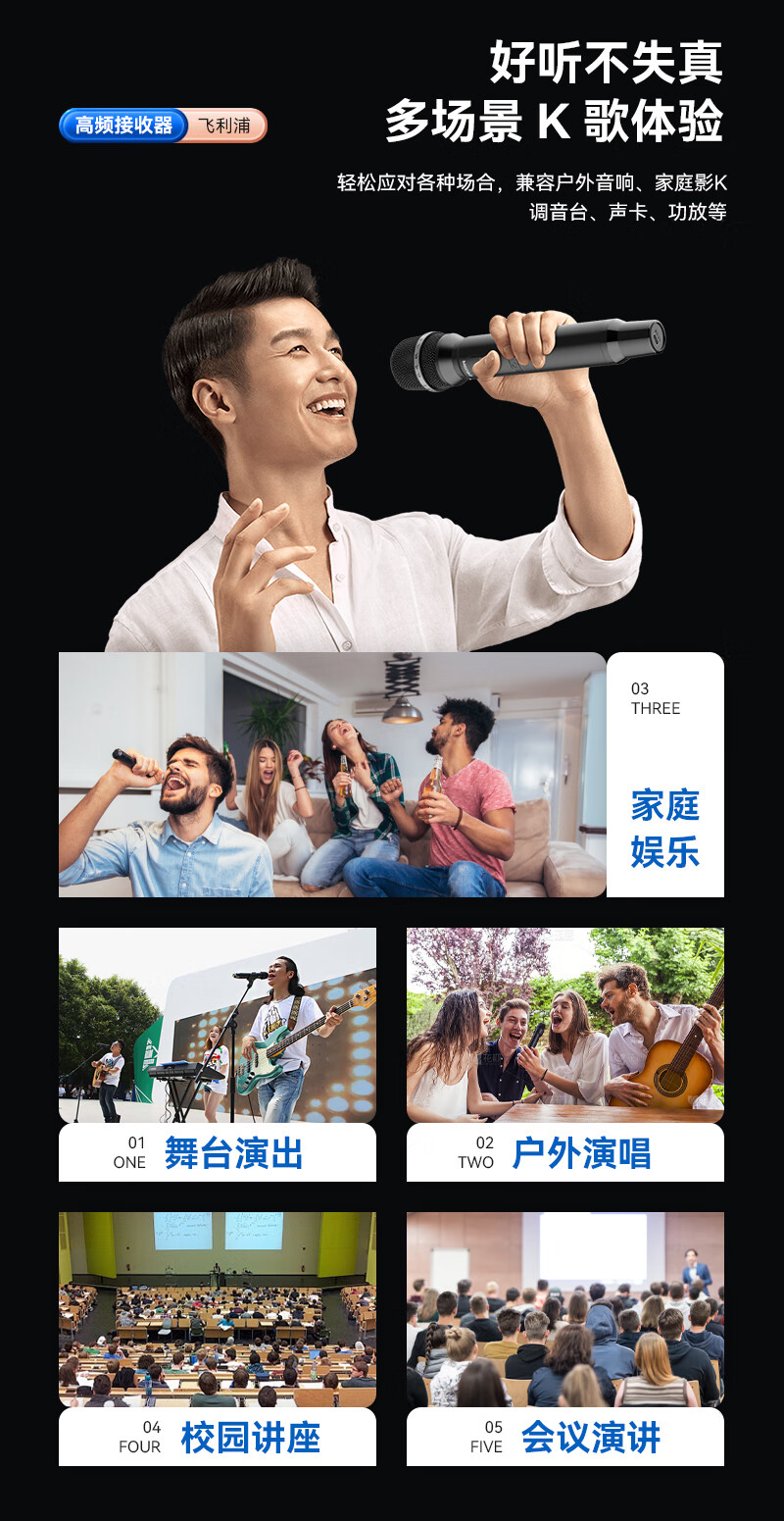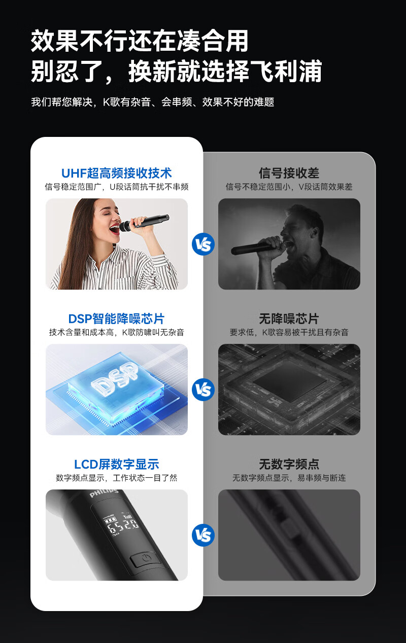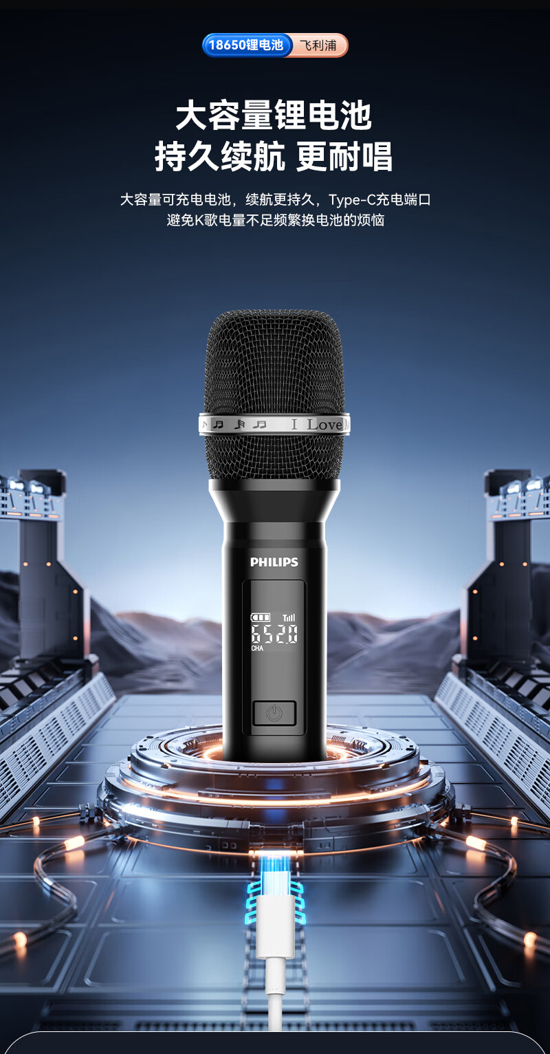 Philips CSS2850 portable wireless microphone handheld microphone outdoor audio karaoke sound card live broadcast home singing universal microphone home ktv conference speaker charging U segment bel canto karaoke microphone single microphone version (for use with audio/sound card)