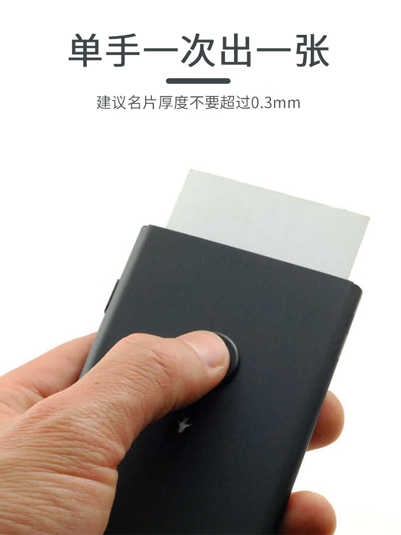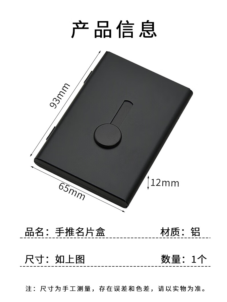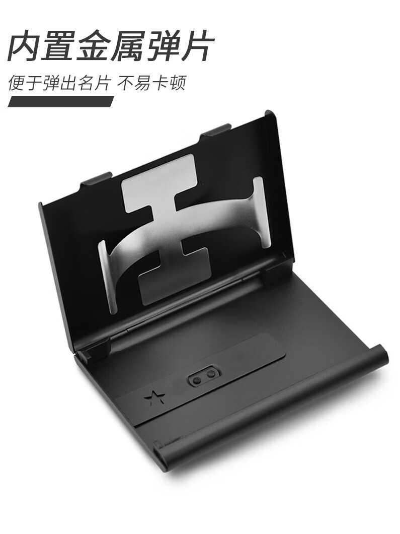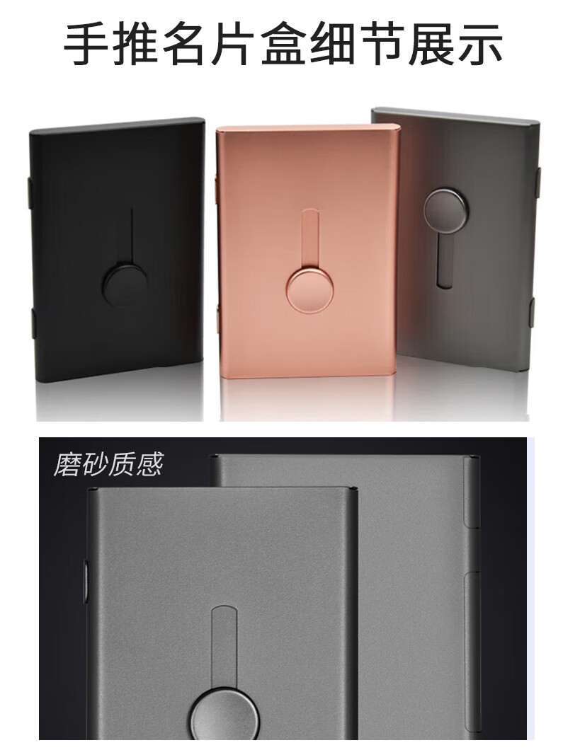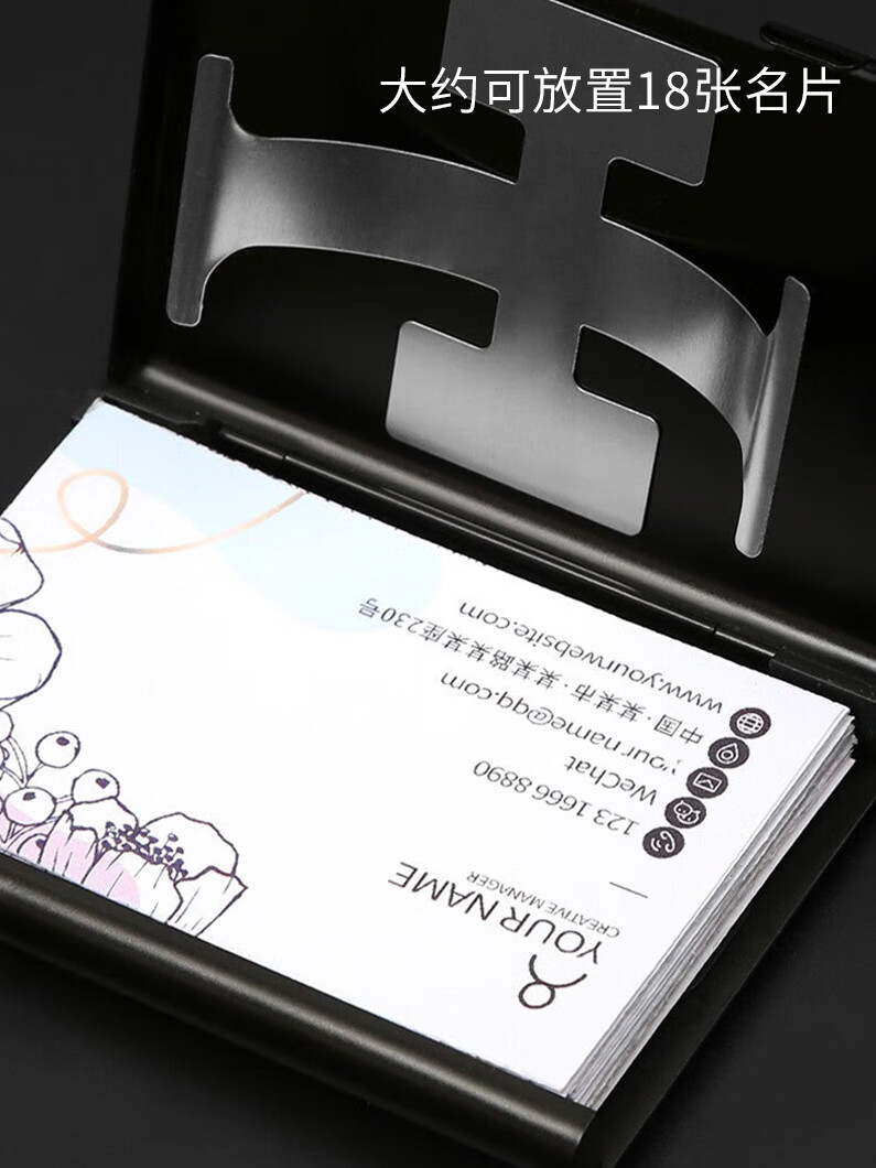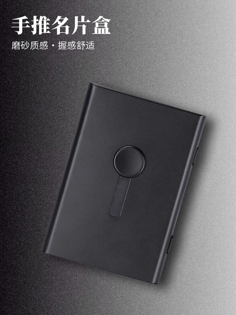 Kunsui business card box for men and women, metal business card holder, office supplies, hand-push portable business card storage box, 1 hand-push business card holder, black