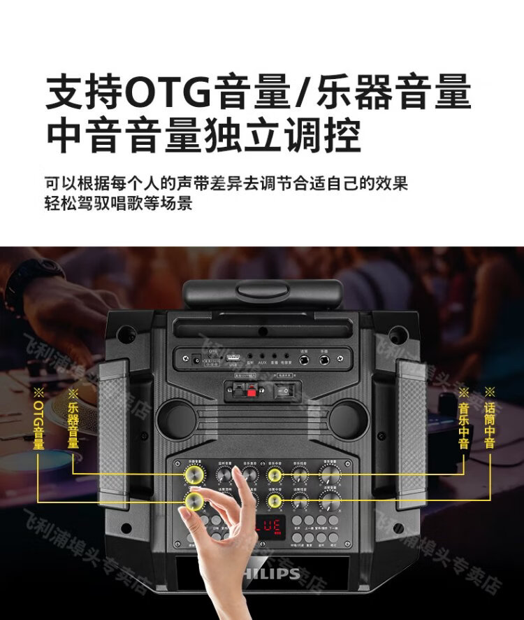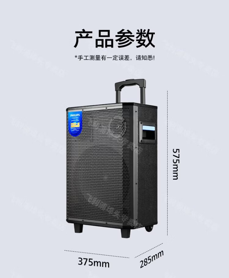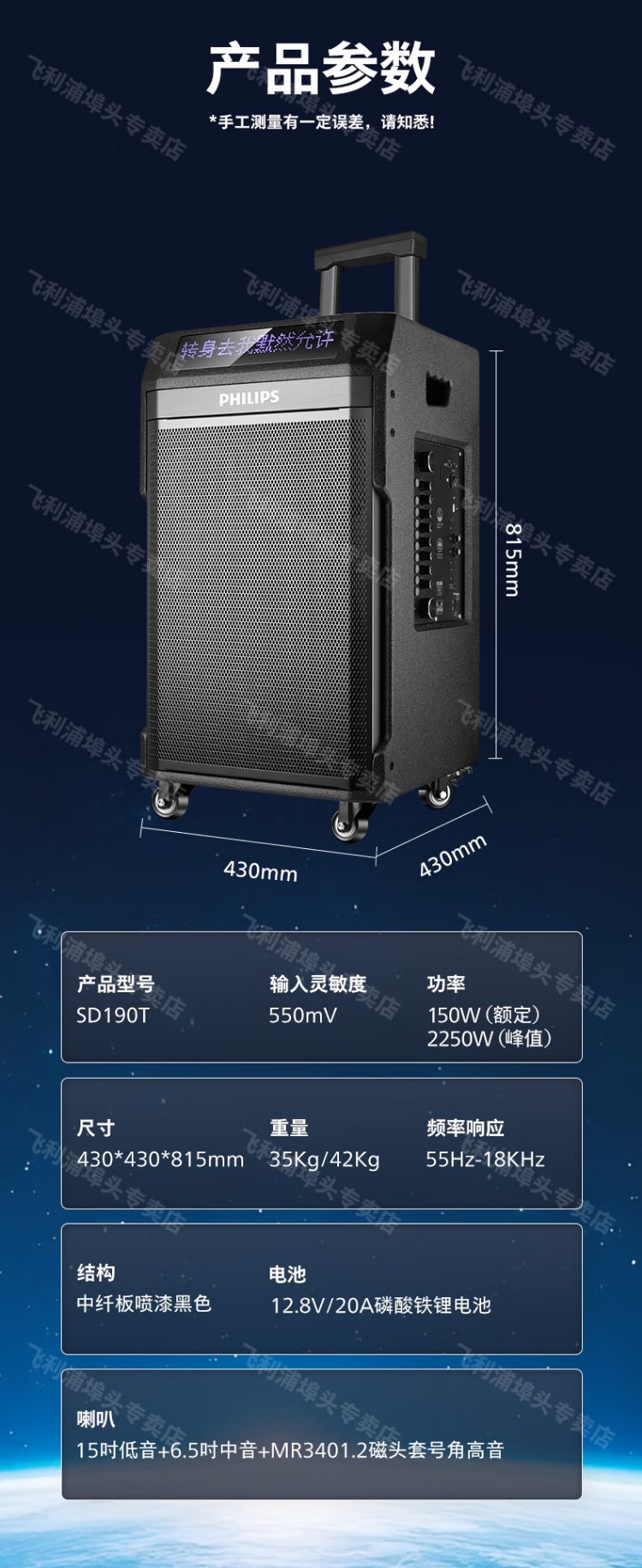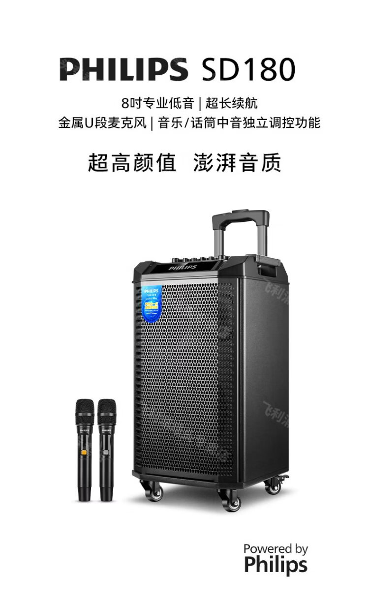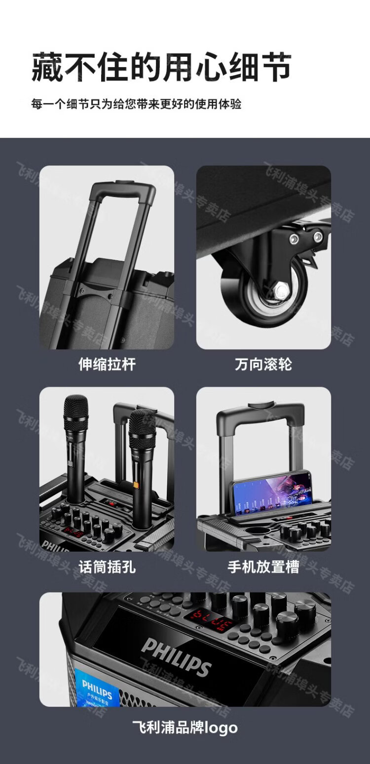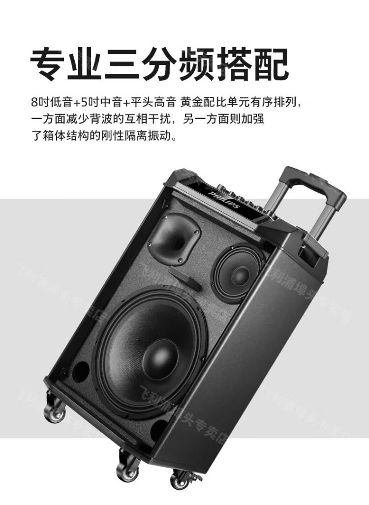 Philips square dance audio outdoor stage high-power mobile portable trolley commercial conference speaker wireless Bluetooth high volume karaoke amplification with dual microphone SD190 karaoke system + horn tweeter