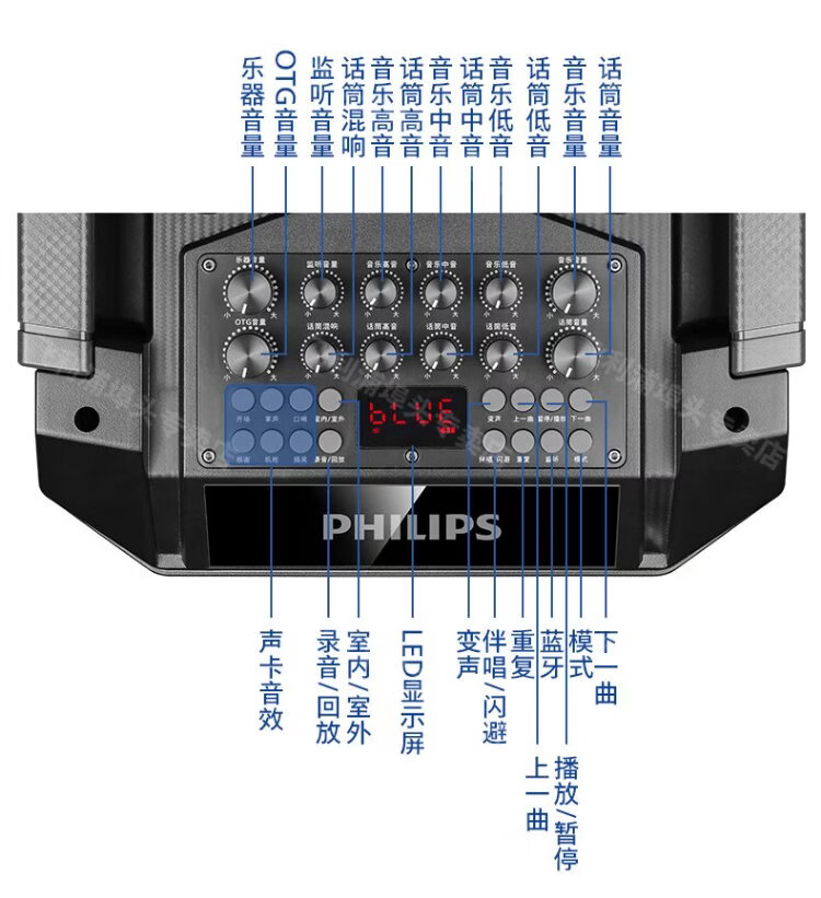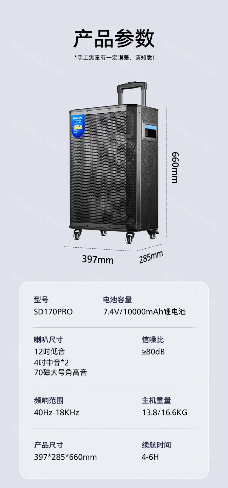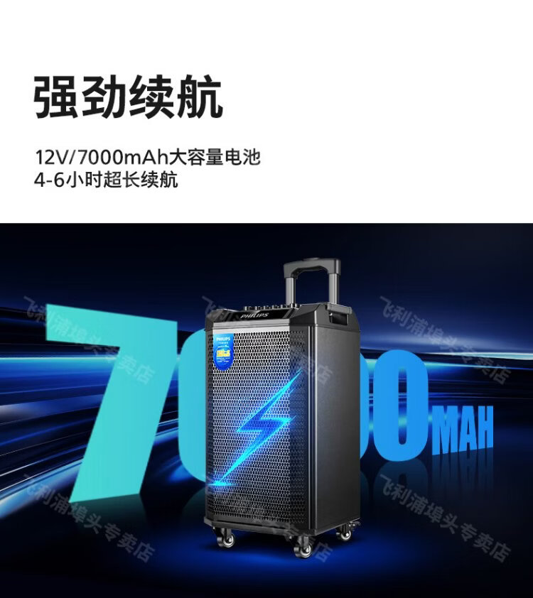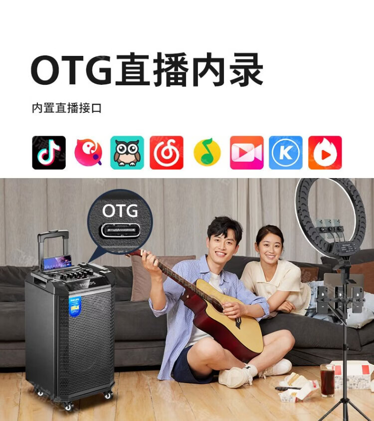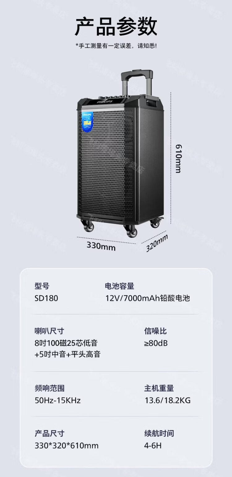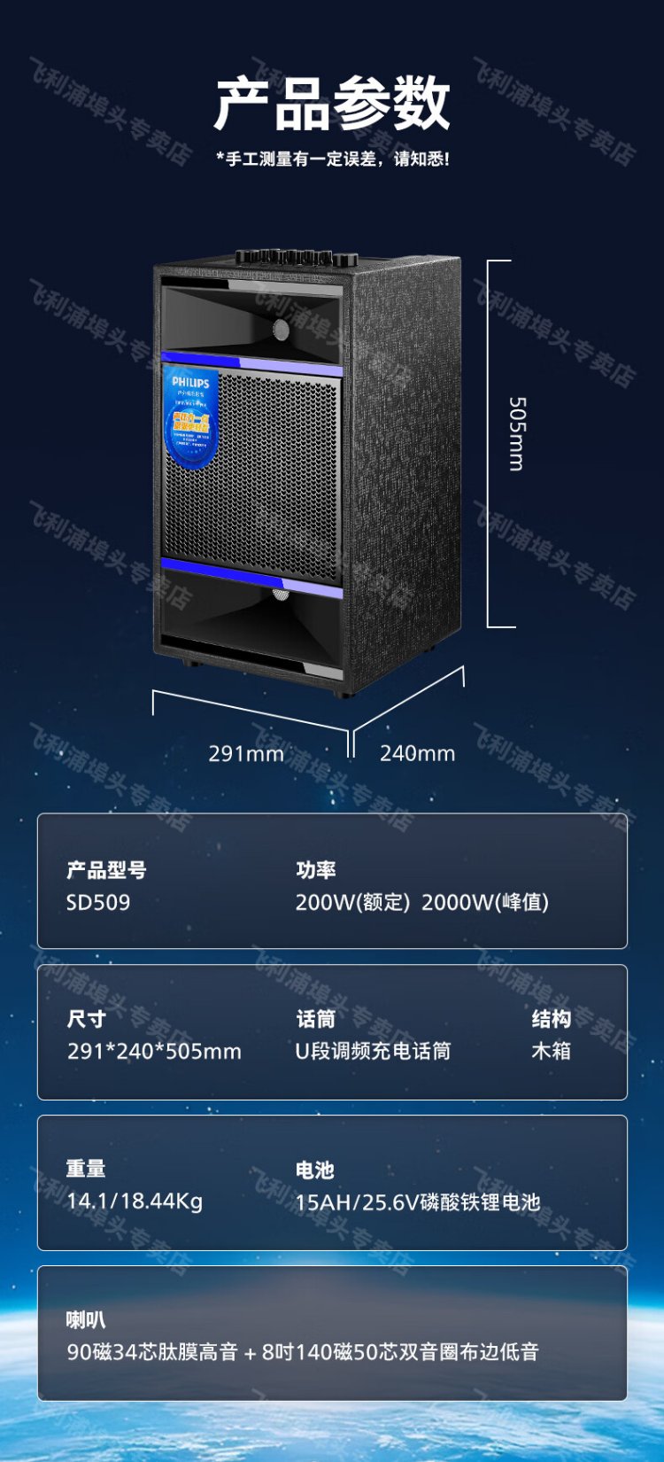 Philips square dance audio outdoor stage high-power mobile portable trolley commercial conference speaker wireless Bluetooth high volume karaoke amplification with dual microphone SD190 karaoke system + horn tweeter