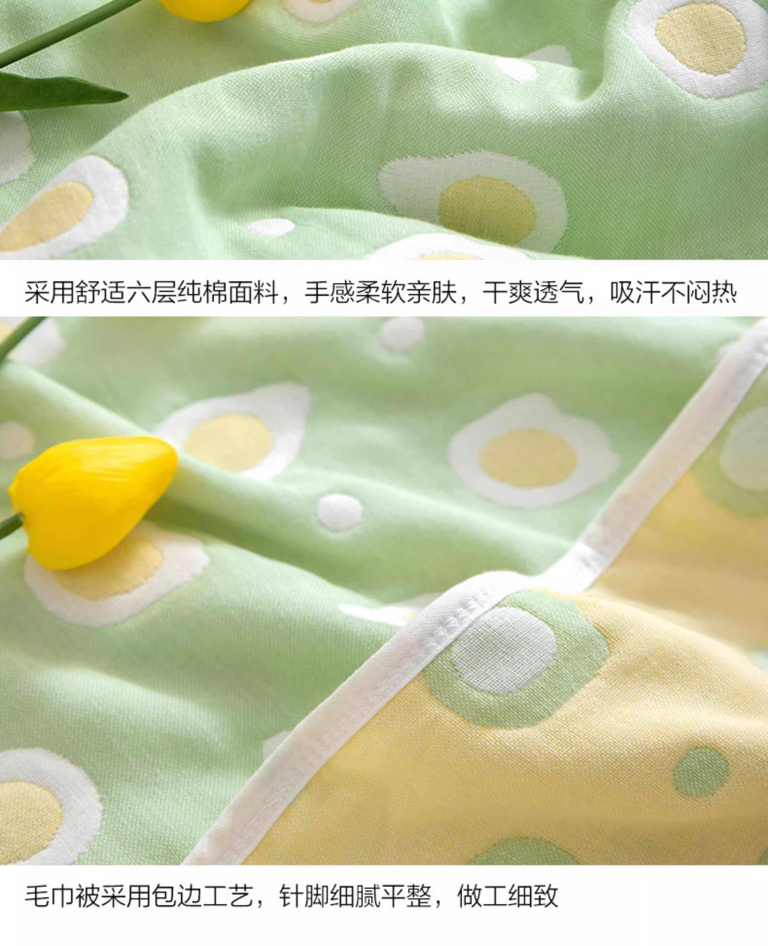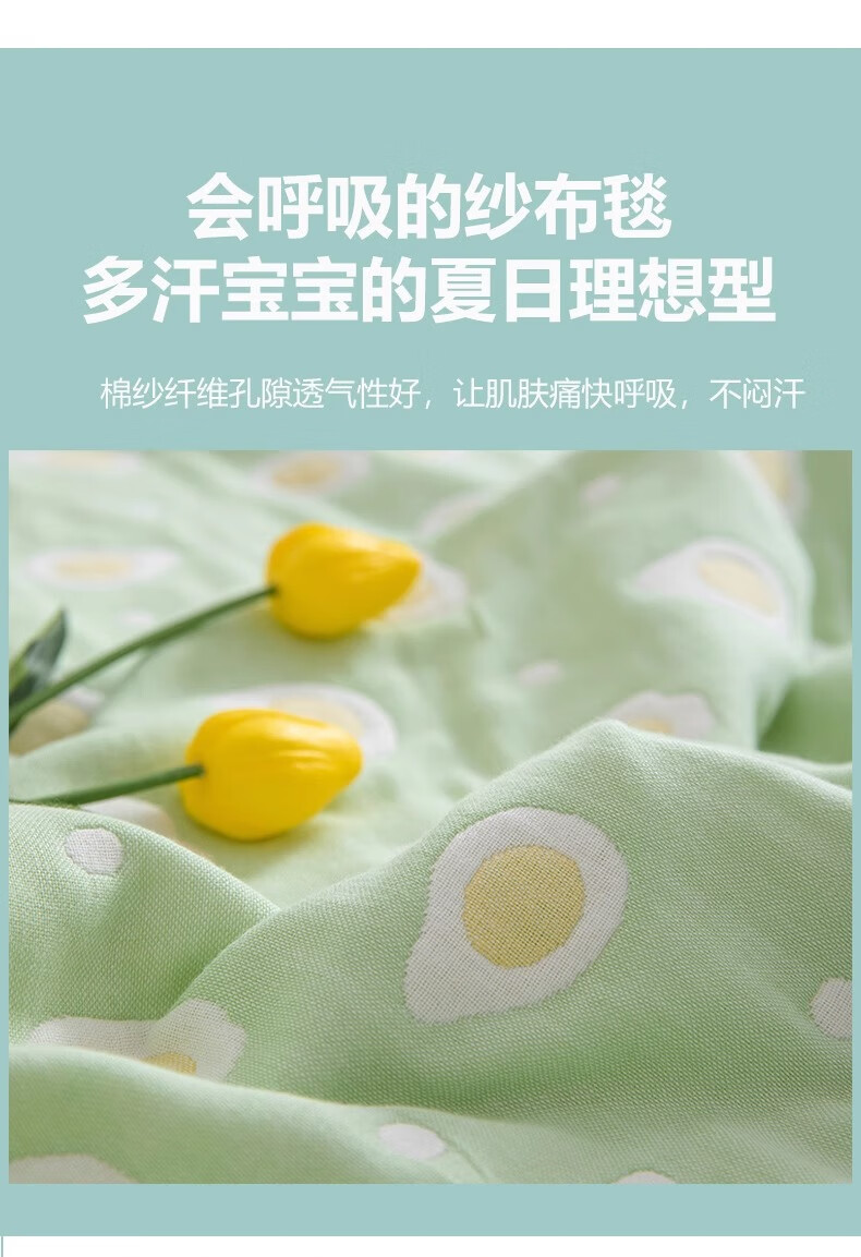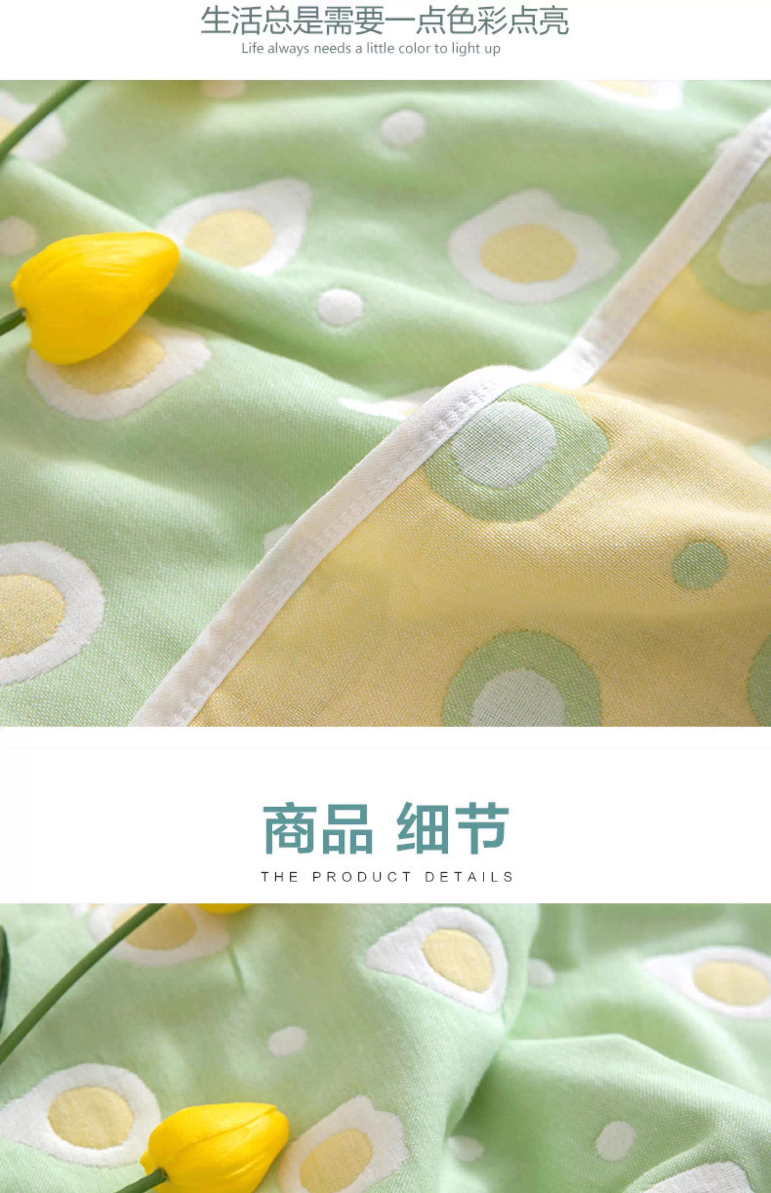 Muji 100% cotton six-layer gauze towel quilt summer thin blanket 100% cotton baby nap blanket for all seasons Omelette green 100% cotton six-layer gauze 150*200cm single blanket 100% cotton fabric