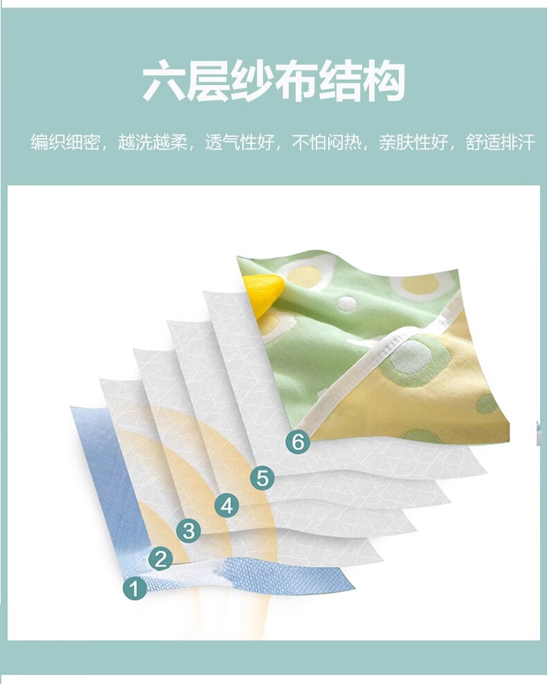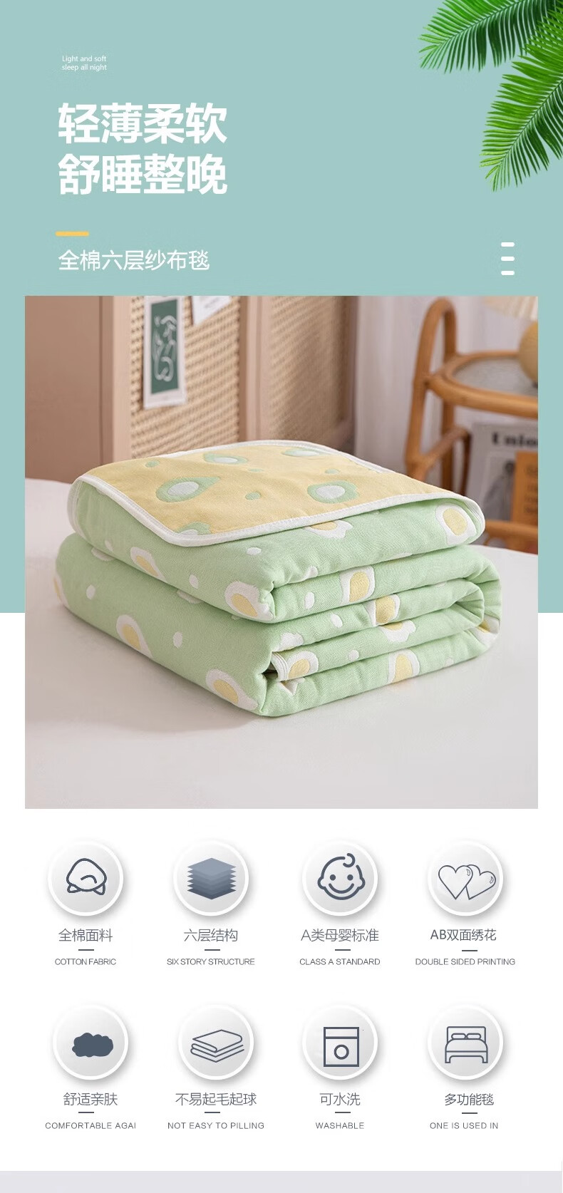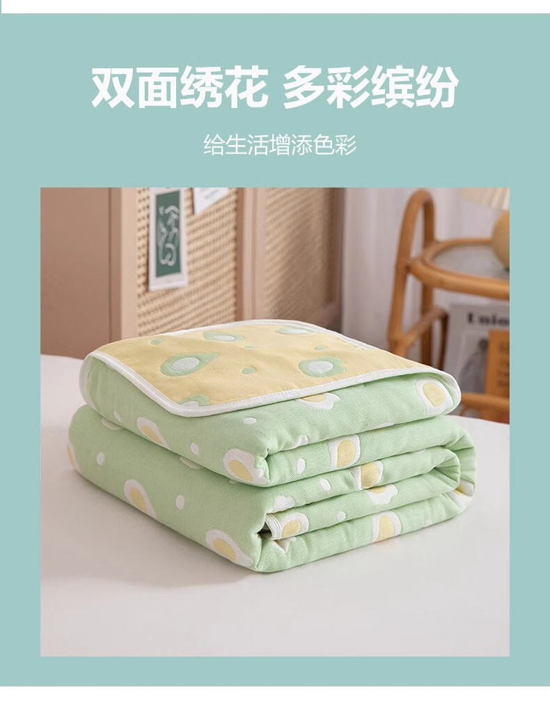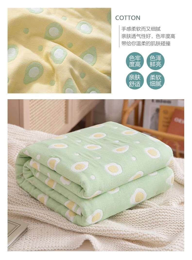Muji 100% cotton six-layer gauze towel quilt summer thin blanket 100% cotton baby nap blanket for all seasons Omelette green 100% cotton six-layer gauze 150*200cm single blanket 100% cotton fabric