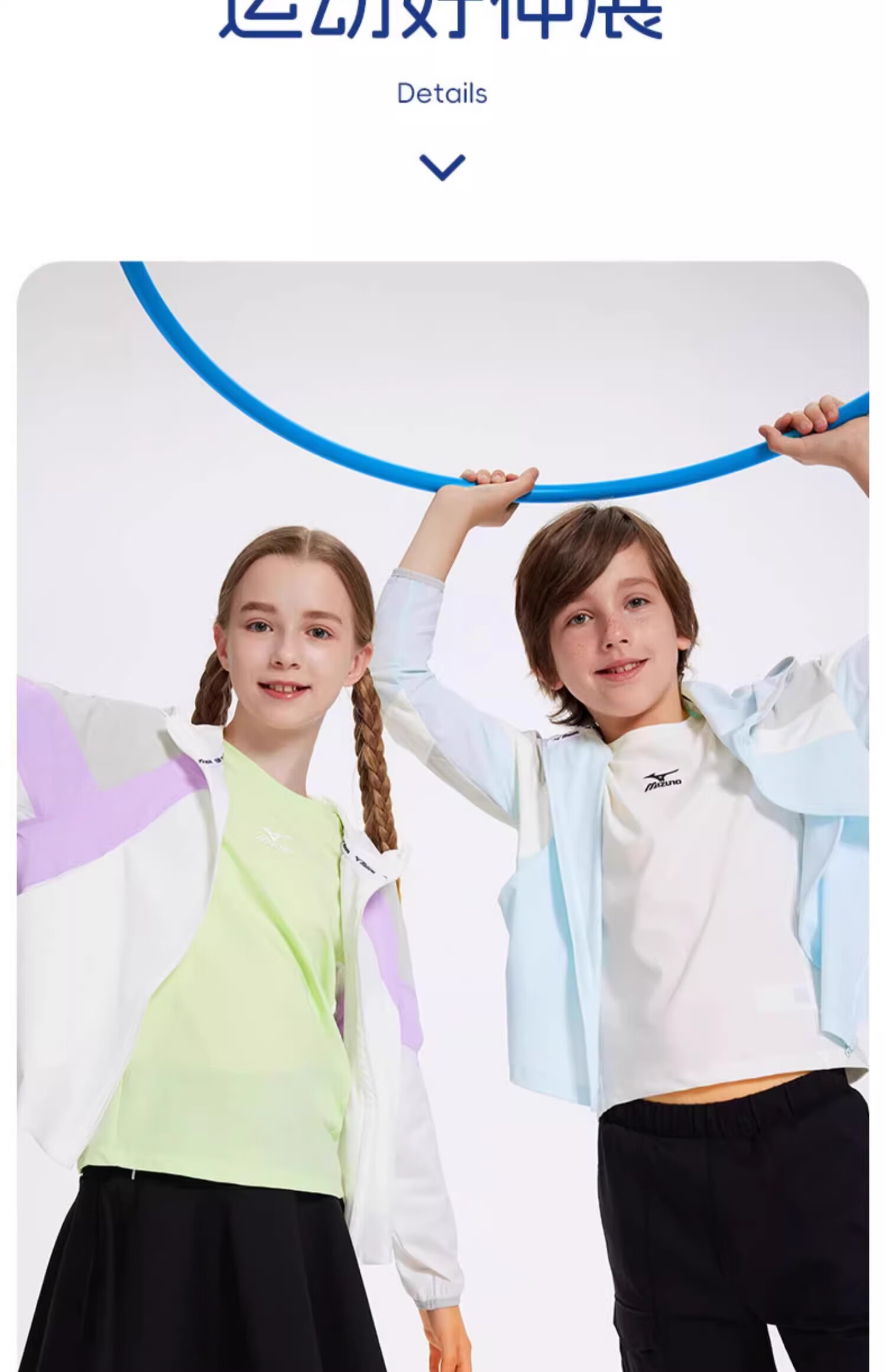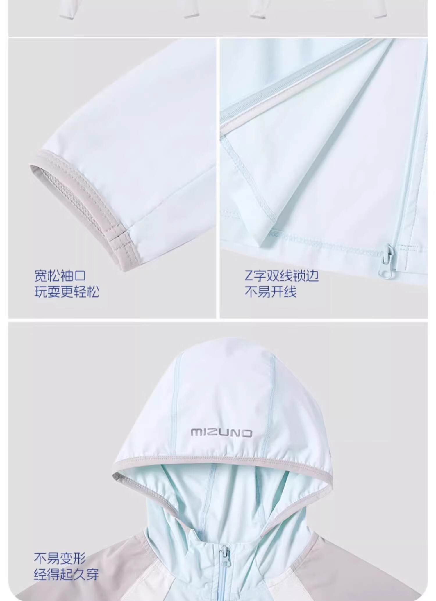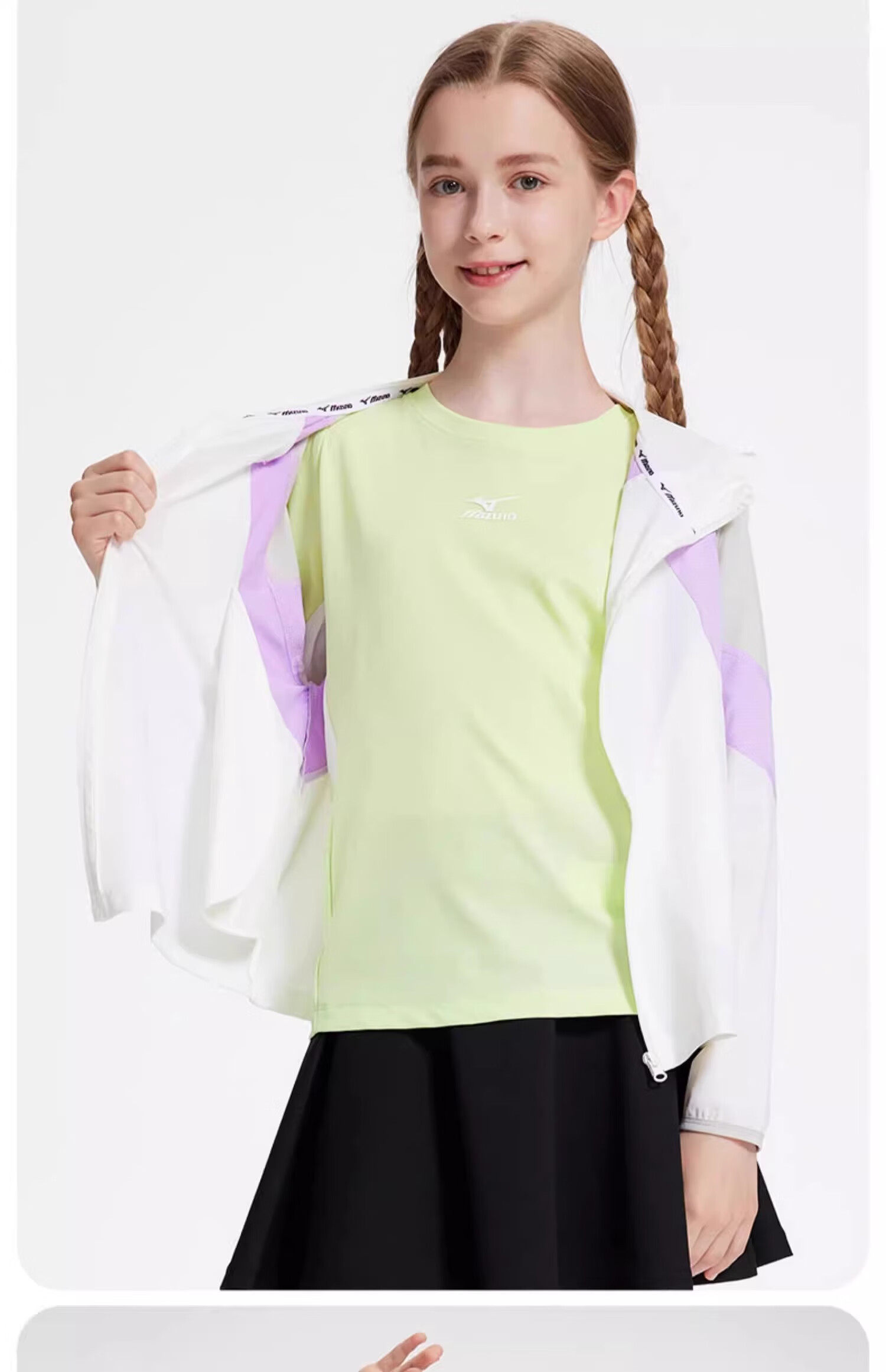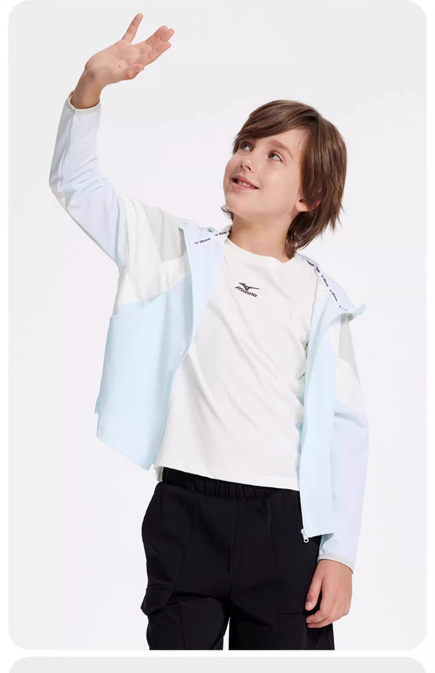 Mizuno Mizuno Children's Official Authentic Children's Clothing Summer New Sunproof Jacket Mosquito-proof Pants Set Two-piece Set for Older Children White Black 160 CM (85-100Jin Jin is equal to 0.5kg)