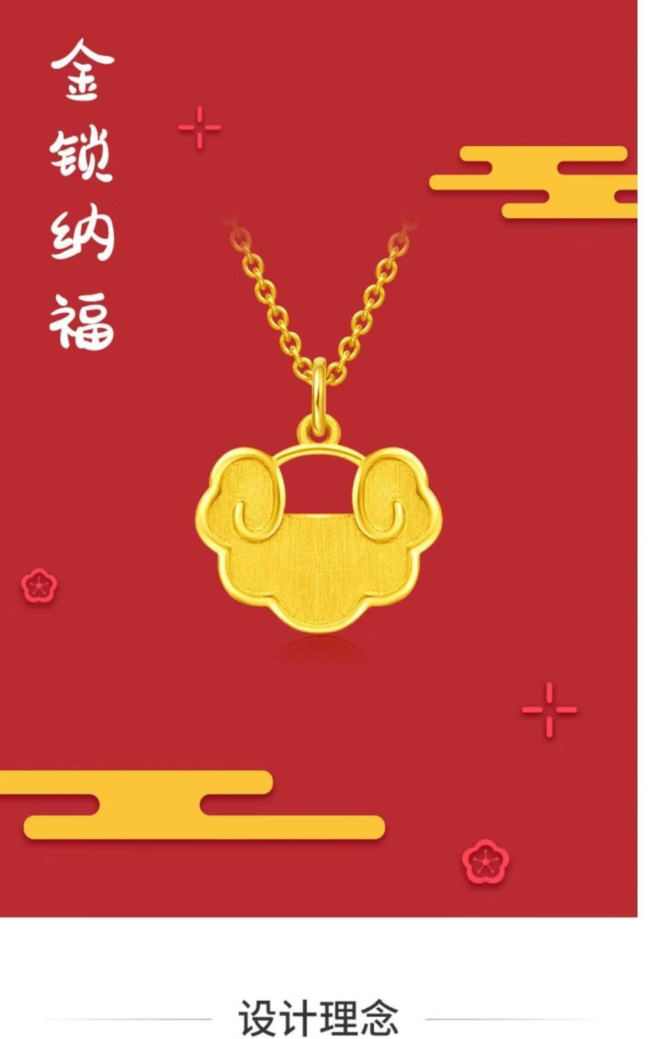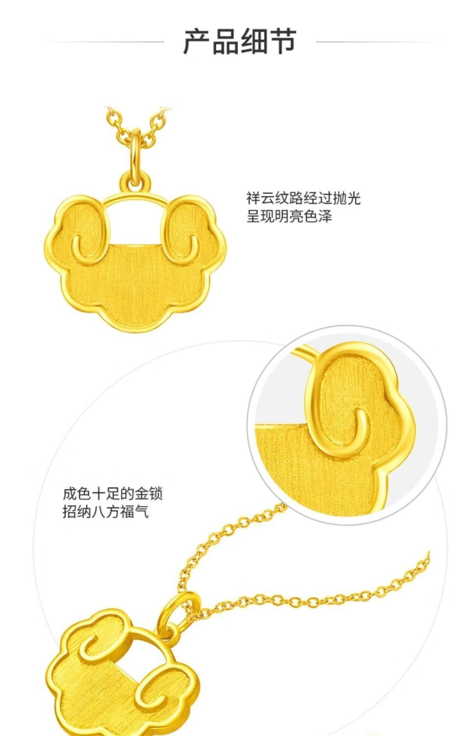BZK pure gold 999 gold lock Nafu Xiangyun lock pendant gold temperament Nafu comes with gold-plated safety lock 2.85g Xiangyun lock chain with certificate + gift box