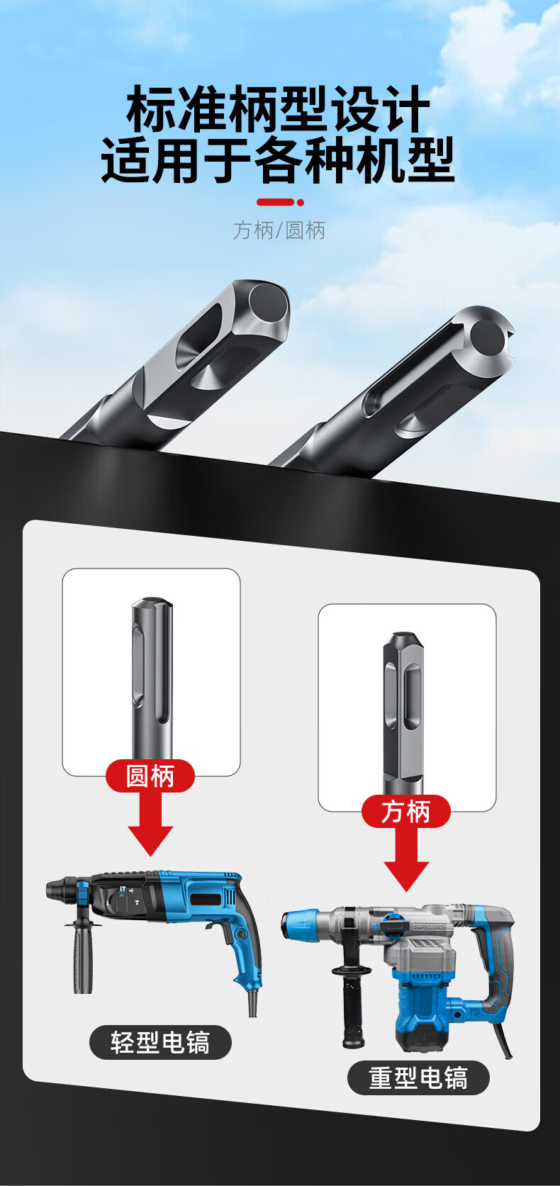 Mera electric hammer electric pick elbow electric hammer impact chisel square handle round handle bay flat chisel concrete soil cement slotted slot chisel square handle curved chisel 14*180*20