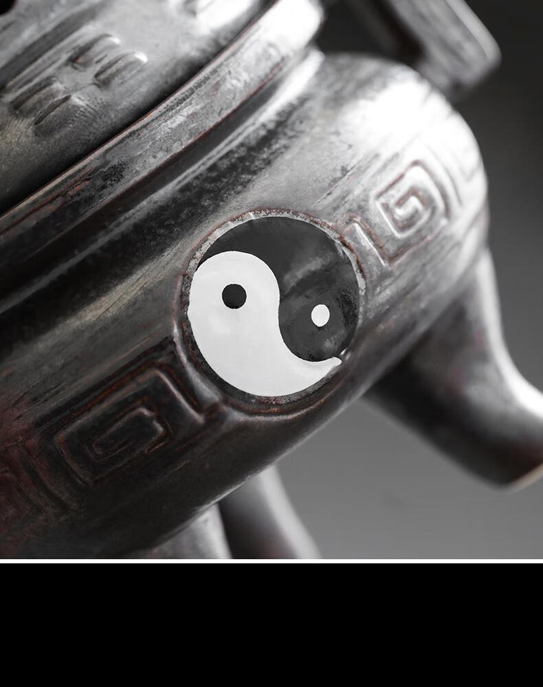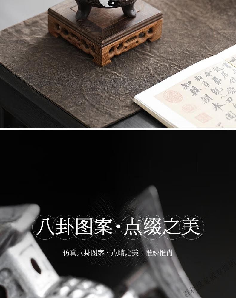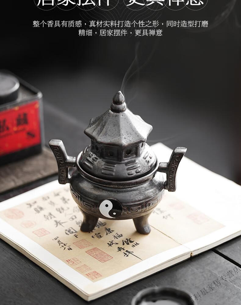 Miaopule Alchemy Furnace Cauldron Taishang Laojun Furnace Zen Tai Chi Bagua Plate Incense Furnace Home Indoor Aromatherapy Ceramic Incense Creative Chicken Wings Square + Jiamei - Rust Glaze Binary Ears Three Legs -