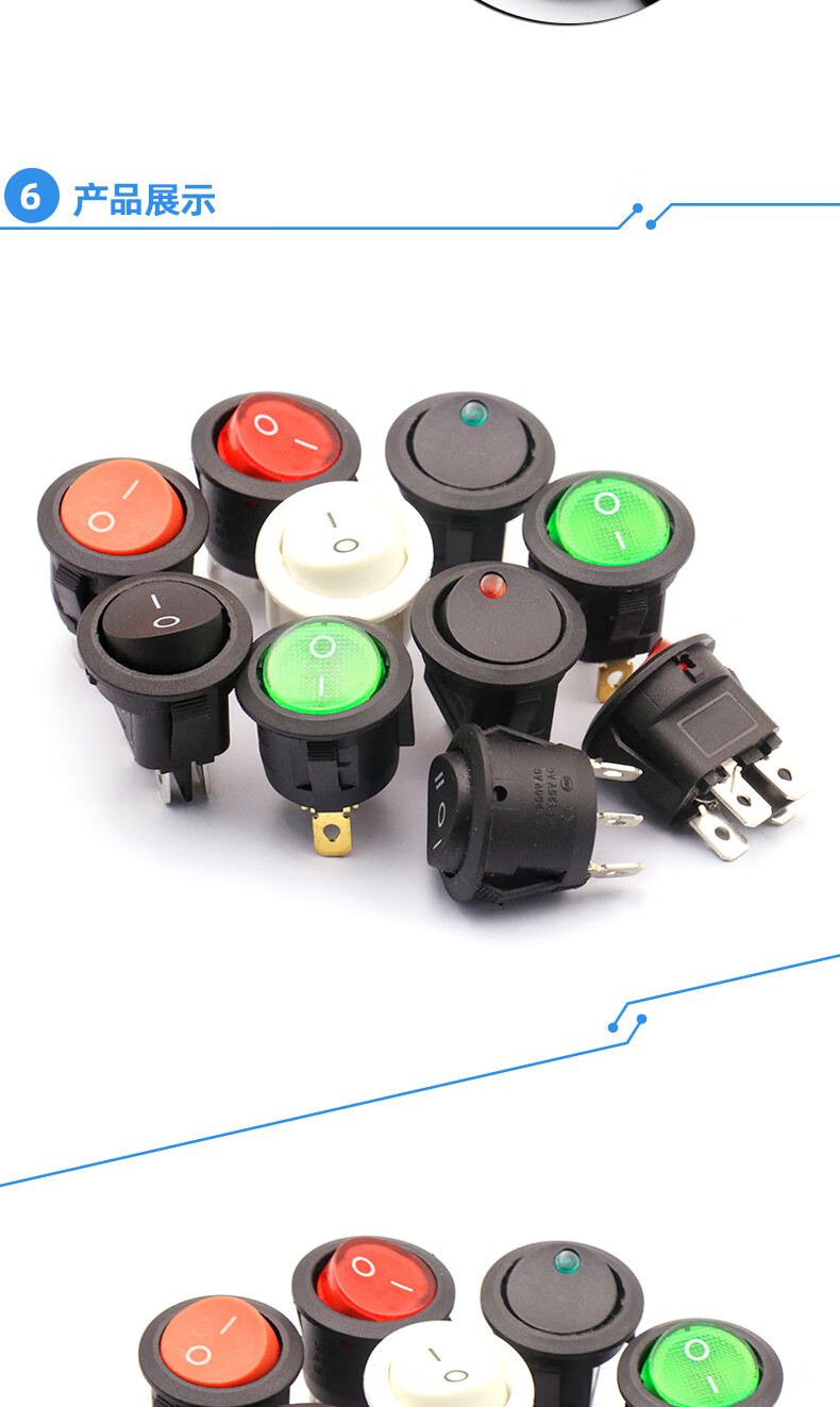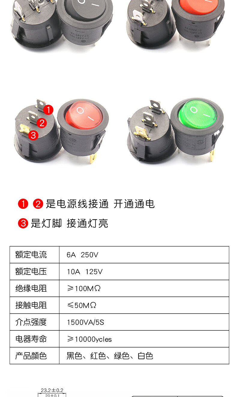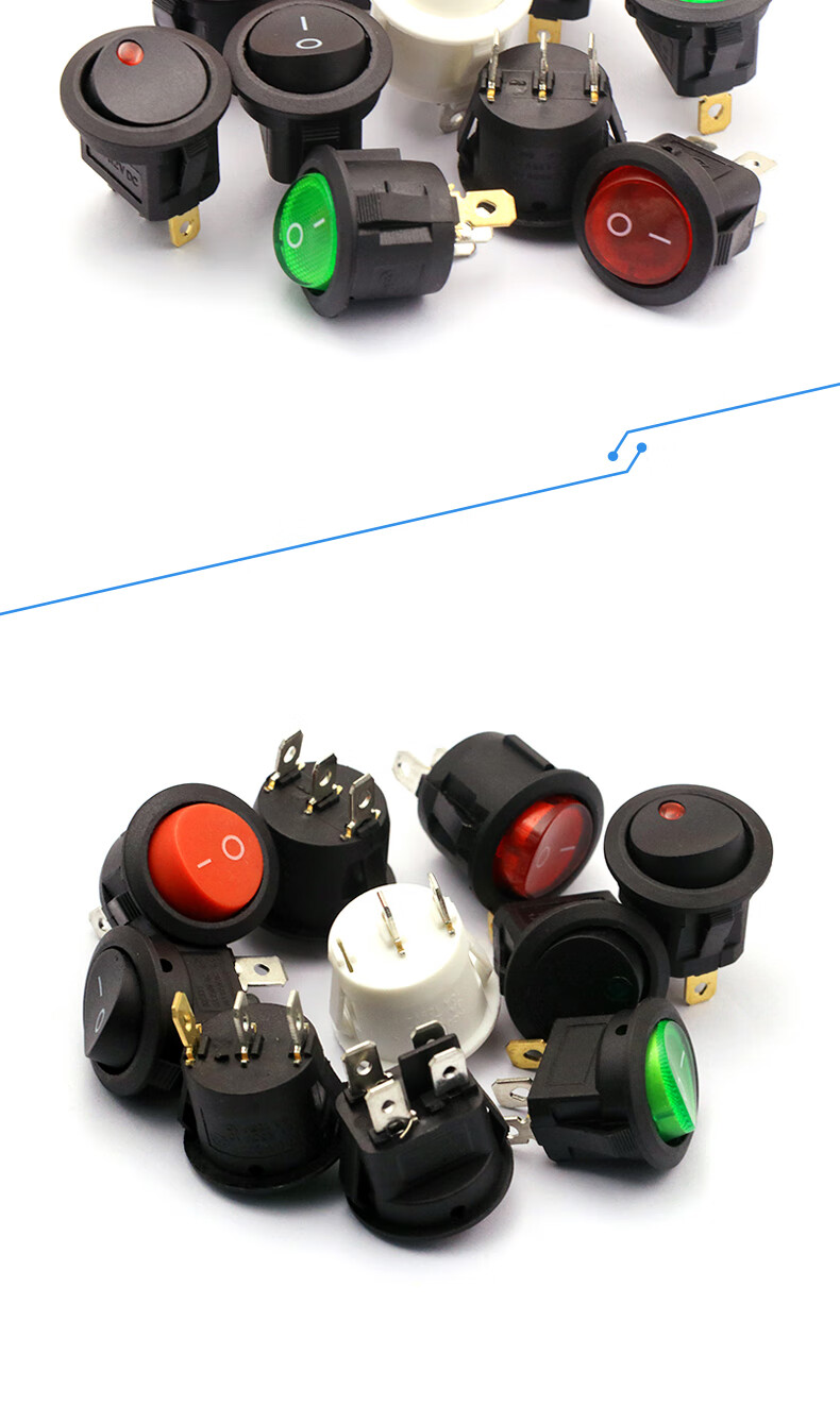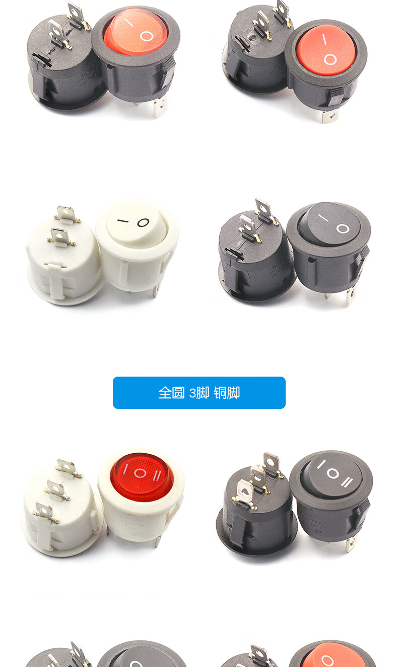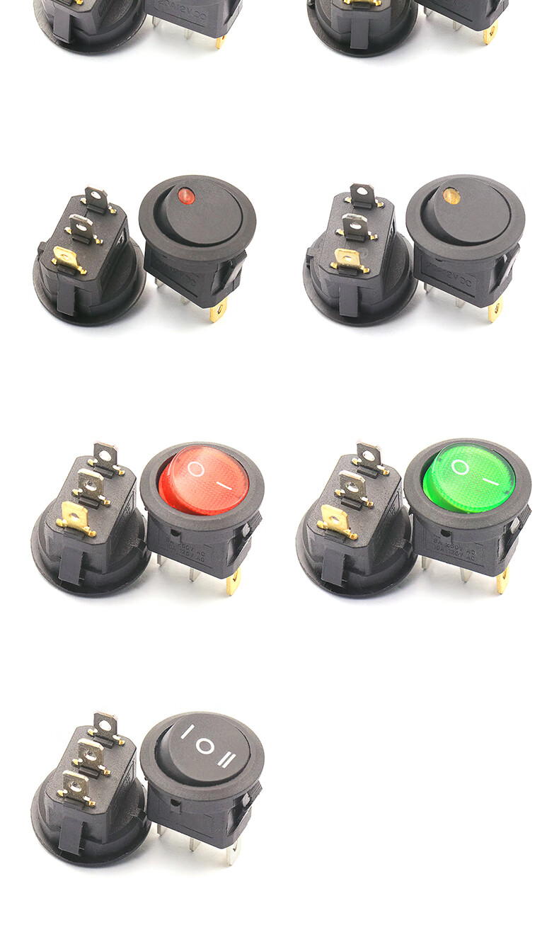 Dafuri boat-shaped switch boat-shaped circular rocker power switch button 2 feet 3 red, green, white and black opening 20mm6A 250V full circle black light-free opening 22mm 3 gears 6 feet copper feet