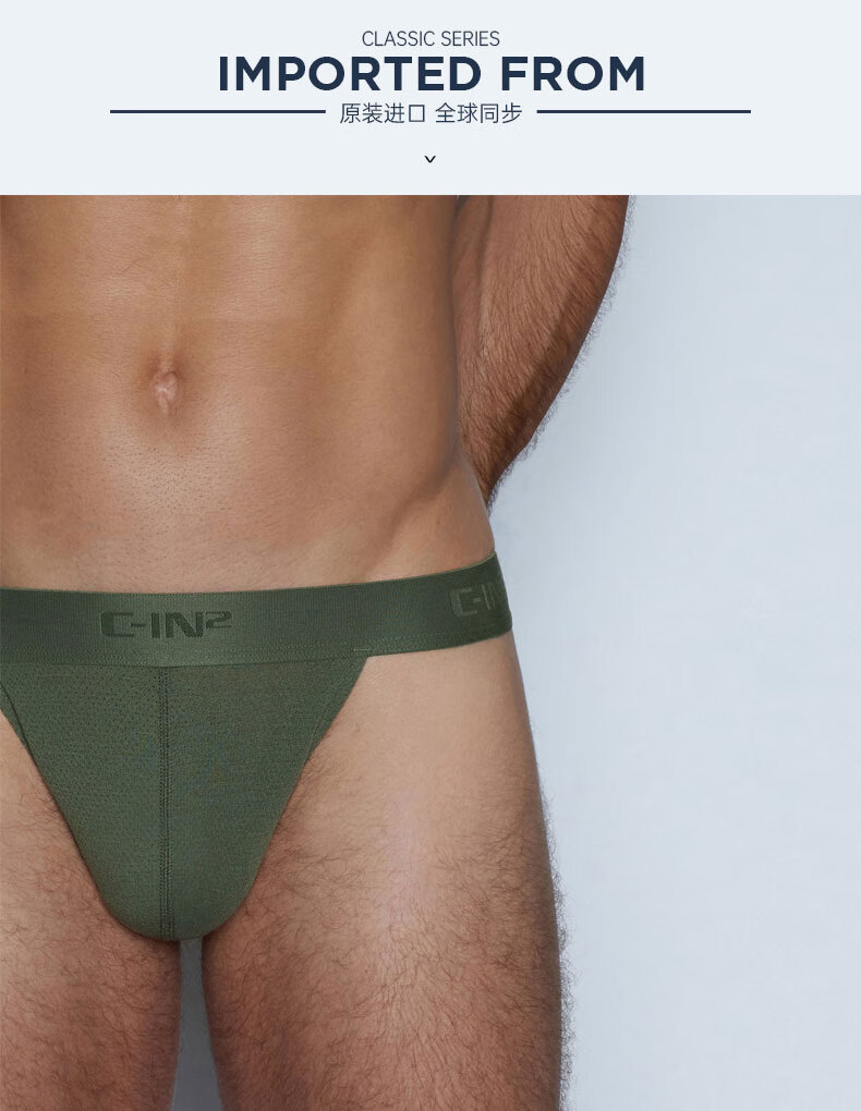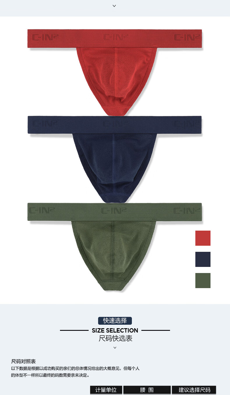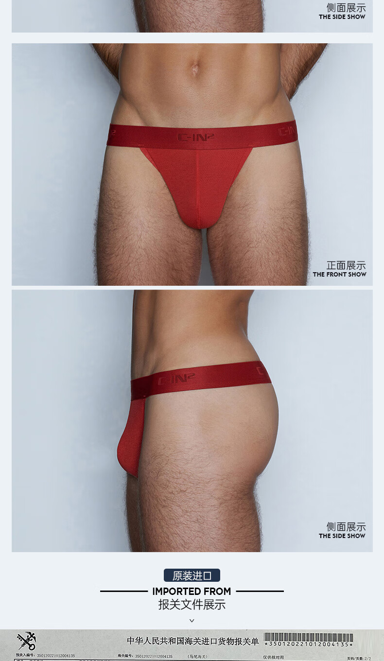 C-IN2 summer new men's thong small mesh breathable buttocks sexy U-convex low-waisted single thong 4602PB 607 Roco red - 1 pair M suitable for 2'4-2'5 waist (31-33 size)