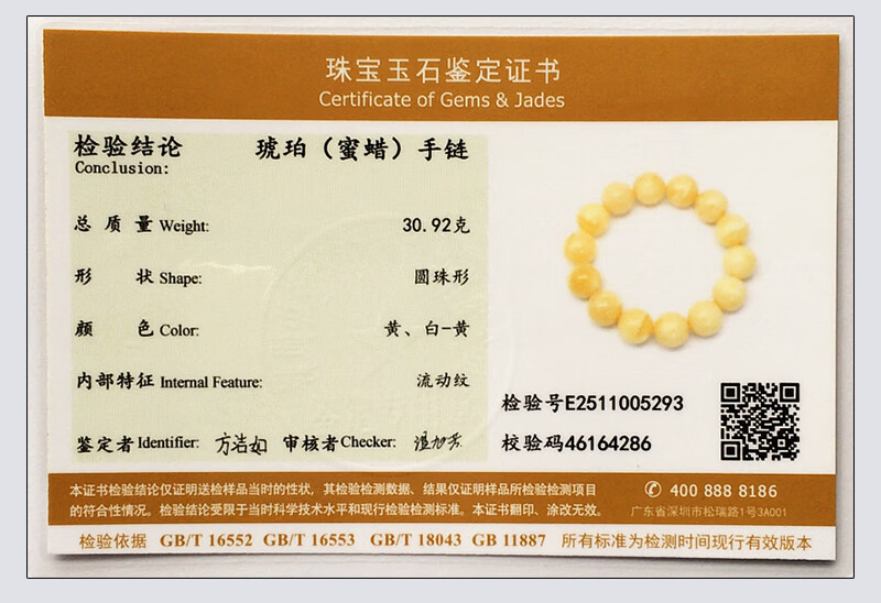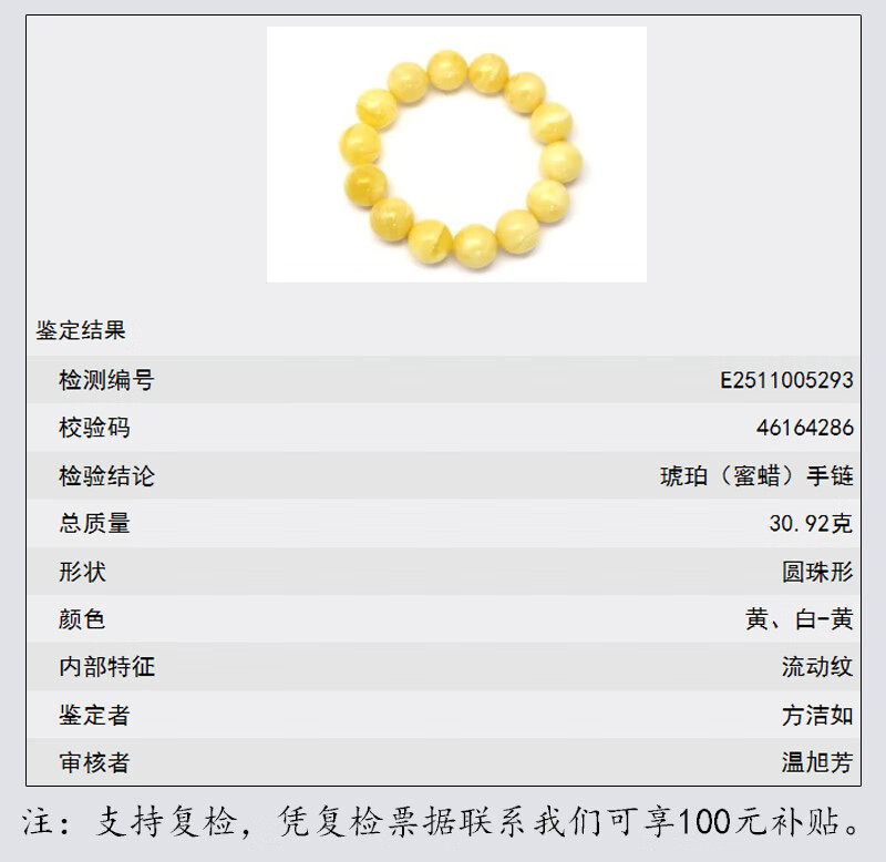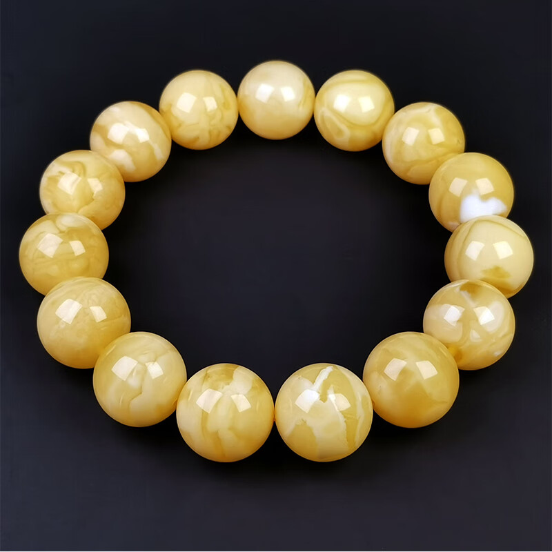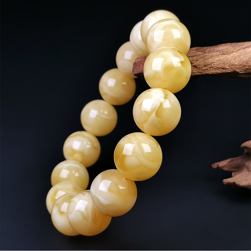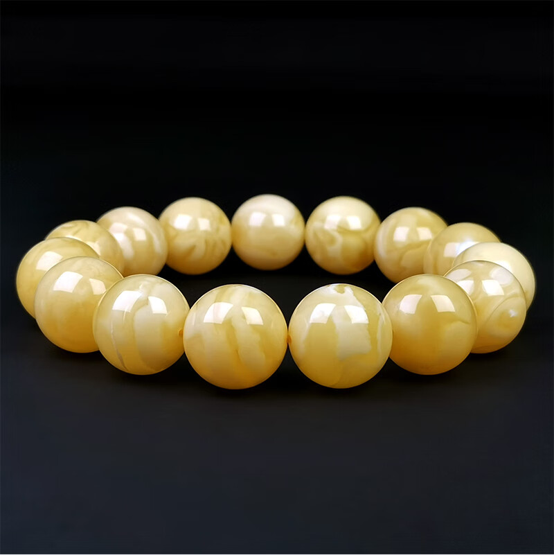 Amber style, one thing, one picture, one certificate, natural beeswax bracelet, men's amber bracelet, white flower wax Russian material, flawless bracelet, 30.92g, 15.5mm