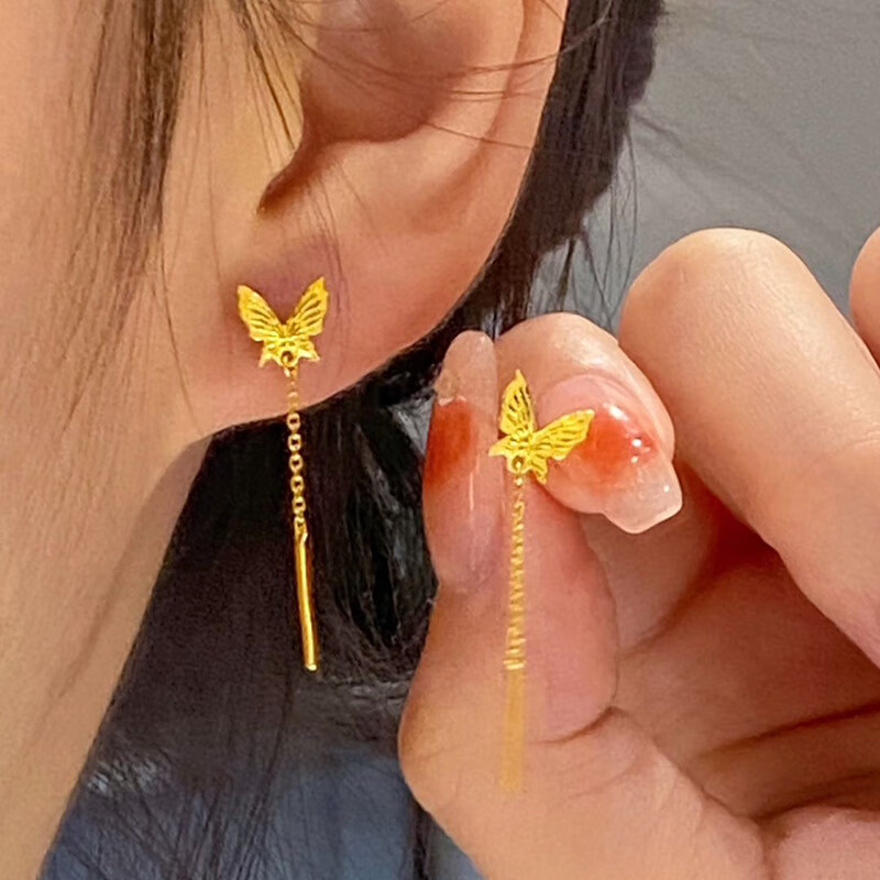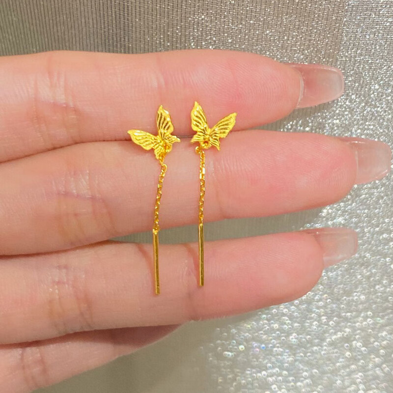 BZK gold butterfly ear wire women's new temperament fashion long tassel earrings 0.01g butterfly tassel earrings