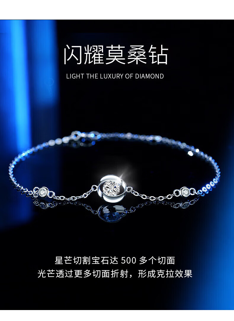 Saturday Fortune 950 Platinum Moissanite Diamond Bracelet Girls Light Luxury Niche Platinum Valentine's Day Birthday Gift Suitable for Birthday Gifts