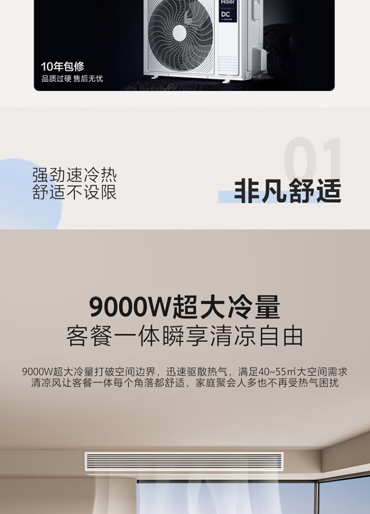 Haier power saving TOP1 net power saving plus duct machine large 3 hp Yunshu duct machine one-to-one household living room central air conditioner full DC frequency conversion self-cleaning Yunshu 3 hp vitality version best value for money fast cooling and fast heating