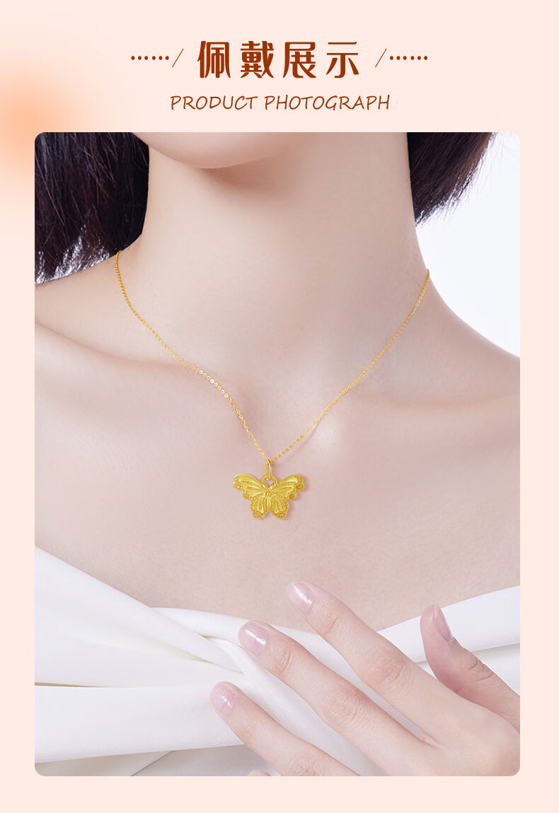 CHINA GOLD 18K gold necklace for women, romantic and versatile butterfly pendant, Valentine's Day birthday gift for girlfriend and lover, 18K butterfly pendant with S925 silver chain