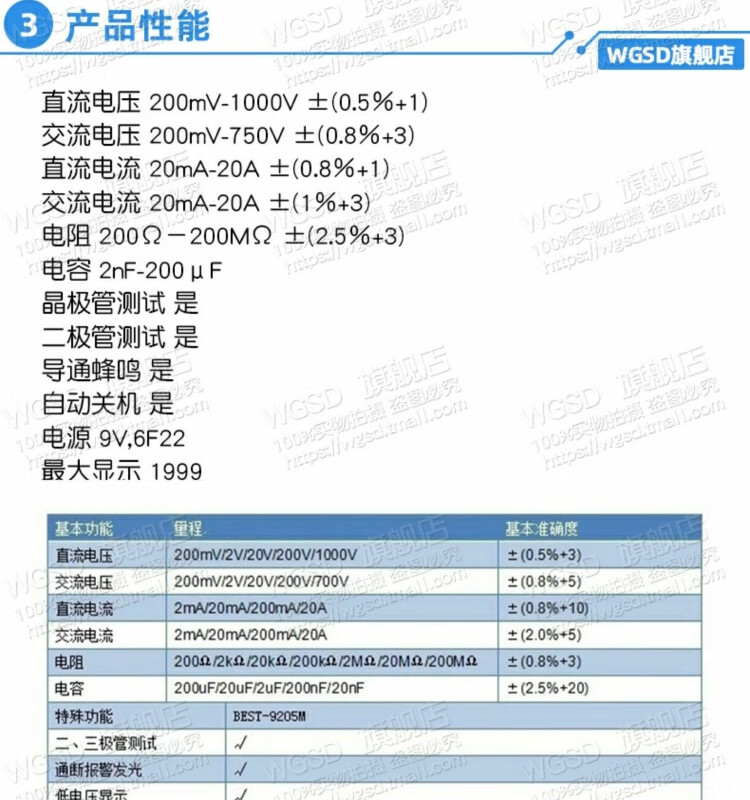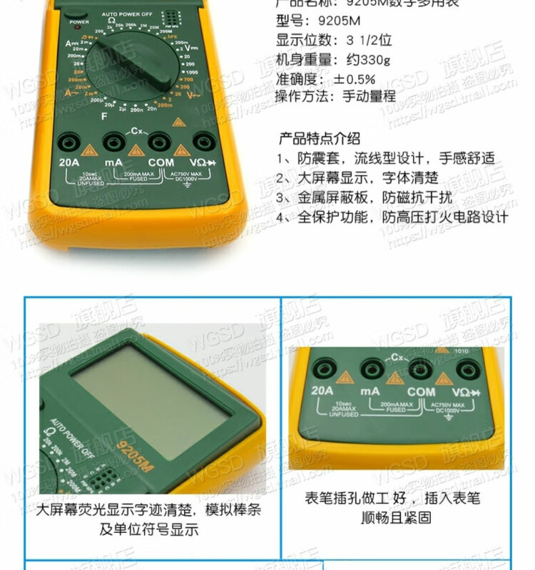 Dafuri DT9205A smart multimeter digital high-precision maintenance multimeter small mini electrician automatic portable DT9205A multimeter standard + three-piece kit