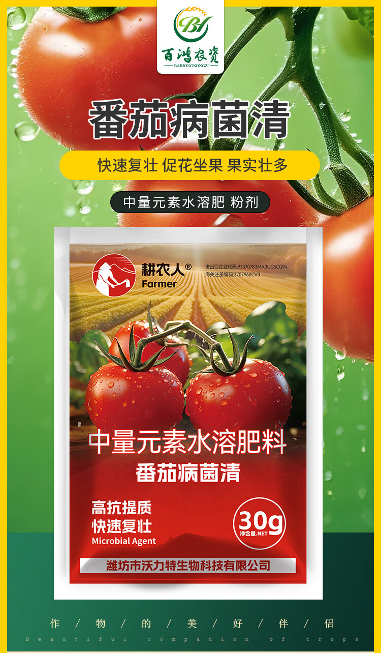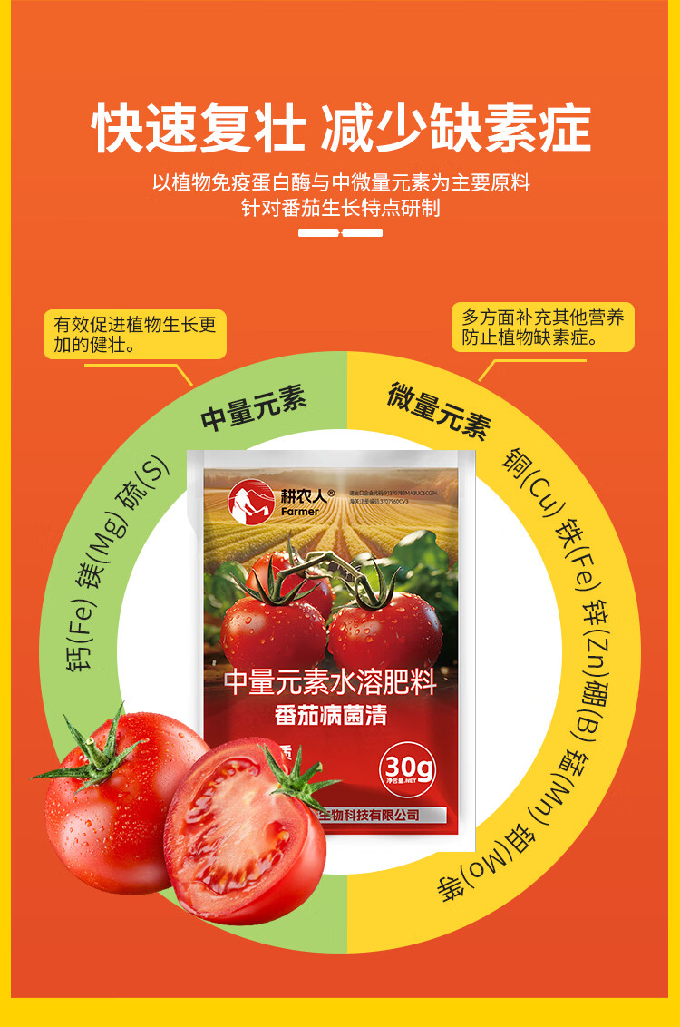 Farmer's Tomato Bacteria Clearing Complex Medium Element Tomato, Pepper, Cucumber and Vegetable Special Foliar Fertilizer Kevohua Agricultural Materials 30g 3 Bags Tomato Bacteria Clearing