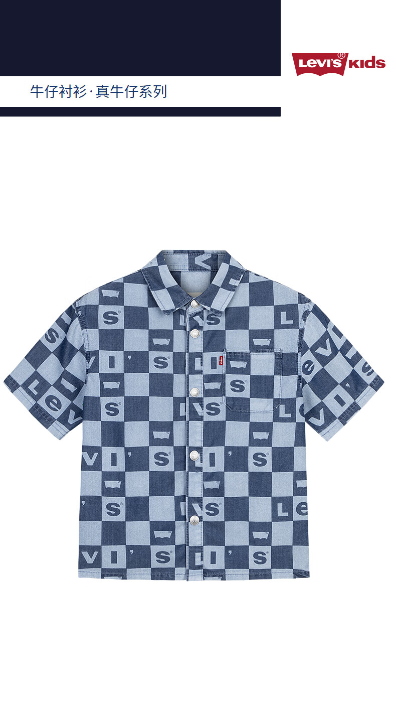 Levi s store same style Levi's children's shirt new full print short-sleeved stand collar jacket Milestone Blue 110/52 Recommended height 98-104cm