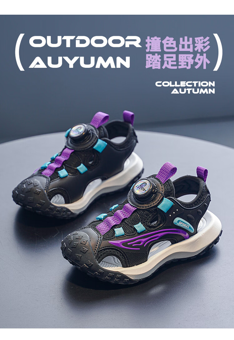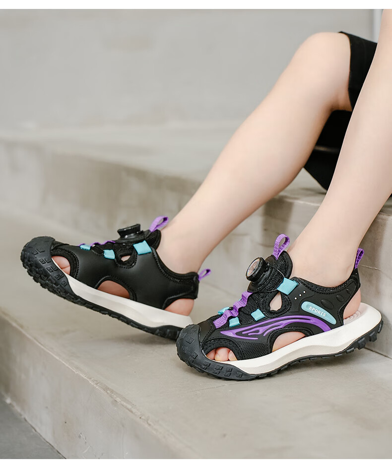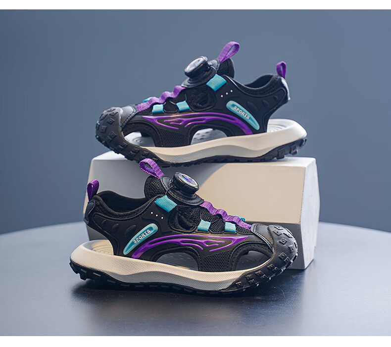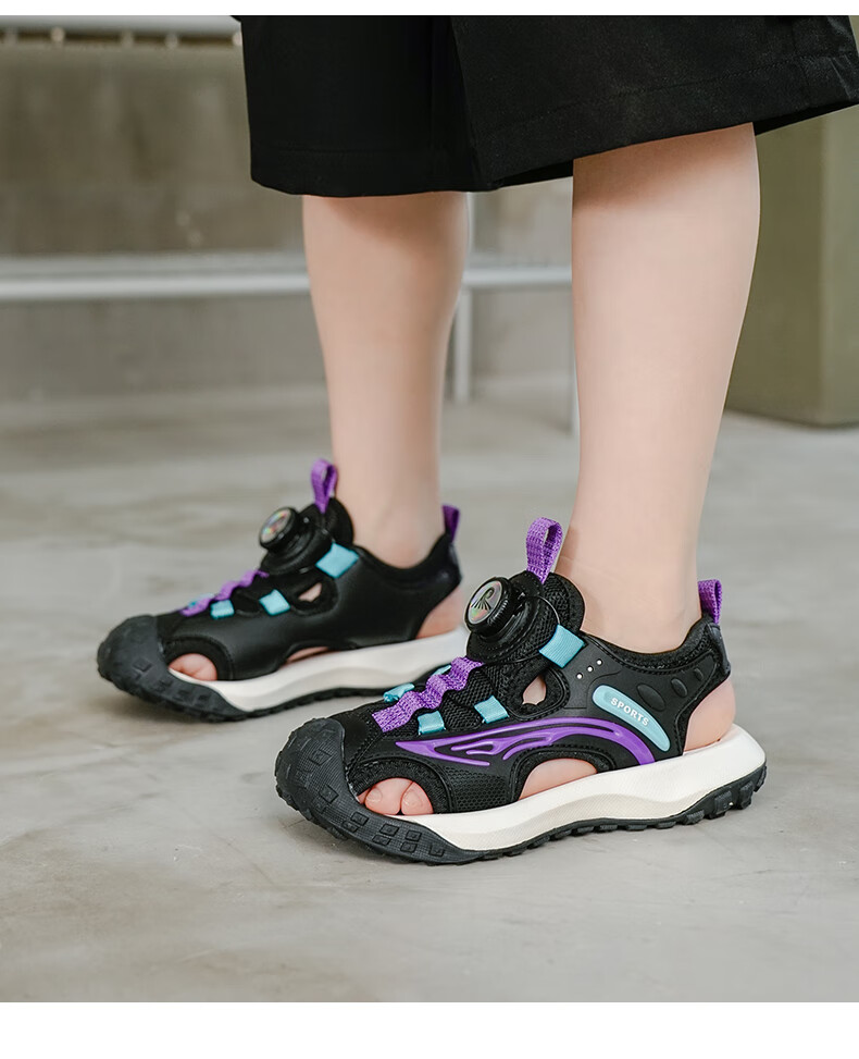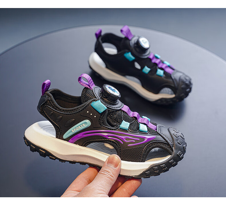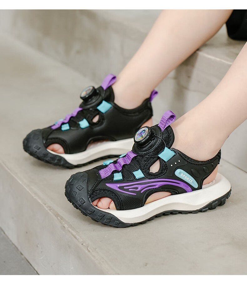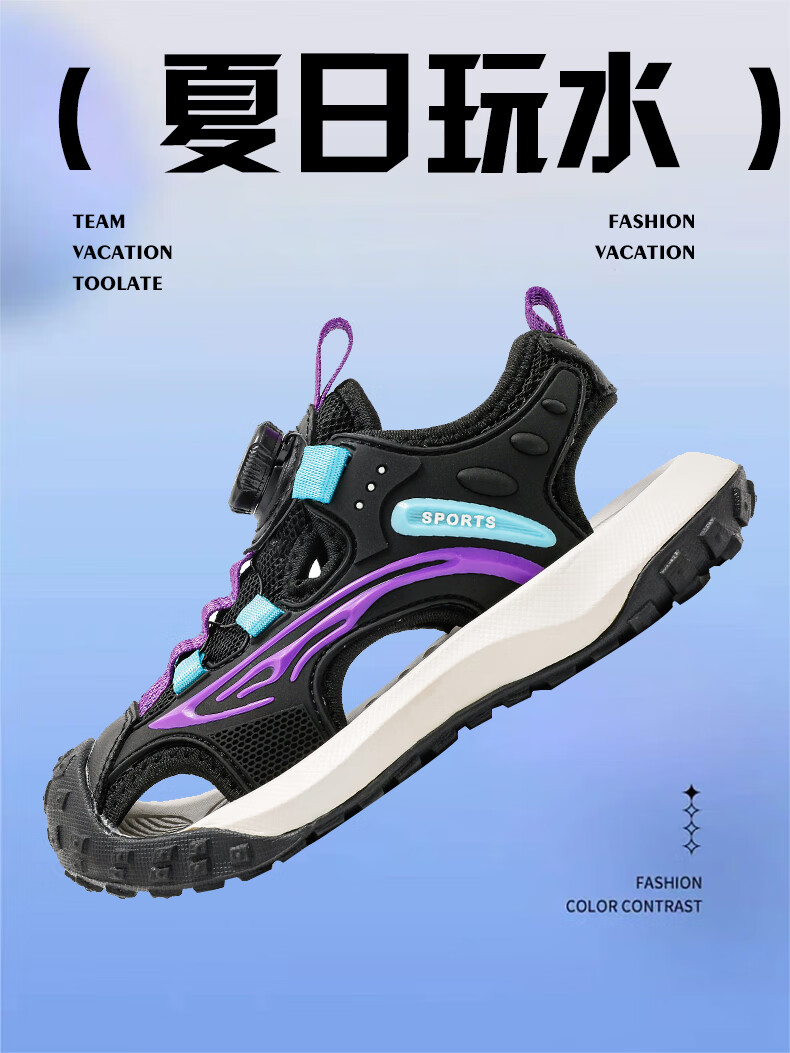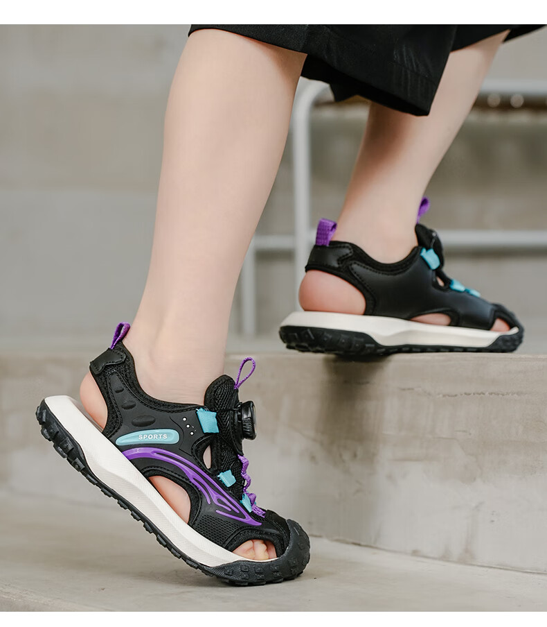 Boys' Baotou Sandals 2025 Summer New Soft Sole Anti-Slip Children's Beach Shoes Versatile and Handsome Student Sandals 633/Black Purple Size 32 Standard Size