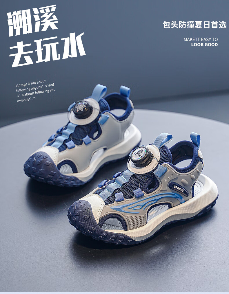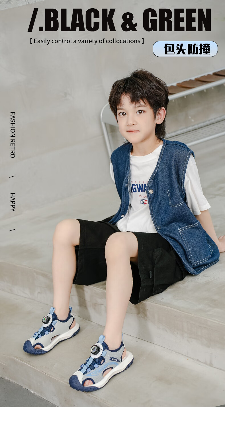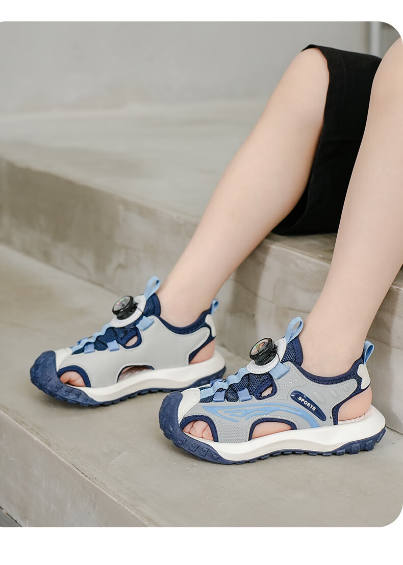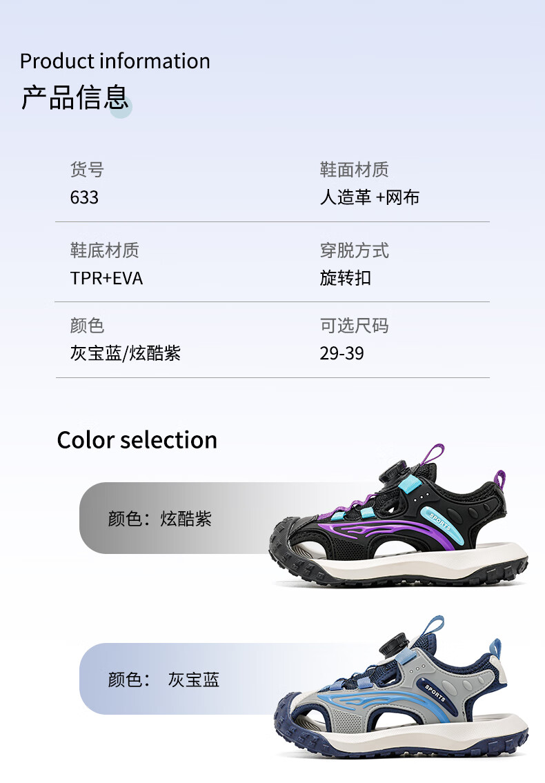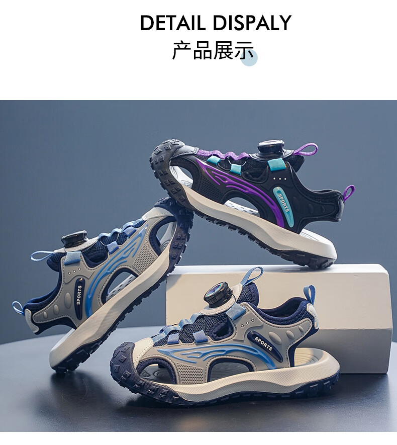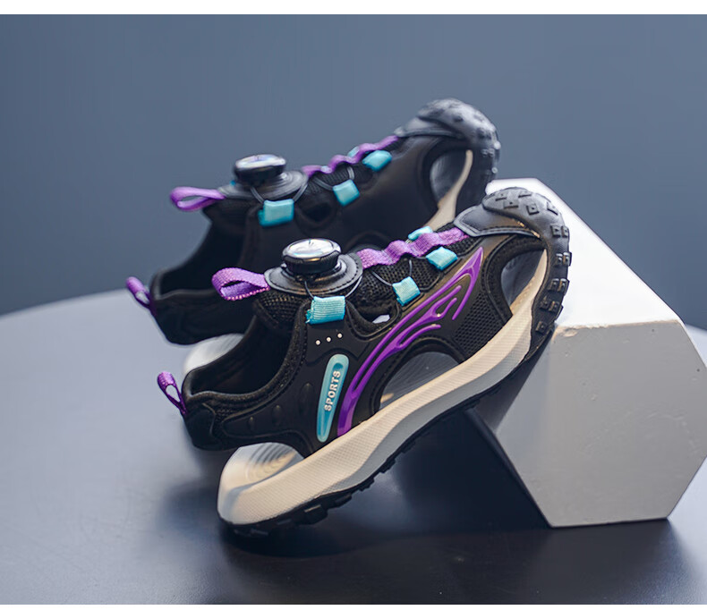 Boys' Baotou Sandals 2025 Summer New Soft Sole Anti-Slip Children's Beach Shoes Versatile and Handsome Student Sandals 633/Black Purple Size 32 Standard Size