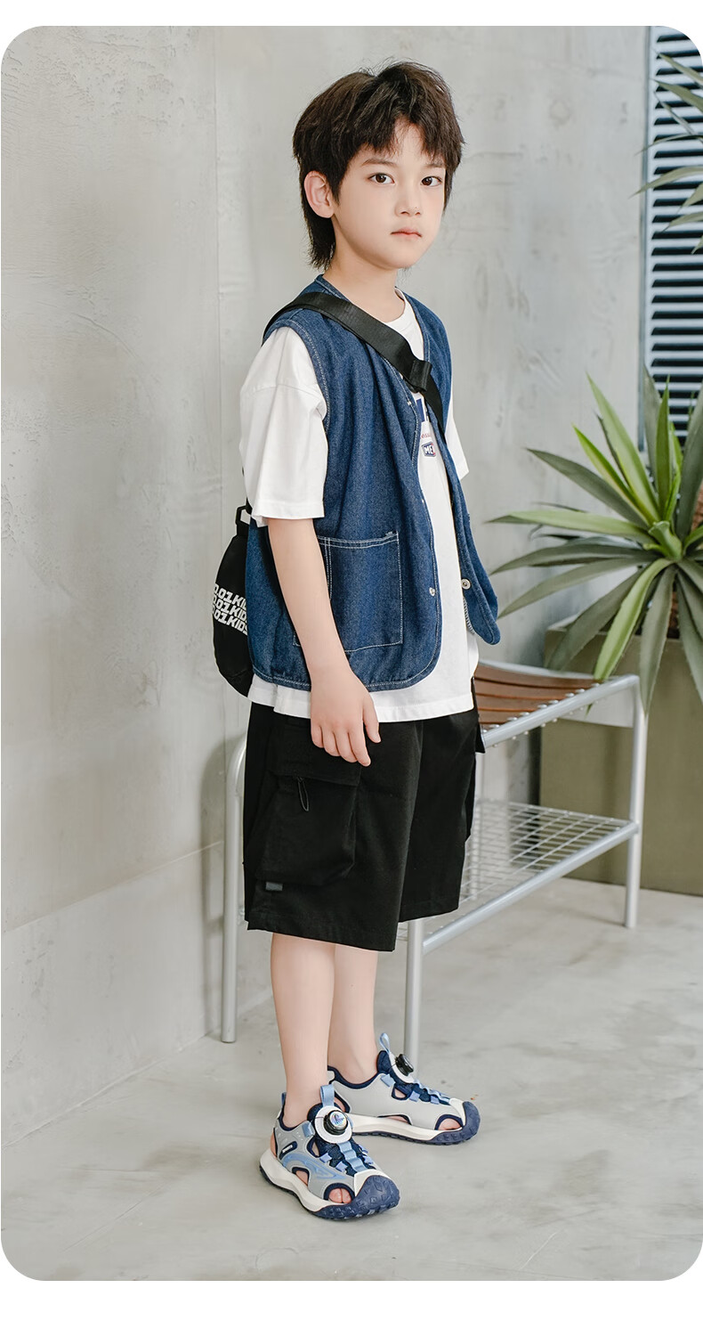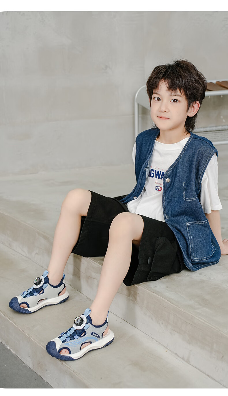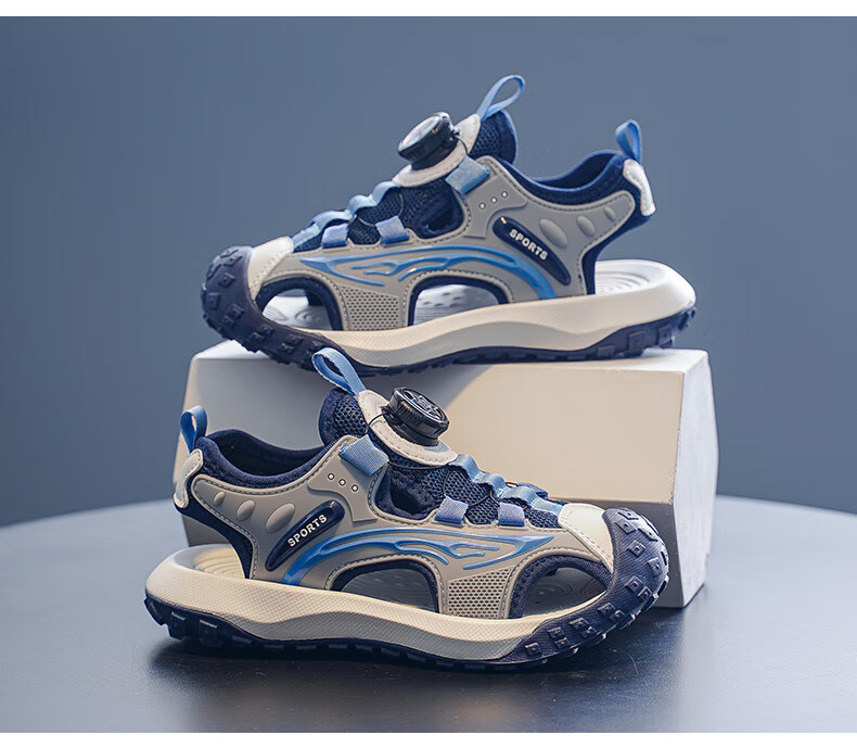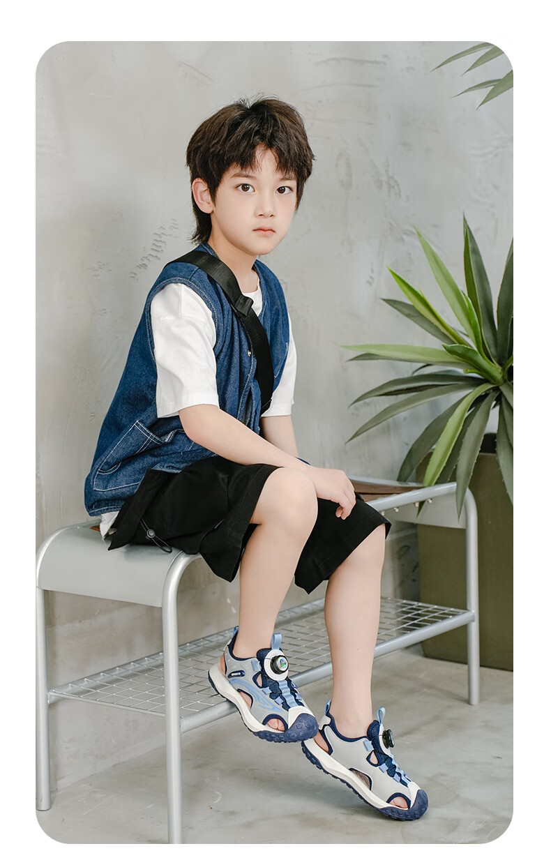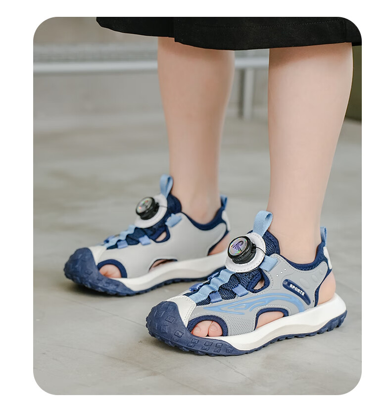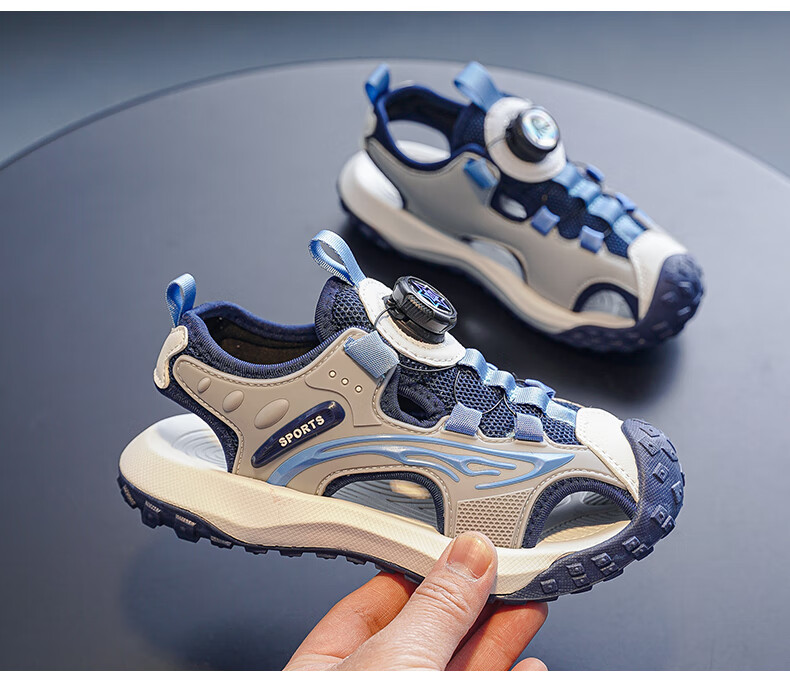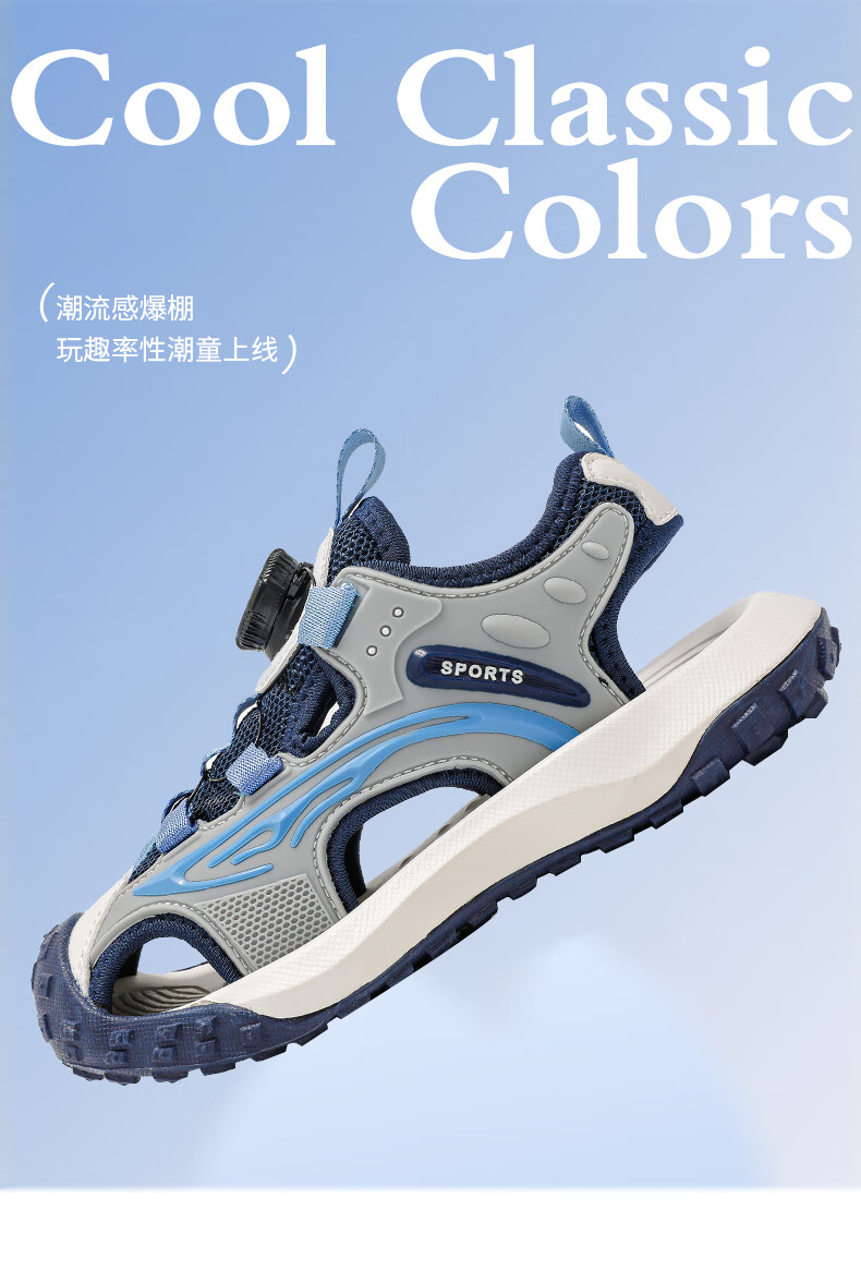 Boys' Baotou Sandals 2025 Summer New Soft Sole Anti-Slip Children's Beach Shoes Versatile and Handsome Student Sandals 633/Black Purple Size 32 Standard Size