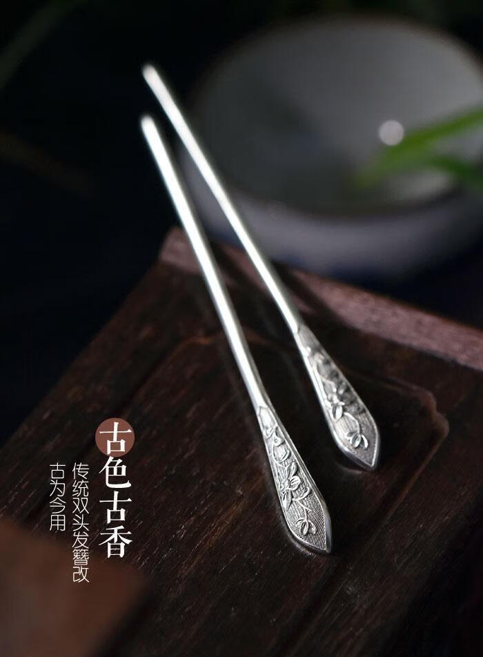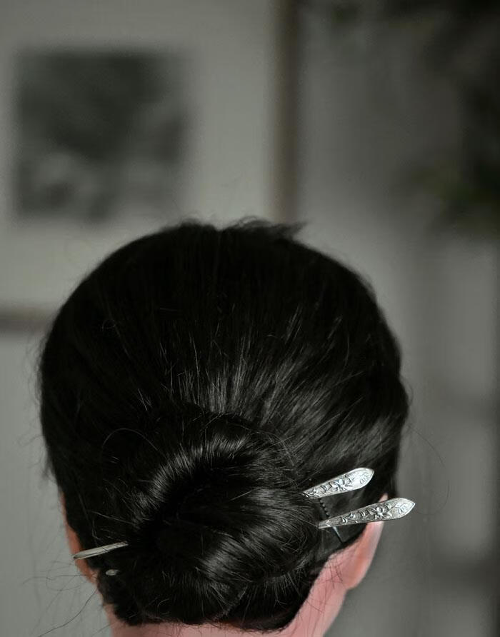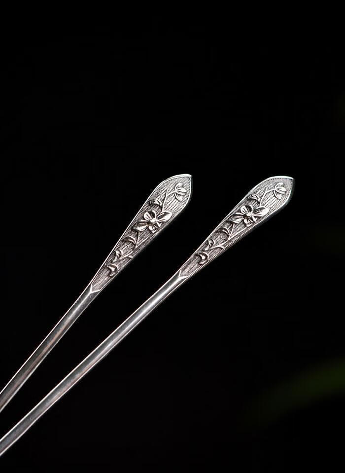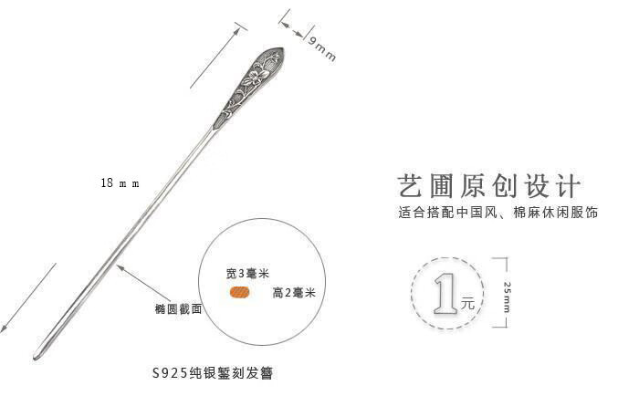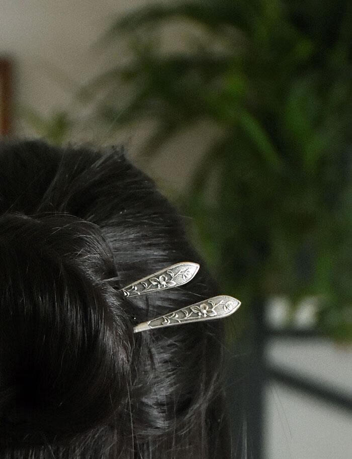 S925 silver hairpin simple embossed peony Chinese style ancient style hairpin new Chinese style republic of China rich and powerful - single