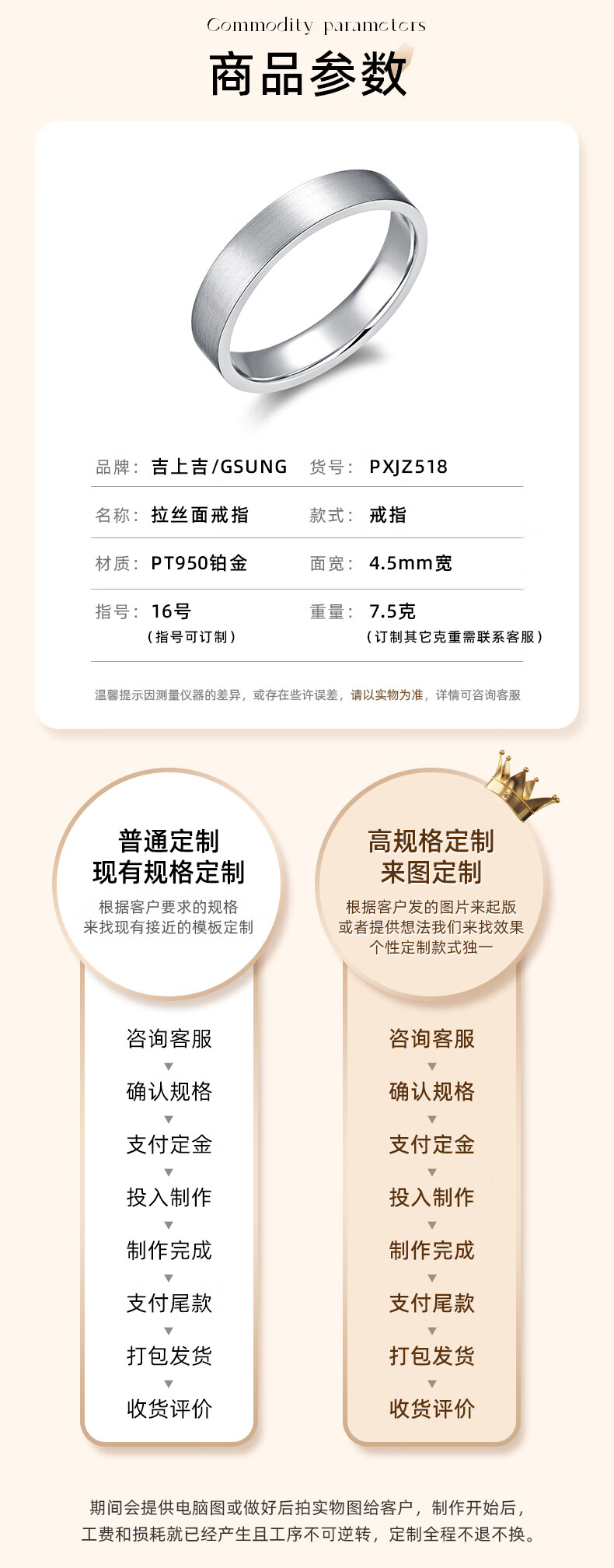 GsunG platinum PT950 ring men's pure platinum brushed surface ring ring women's closed plain ring couple ring ring calculated based on the gold price in the store on the day