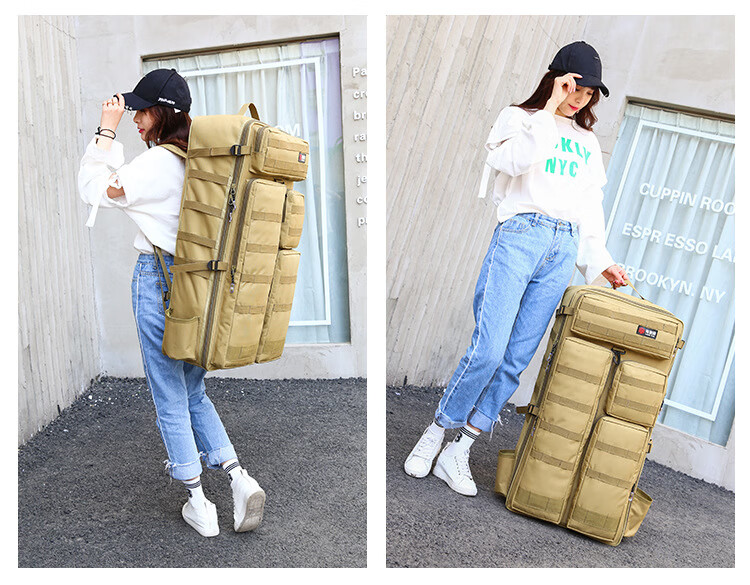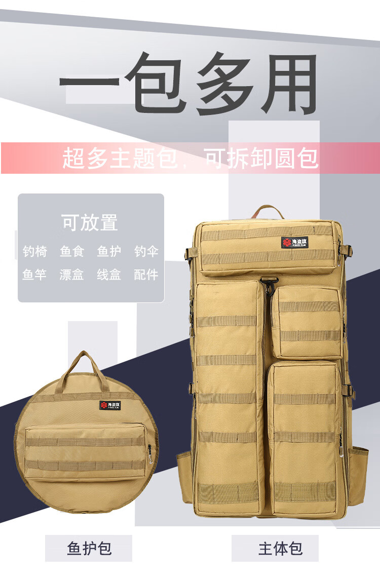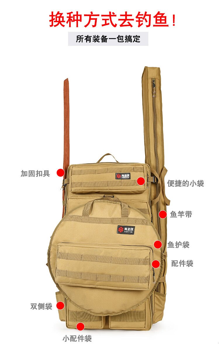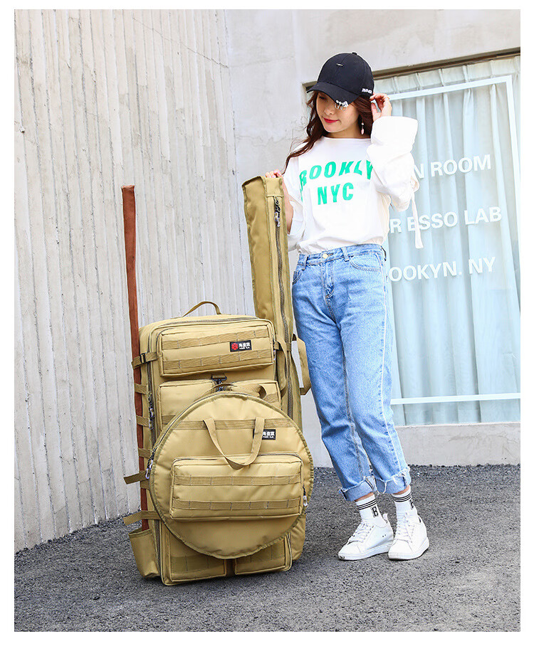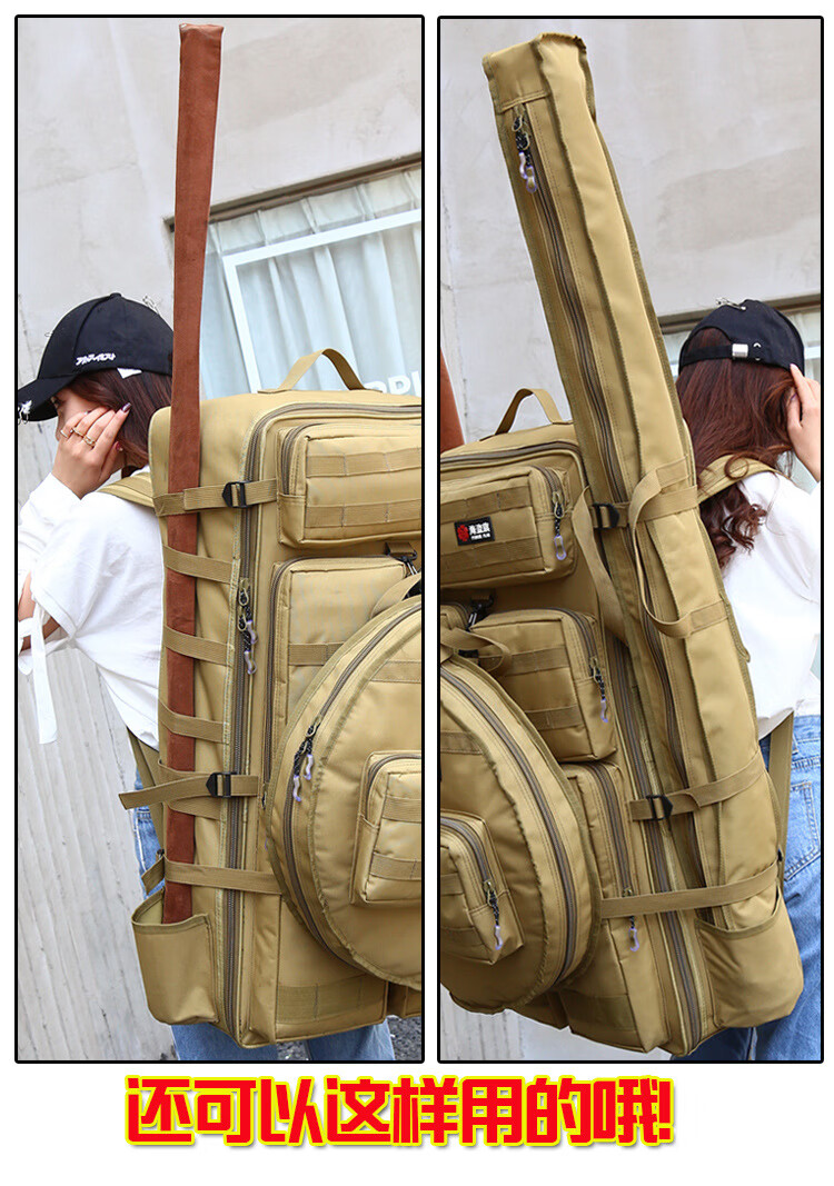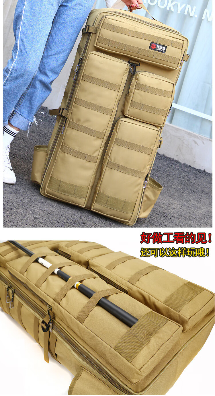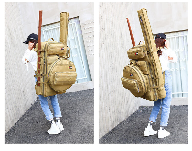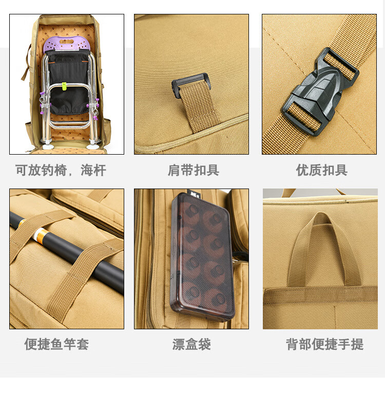 Shantou Lincun Fishing Chair Bag Backpack Multifunctional Fishing Gear Bag Large Backpack Outdoor Fish Bag Fishing Rod Bag Fishing Bag Waterproof Fish Protection Bag Khaki 82*42*18