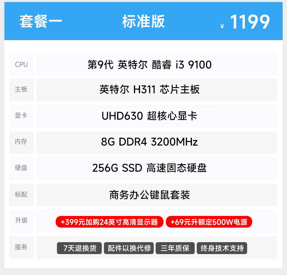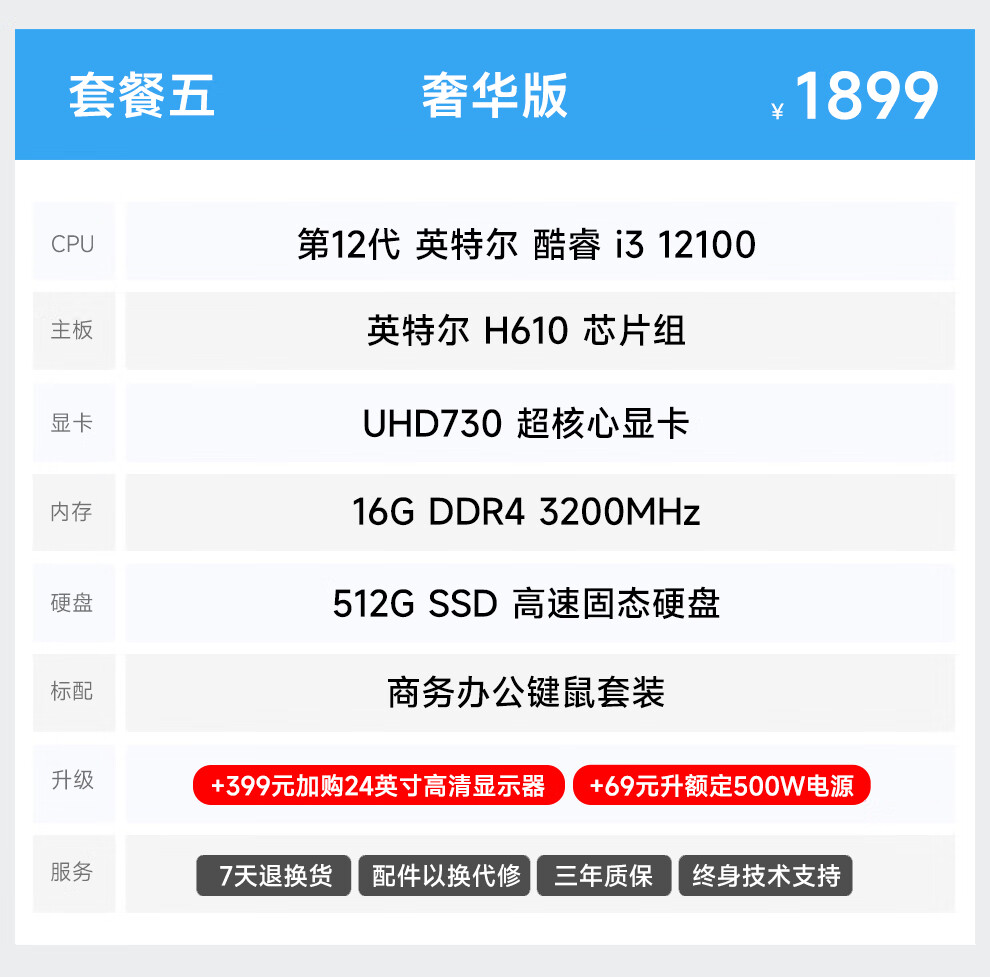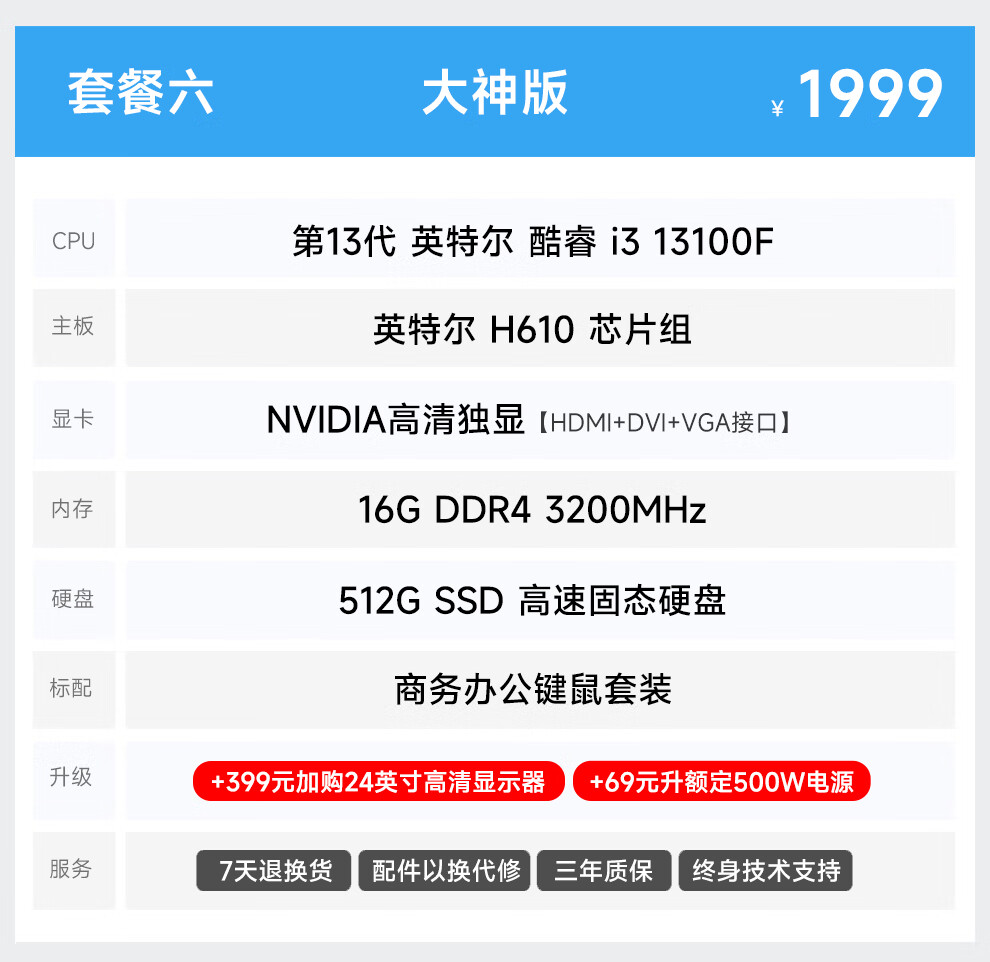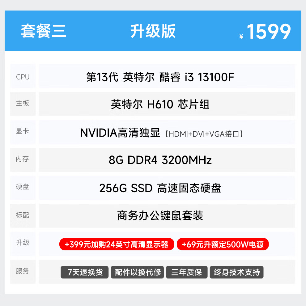 Navigator/Acer i3 13100/16G/512G Enterprise procurement office customer service business multi-screen large-capacity game desktop computer host DIY assembly machine complete set of three i3 13100F丨8G DDR4丨256G