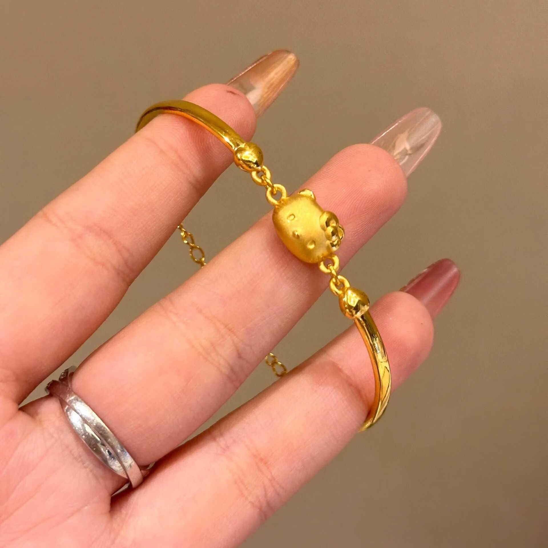 Pupan Old Phoenix Gold Store Gold Kitty Cat Bracelet Sweet Princess Style 18k Gold Bracelet Female Internet Celebrity Y Cat Bracelet Chain