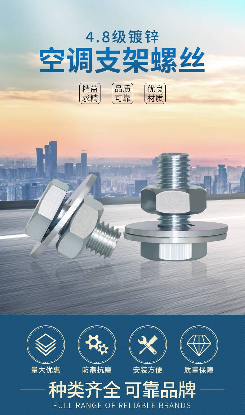 Ni Zhier customized galvanized air conditioner outdoor unit base mounting screw set air conditioner bracket screw fixed foot machine foot bolt M8*20 one bolt, one female and one flat pad_200 sets