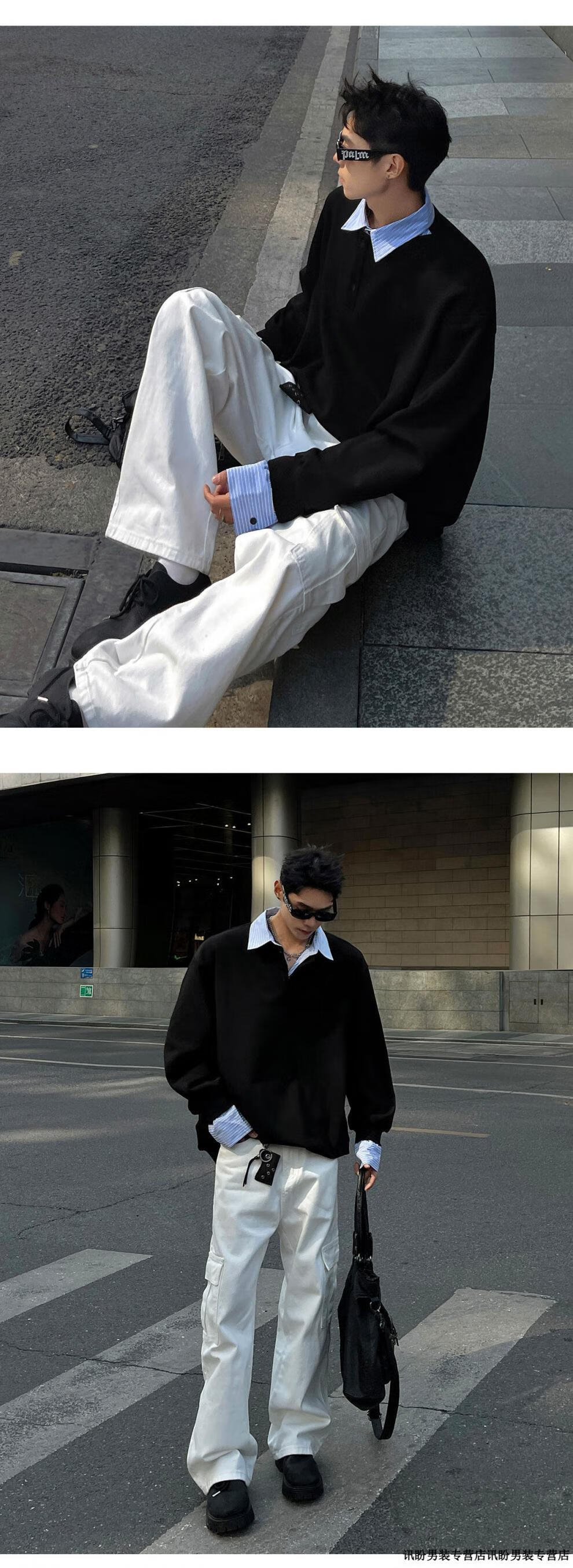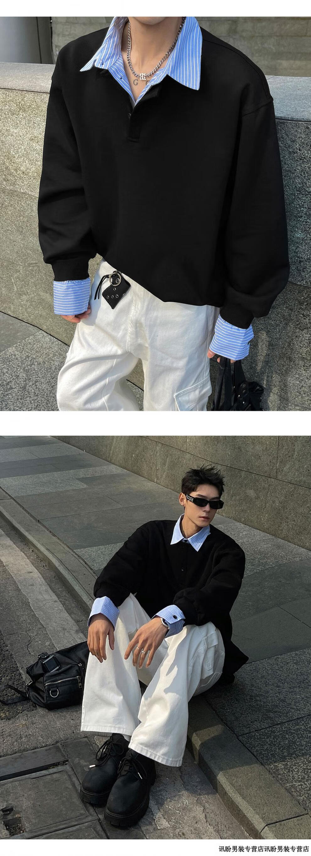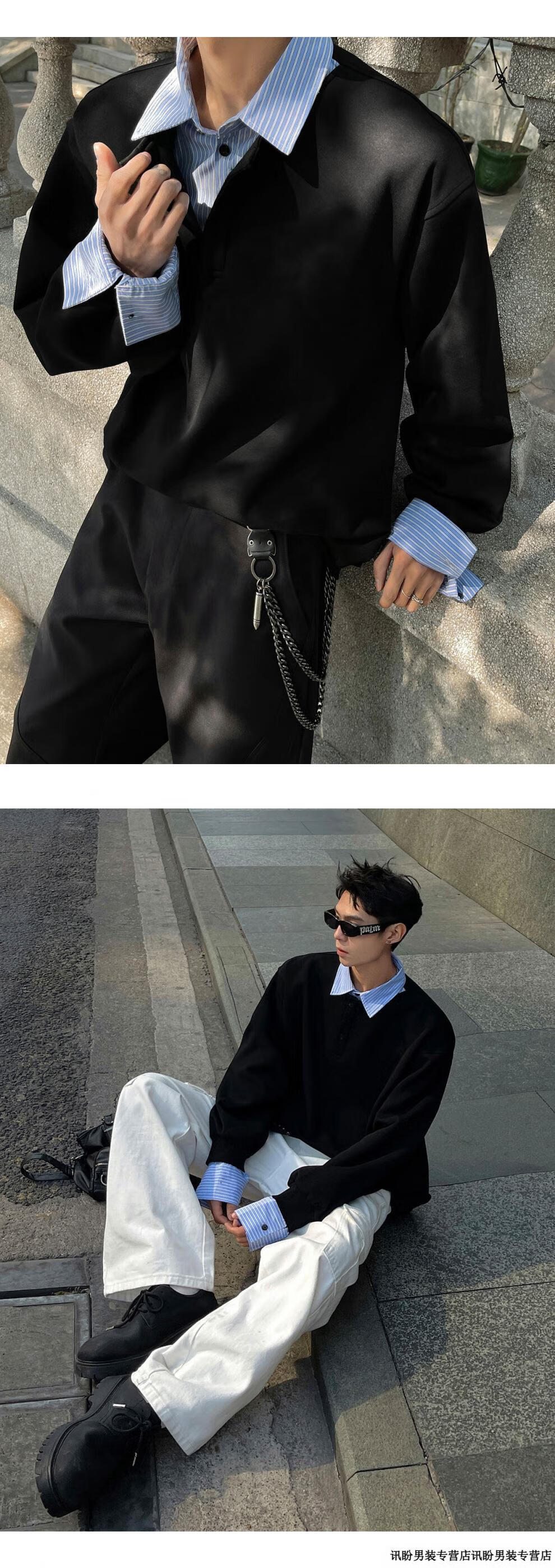 GTYUWVG fake two-piece shirt men's spring 2025 new inner layering long-sleeved lapel Henry bottoming shirt shirt jacket light gray L