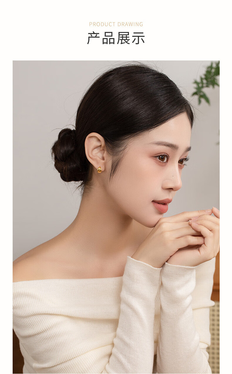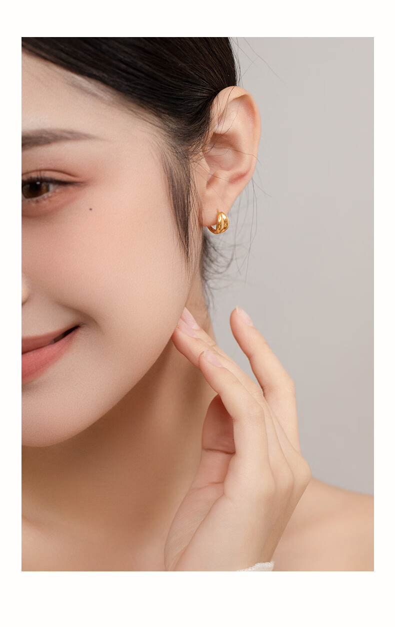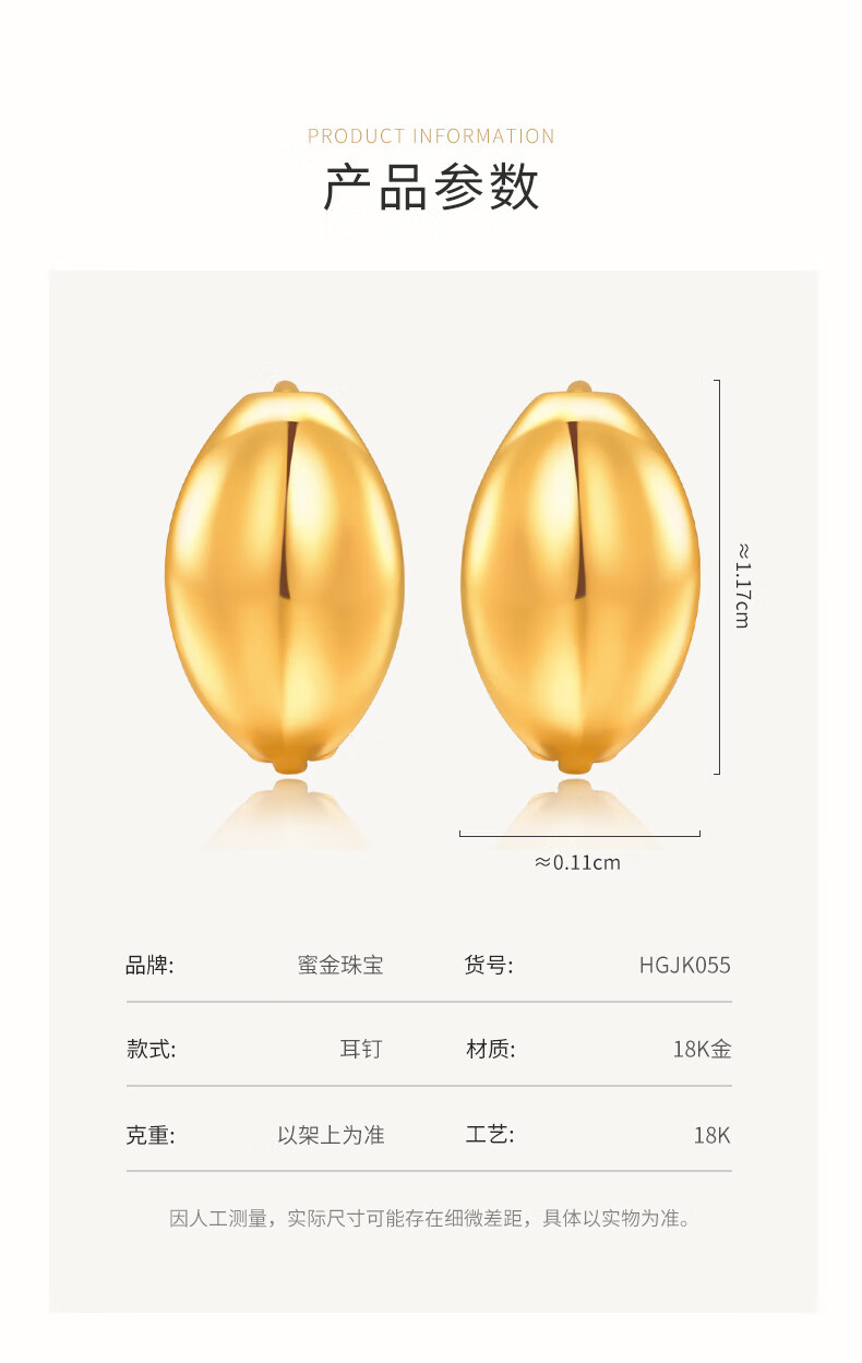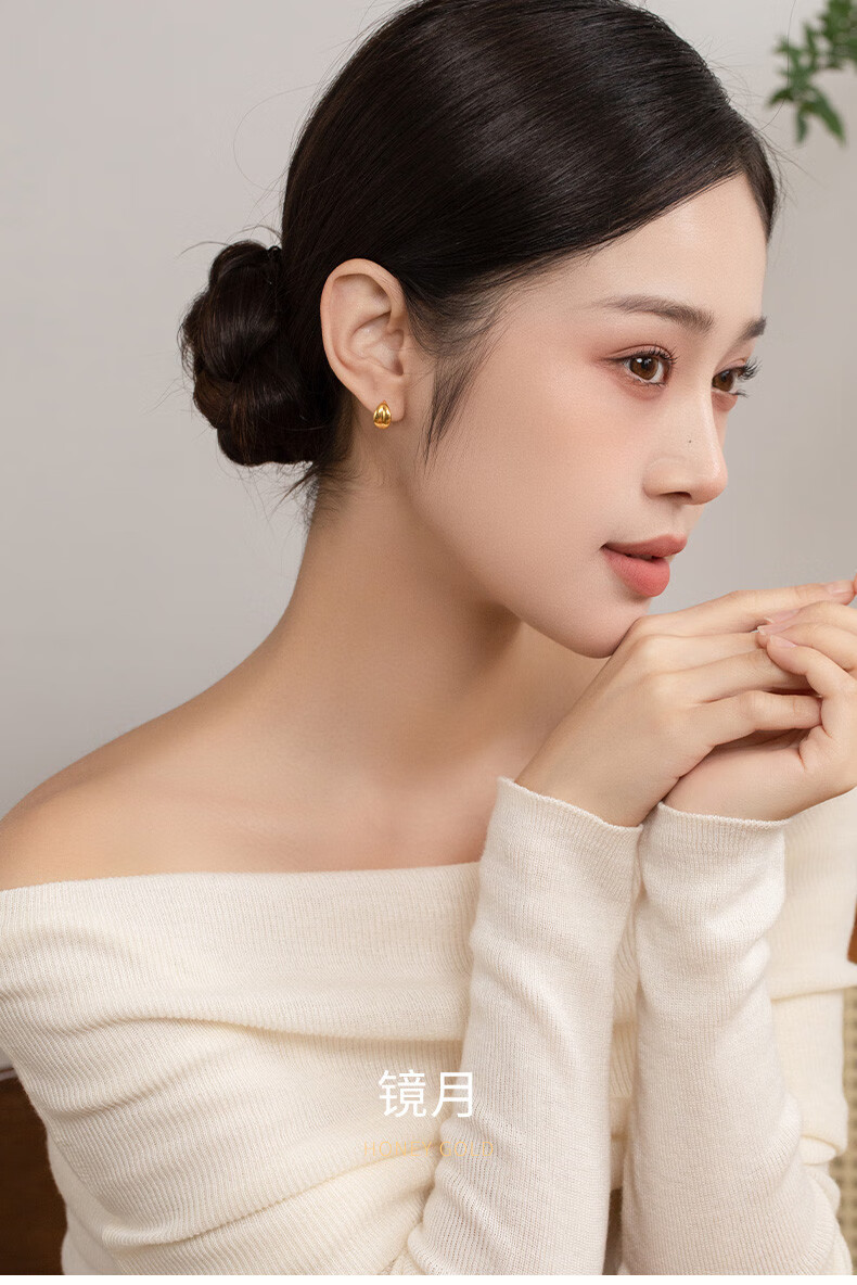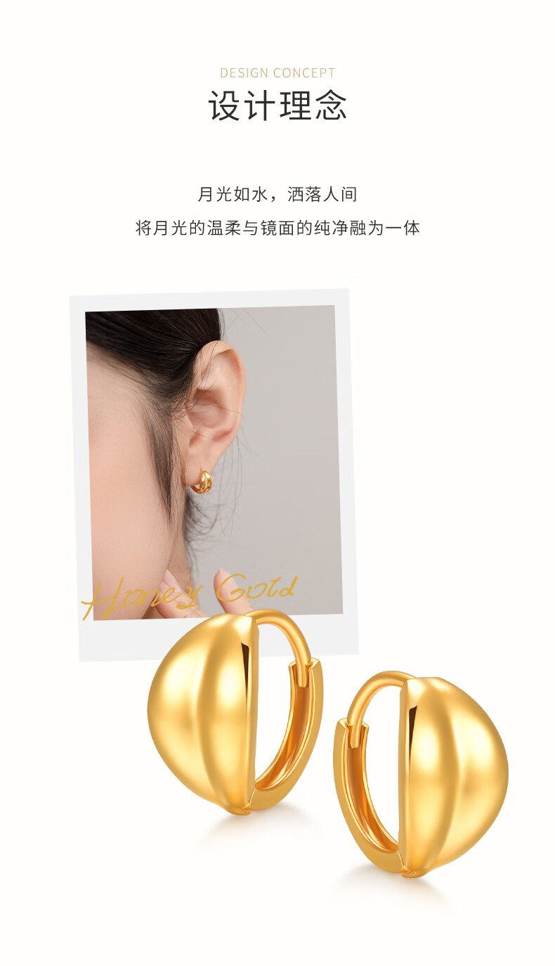 HoneyGold jewelry 18k gold earrings, simple and fashionable mirror moon earrings HGJK055 piece count, about 2.30-2.49g