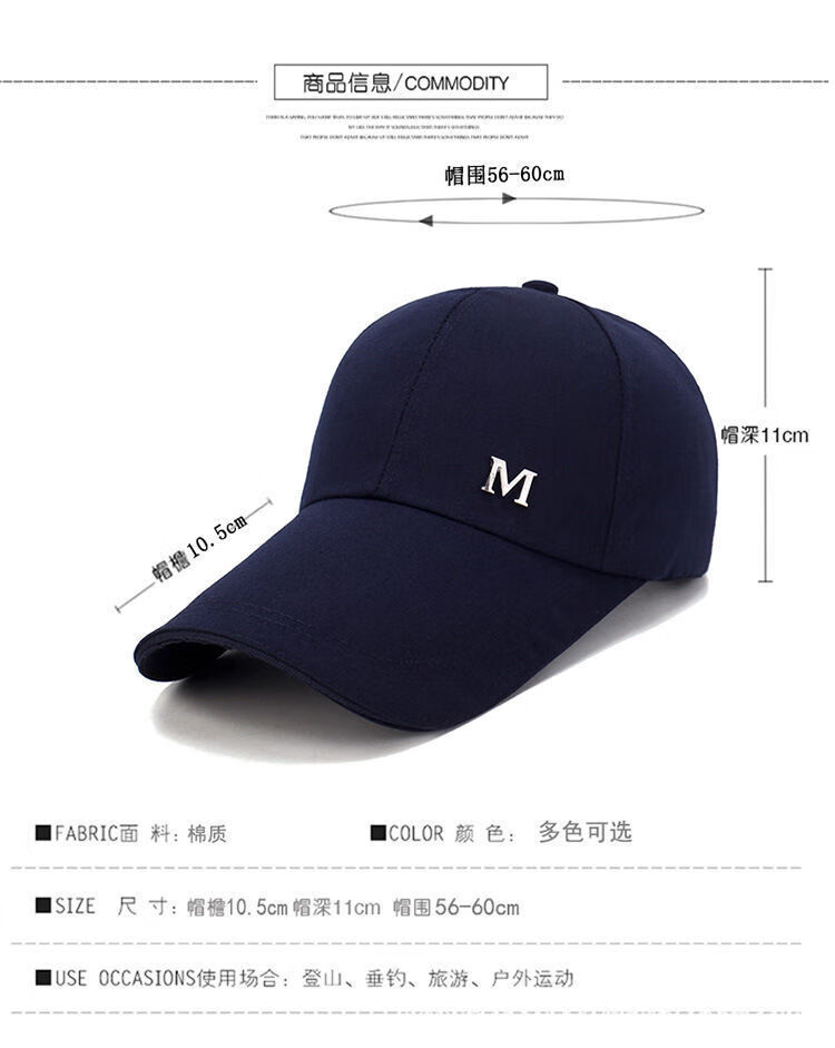 Hat Men's Spring and Autumn Extended Brim Sun Protection Sun Hat Outdoor Leisure Peaked Cap Fashion Versatile Baseball Cap Black M Label One Size Adjustable