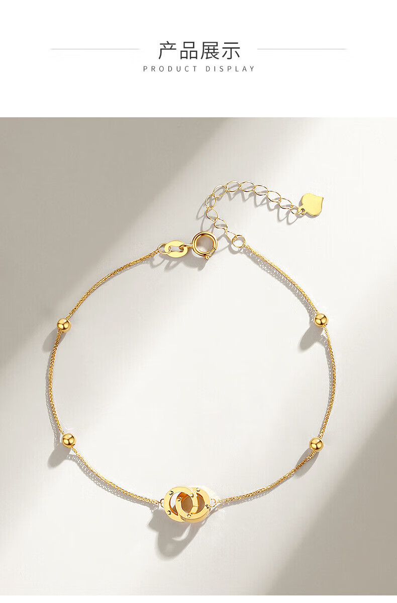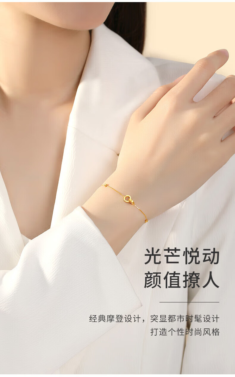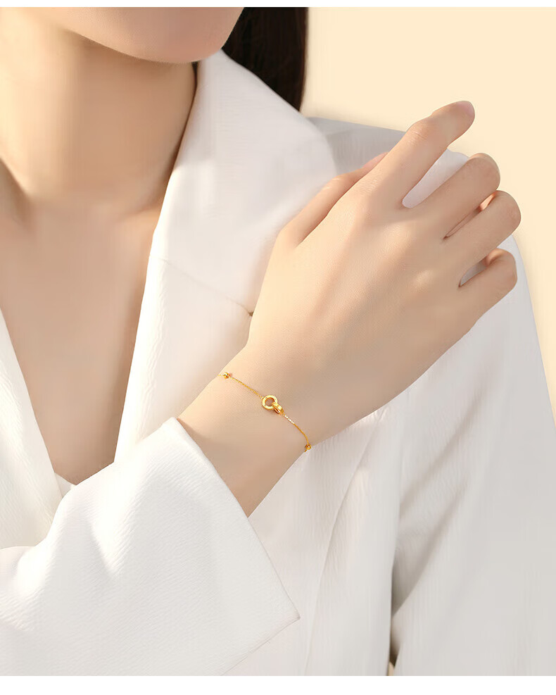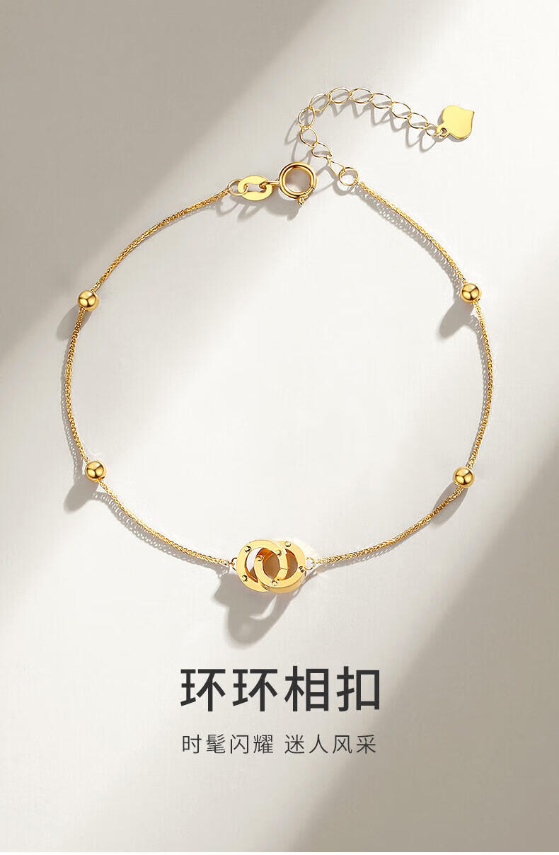 Lao Fengxiang 18K gold interlocking bracelet for women, double-ring transfer beads, National Day and Mid-Autumn Festival gift for girlfriend and wife, ghostwritten greeting card * 18K gold/interlocking bracelet, about 0.75g