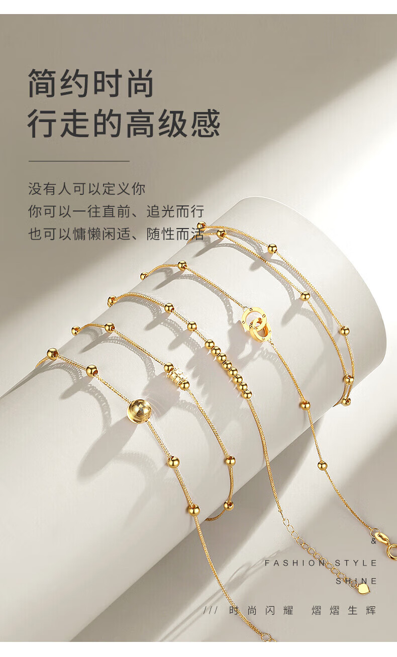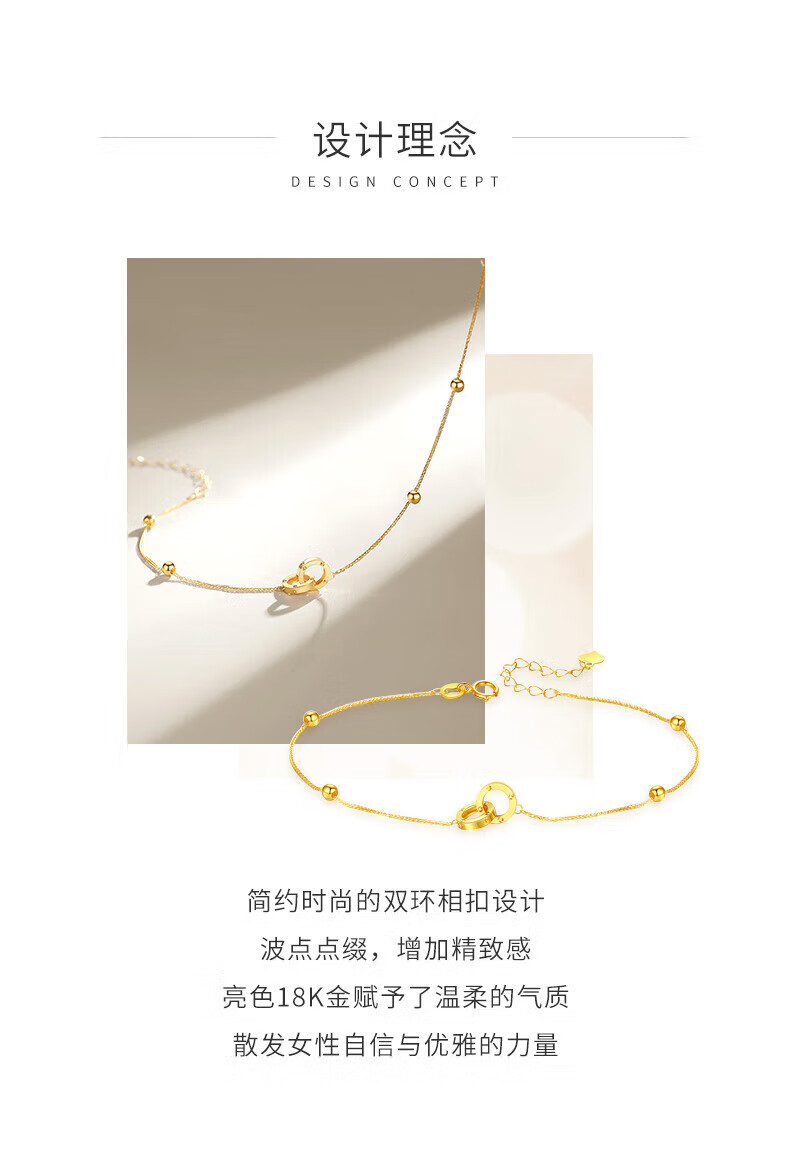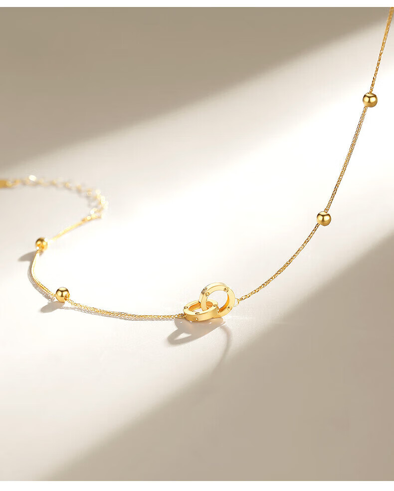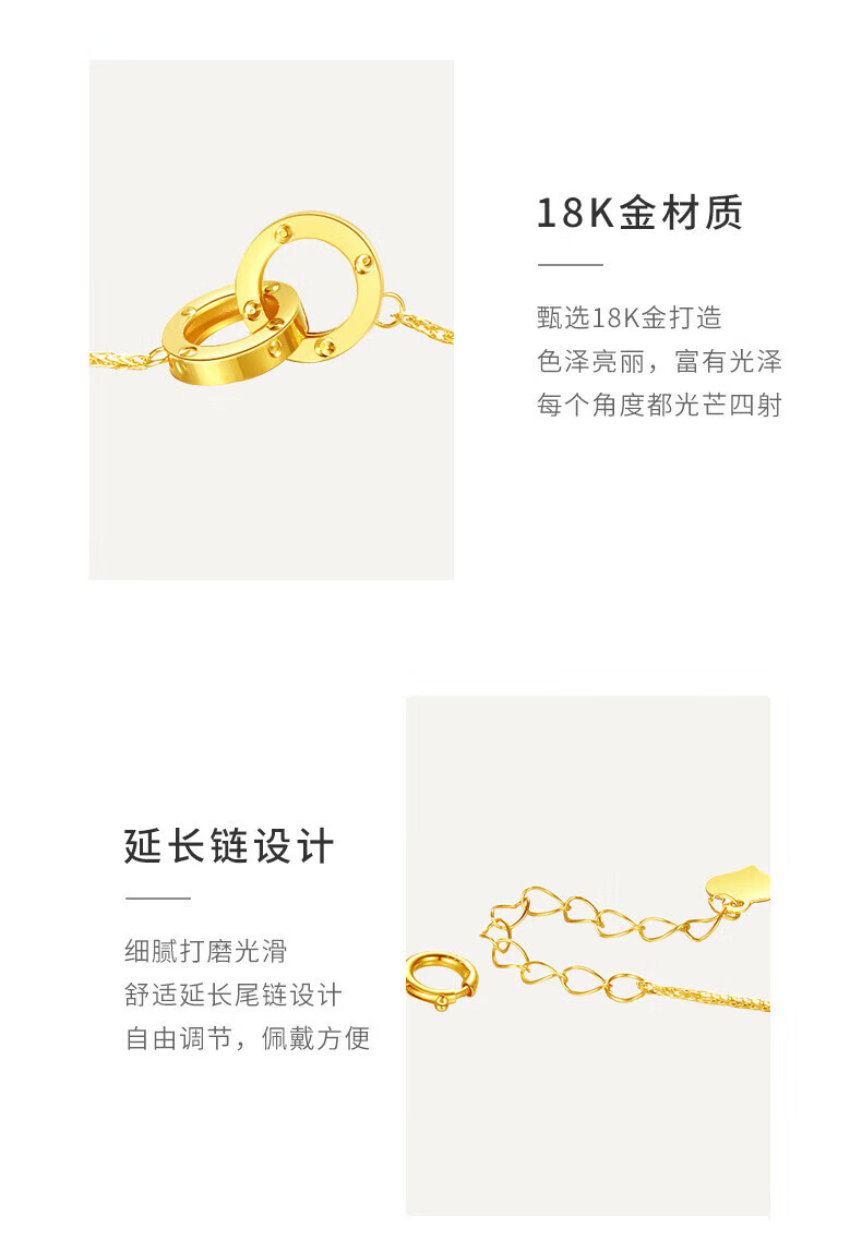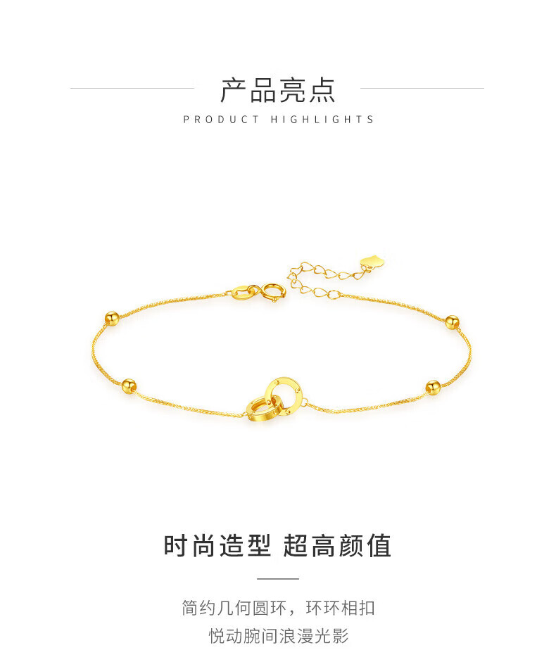 Lao Fengxiang 18K gold interlocking bracelet for women, double-ring transfer beads, National Day and Mid-Autumn Festival gift for girlfriend and wife, ghostwritten greeting card * 18K gold/interlocking bracelet, about 0.75g