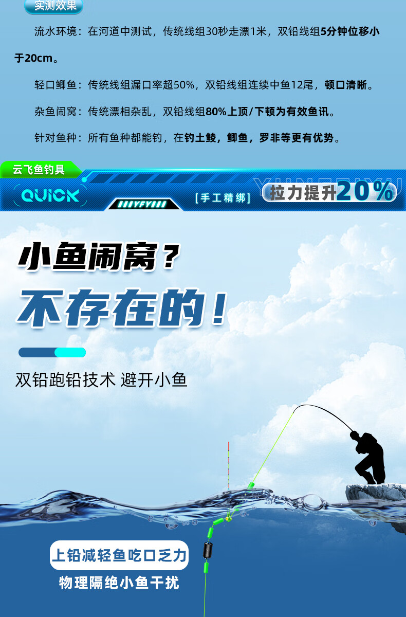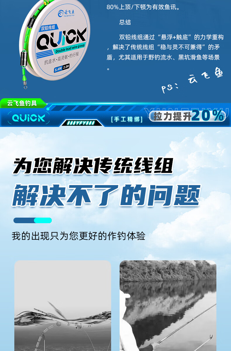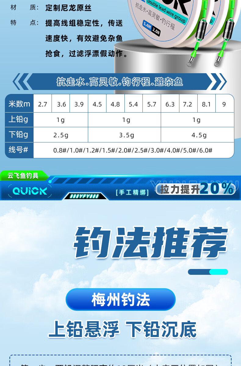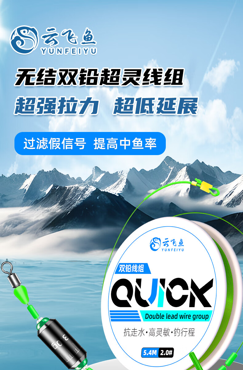 Yunfeiyu Double Lead Knotless Line Set Fishing Line Main Line Finished Product Resistant to Water Leakage Highly Sensitive Black Pit Big Thing Fishing Line Set Fishing Gear 5.4 Meters Knotless Double Lead Style 4 Rolls Easier to Hit Fish No. 0.8