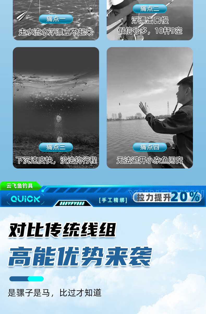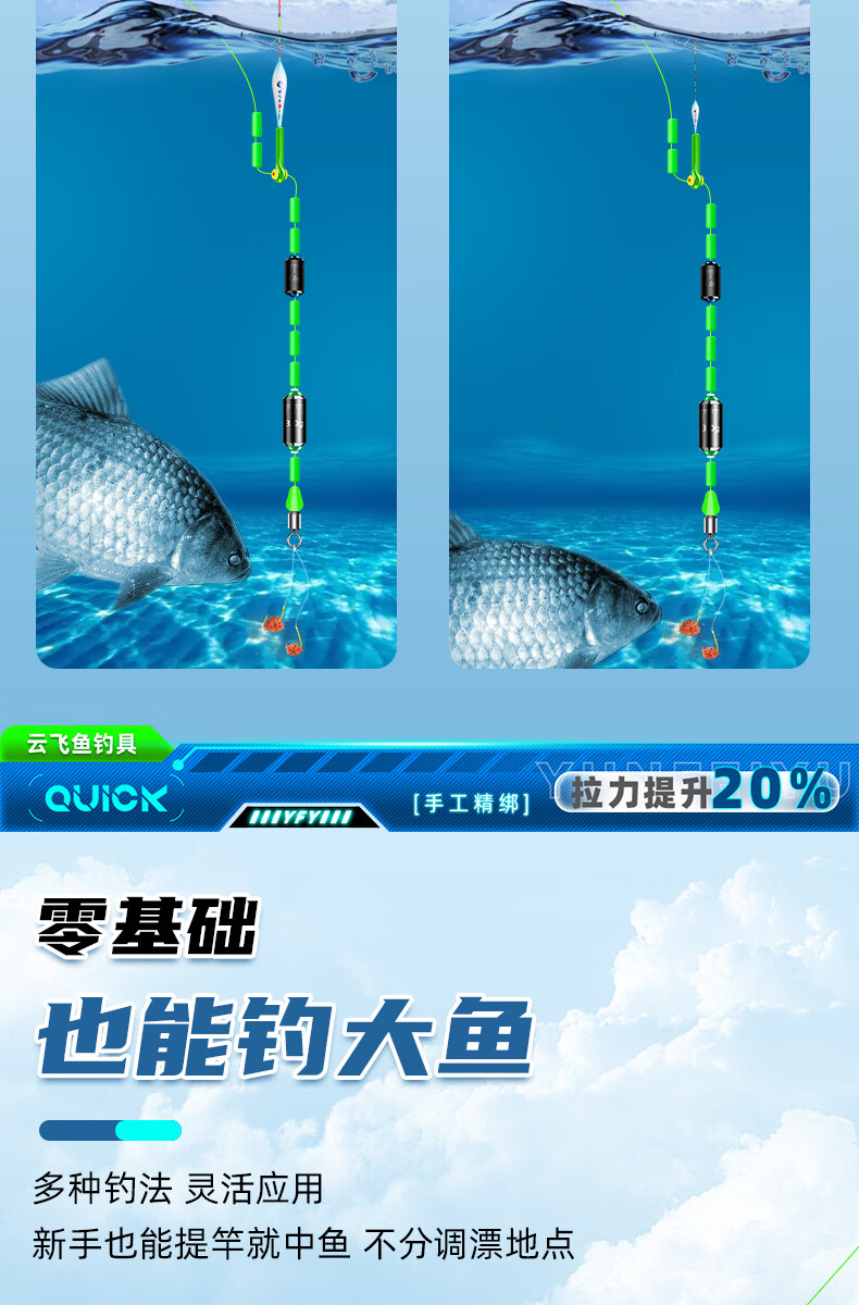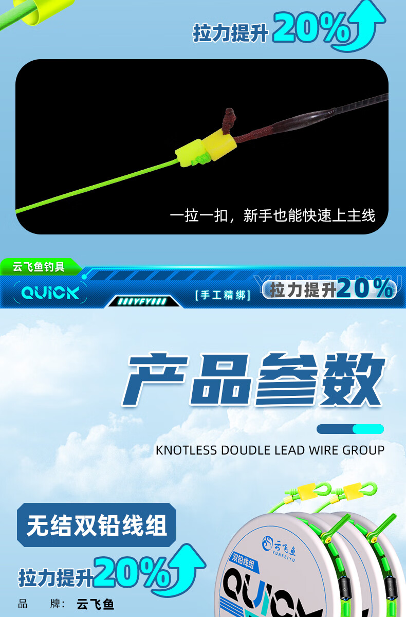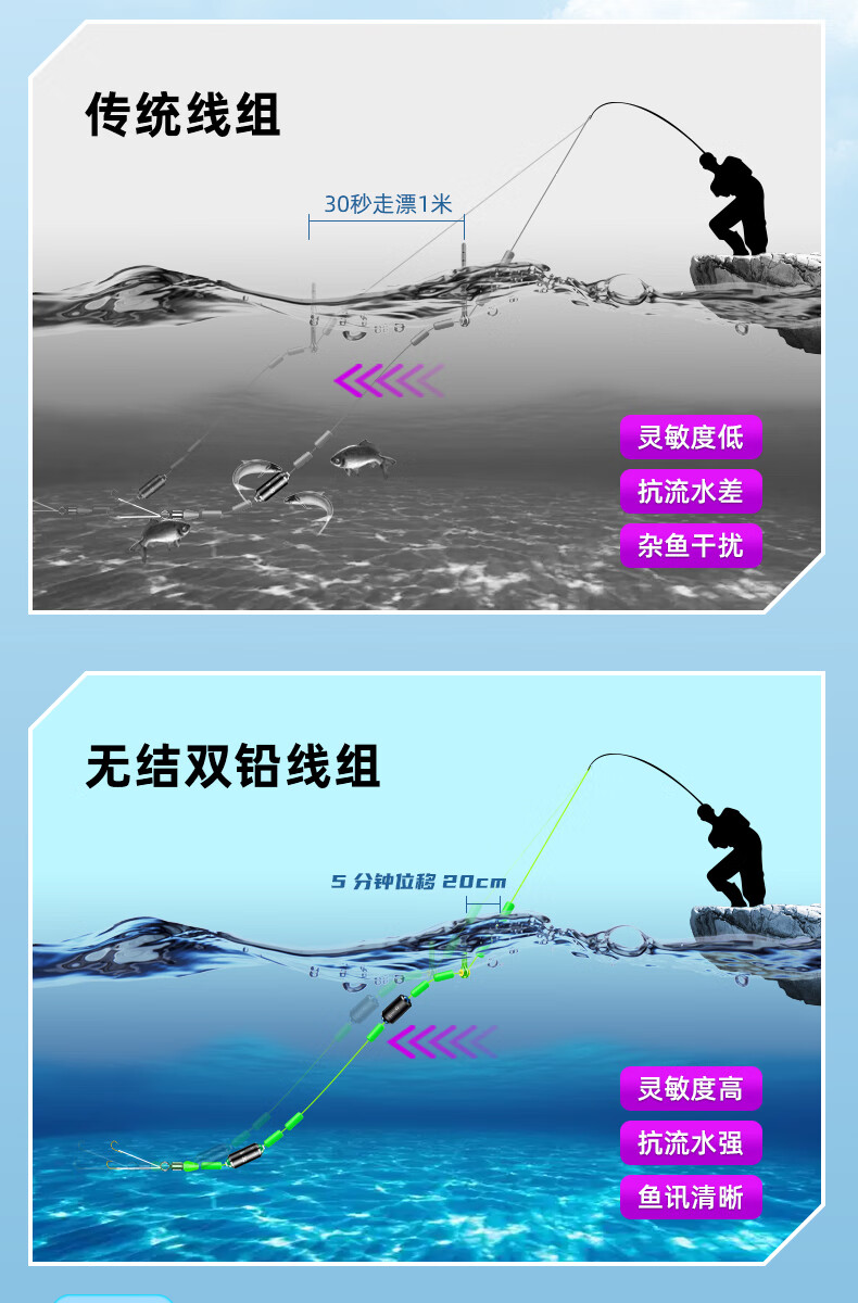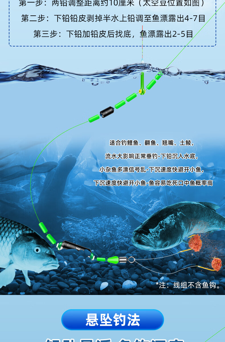 Yunfeiyu Double Lead Knotless Line Set Fishing Line Main Line Finished Product Resistant to Water Leakage Highly Sensitive Black Pit Big Thing Fishing Line Set Fishing Gear 5.4 Meters Knotless Double Lead Style 4 Rolls Easier to Hit Fish No. 0.8