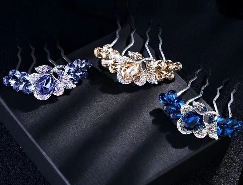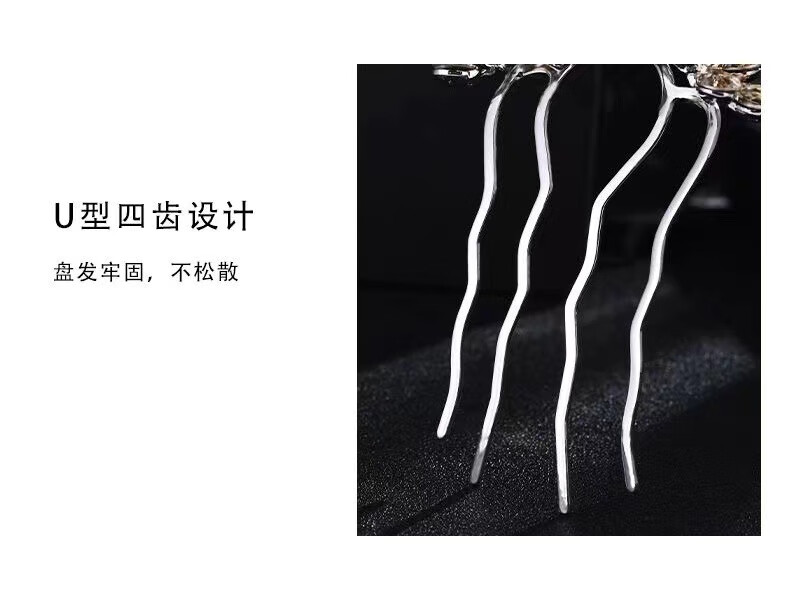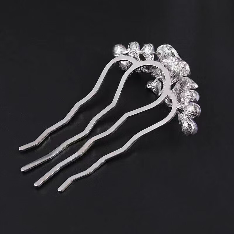 WEISHINI Korean style light luxury fashion tulip hair comb hairpin ball head non-slip rhinestone hair accessory four-tooth hair artifact tulip purple A23-205