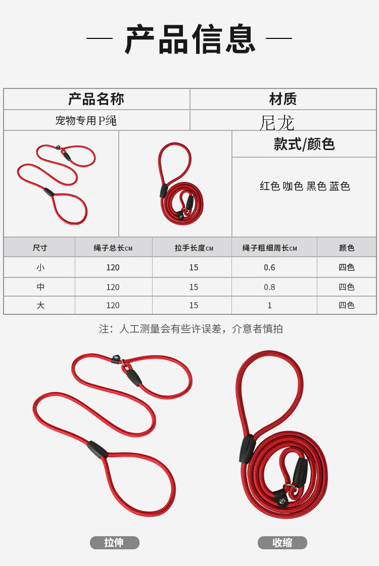Dog rope explosion-proof P chain dog walking leash anti-breakaway dog chain medium and large dog leash black 1.0*120cm