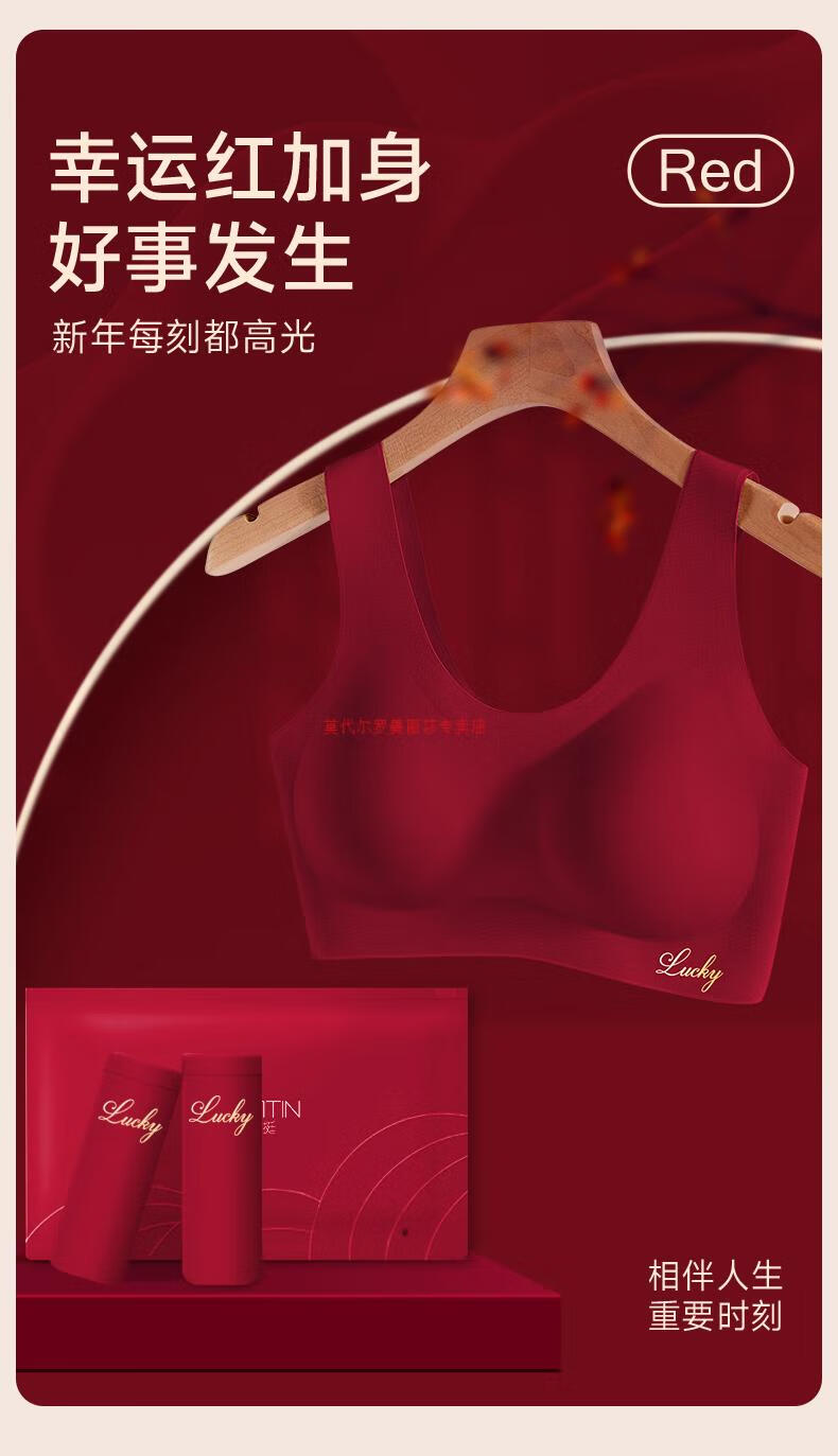 Modal Red Underwear Panty Set Women's Zodiac Year Small Breast Push Up Bra Vest Style Seamless Wedding 2025 Snake Worry-Free Set/Pack Underwear + Bra + Socks Machine Washable 2XL Recommended 130-145 Jin Jin equals 0.5 kg