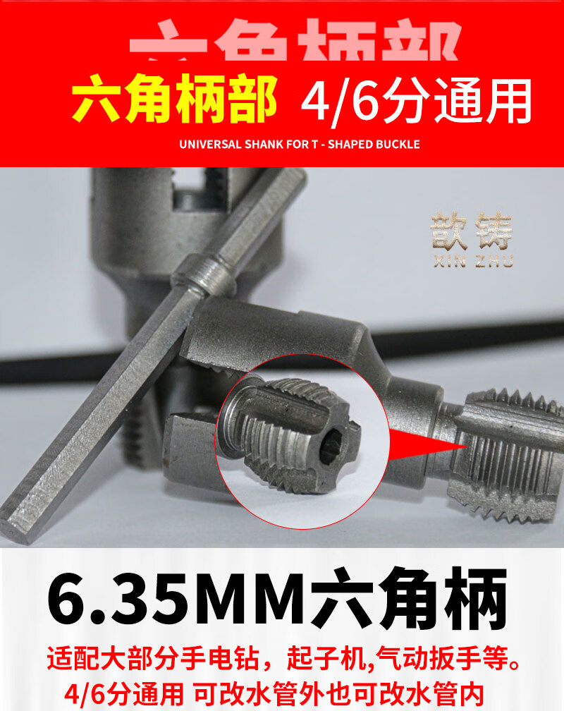 Xinzhu Xinzhu water pipe wire opener 4 6 points universal new electric drill tapping tool PPR PEPVC suitable for 4 points + 6 minutes + 1 inch wire opener