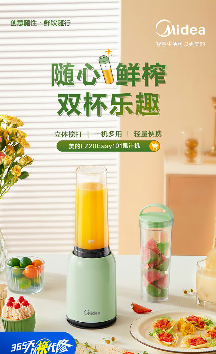 Midea Juicing Cup Press-type slag juice household small easy-to-storage and easy-to-clean high-profile juicer MJ-LZ20Easy101