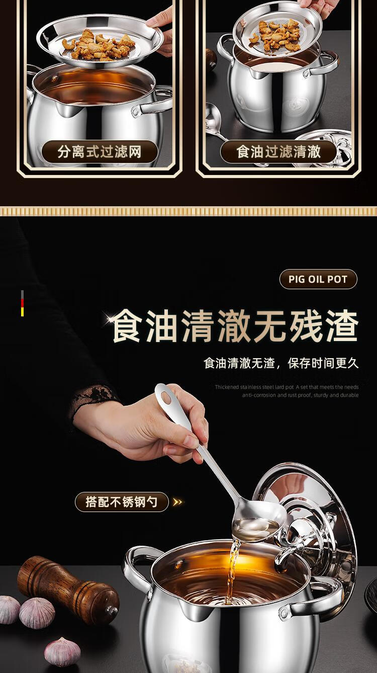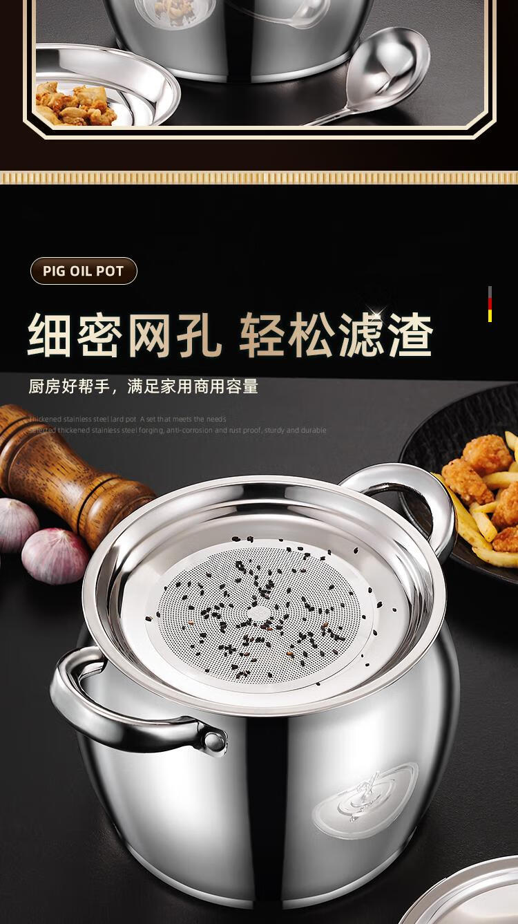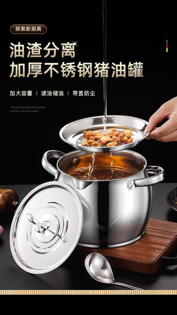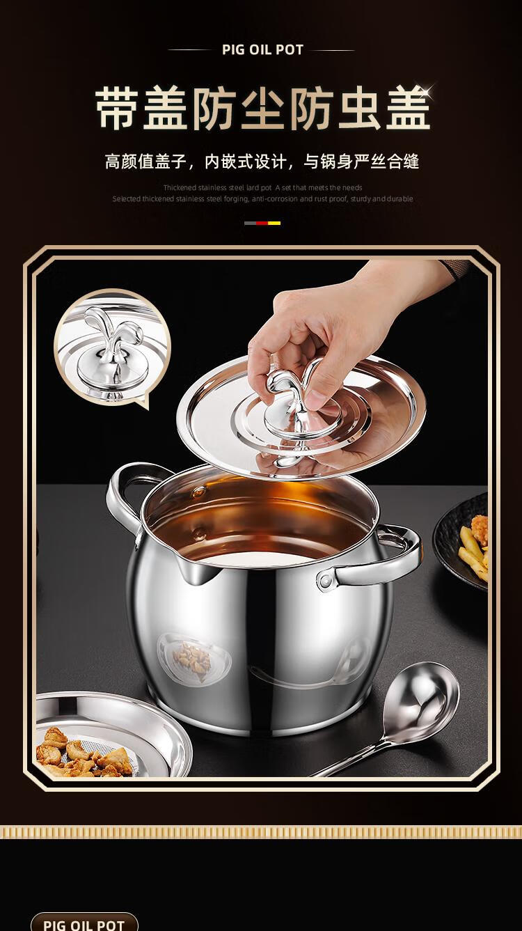 Craftsman Time with filter lard barrel lard tank double-eared lard pot stainless steel with lid household high temperature resistant large capacity oil storage tank 3L comes with filter + spoon丨oil residue separation丨increase capacity