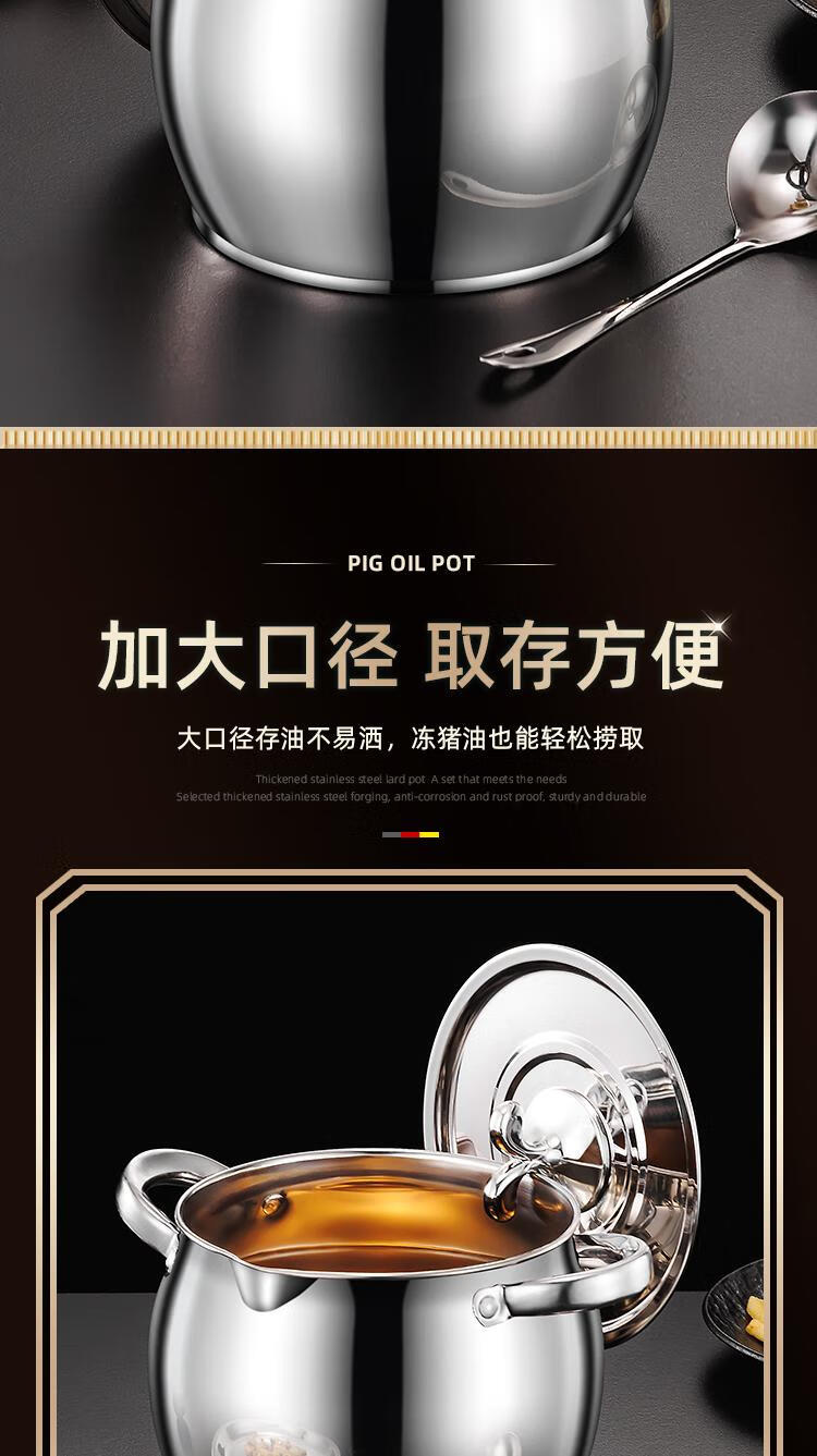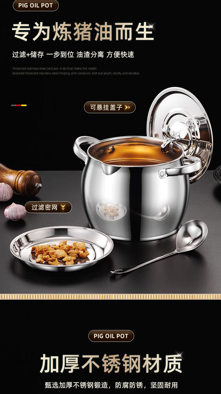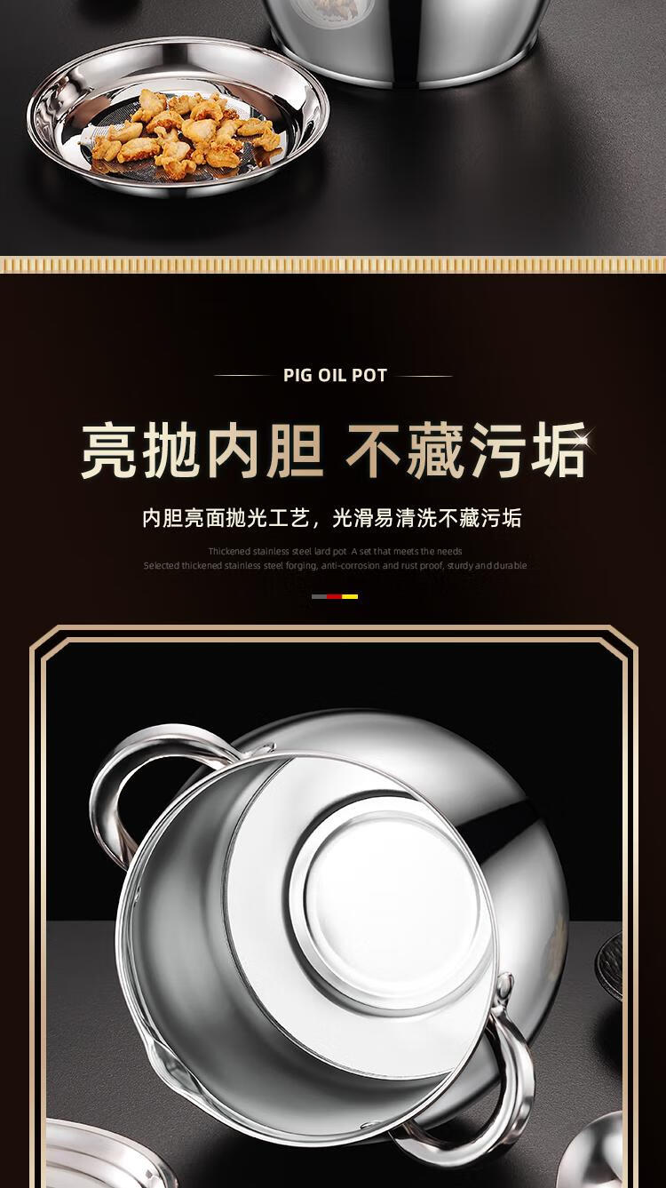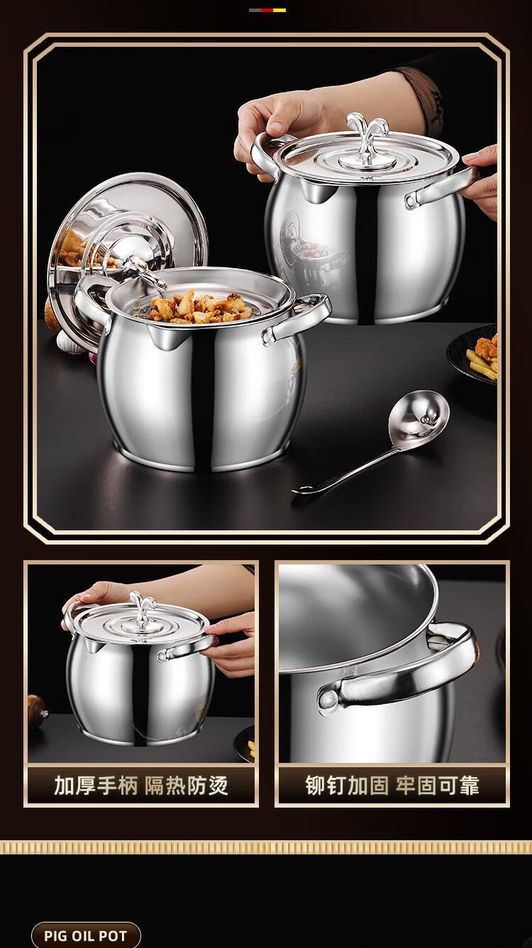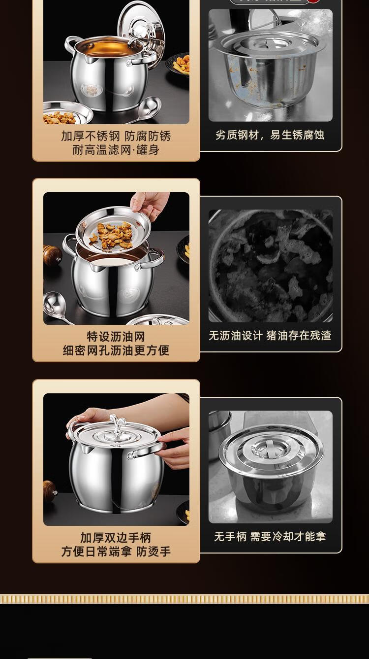 Craftsman Time with filter lard barrel lard tank double-eared lard pot stainless steel with lid household high temperature resistant large capacity oil storage tank 3L comes with filter + spoon丨oil residue separation丨increase capacity